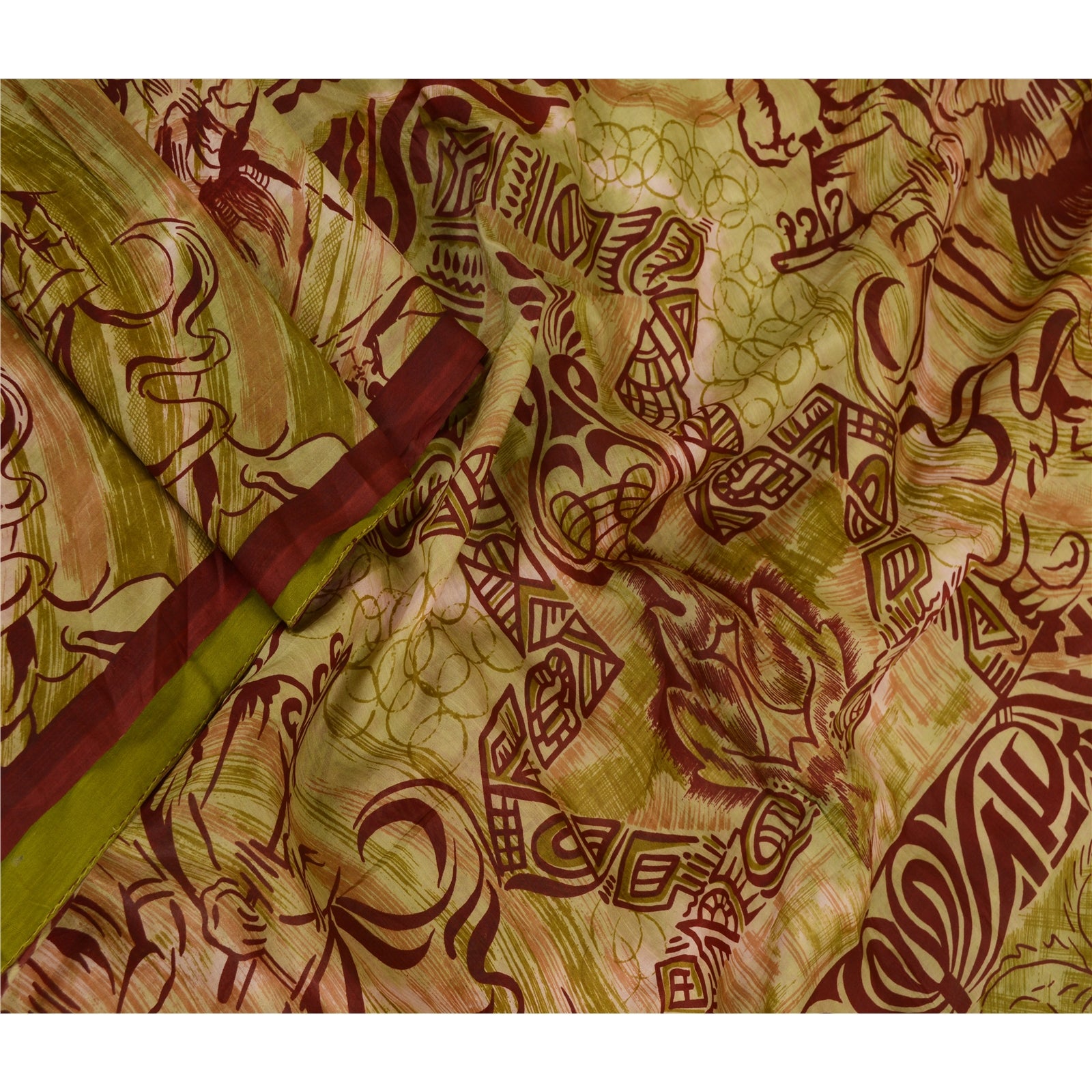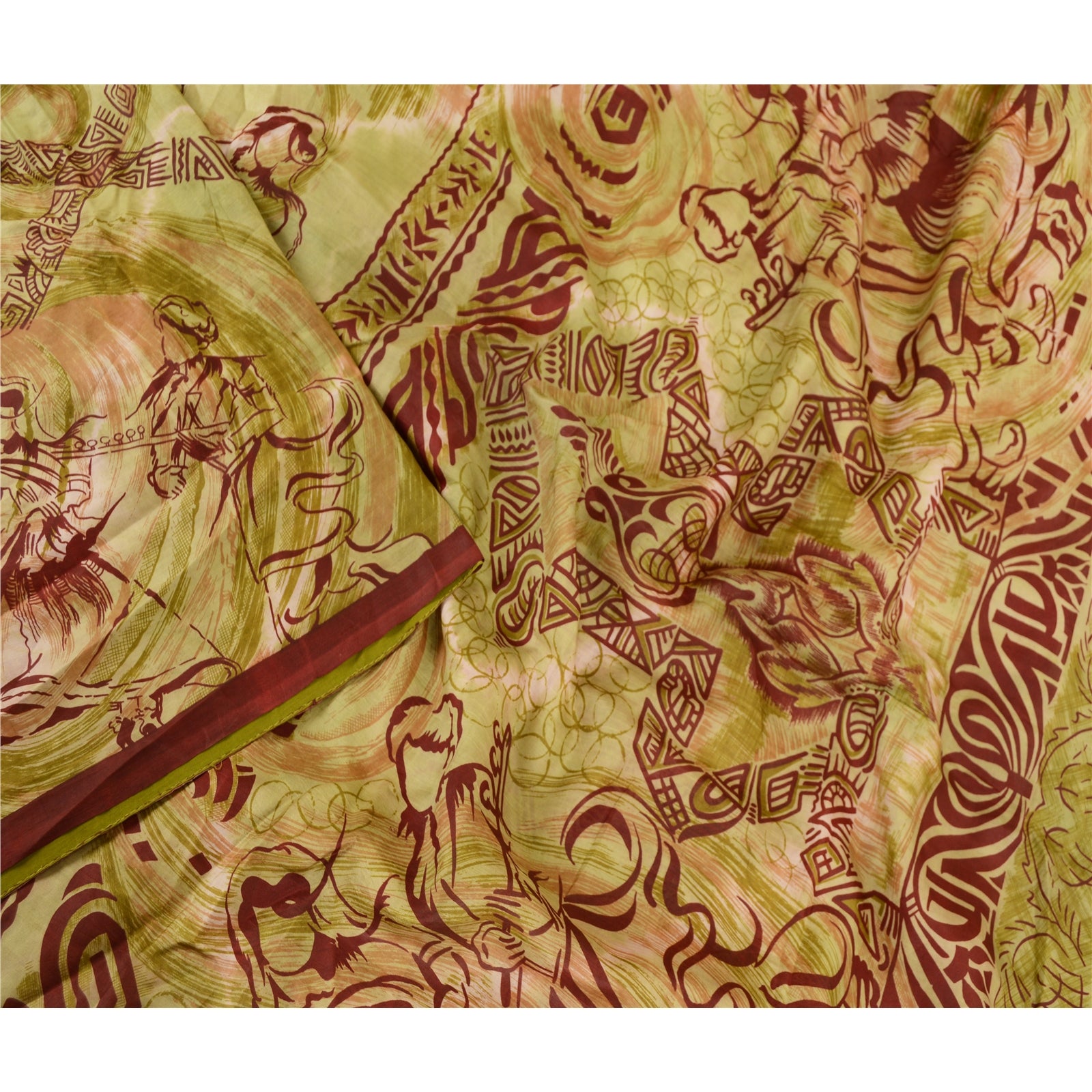 Sanskriti Vintage Sarees Green Human Pure Silk Printed Sari Soft Craft Sustainable Fabric