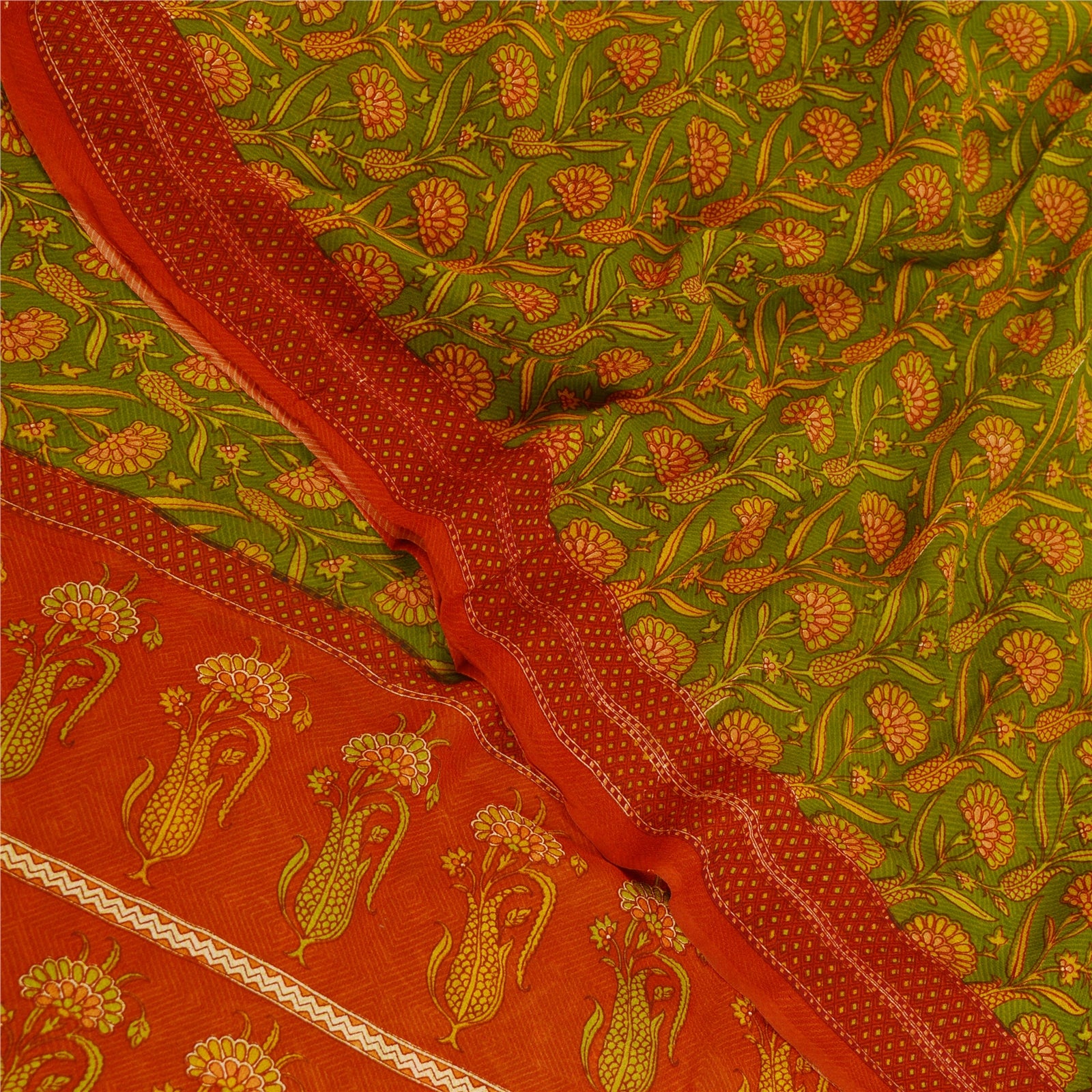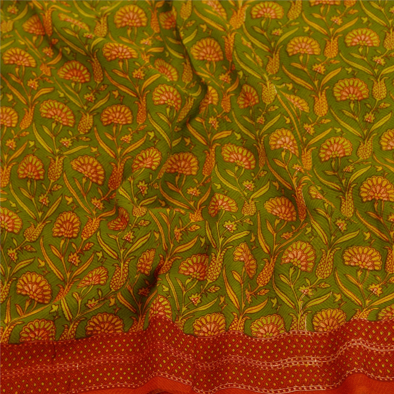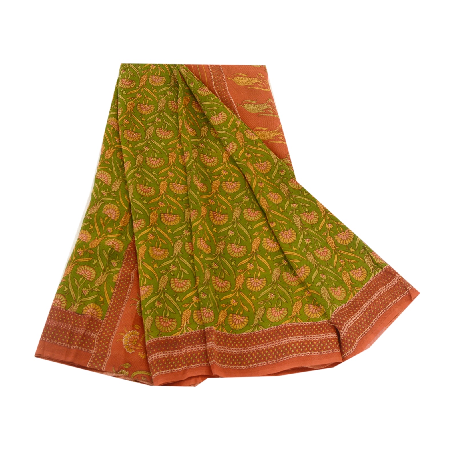 Sanskriti Vintage Sarees Green Printed Pure Georgette Silk Sari 5yd Craft Sustainable Fabric