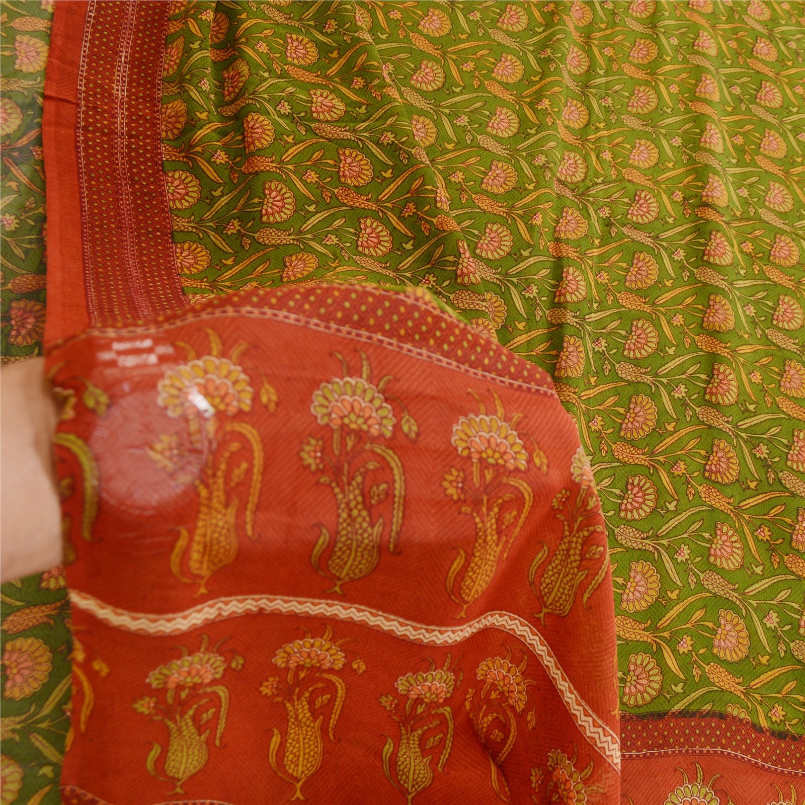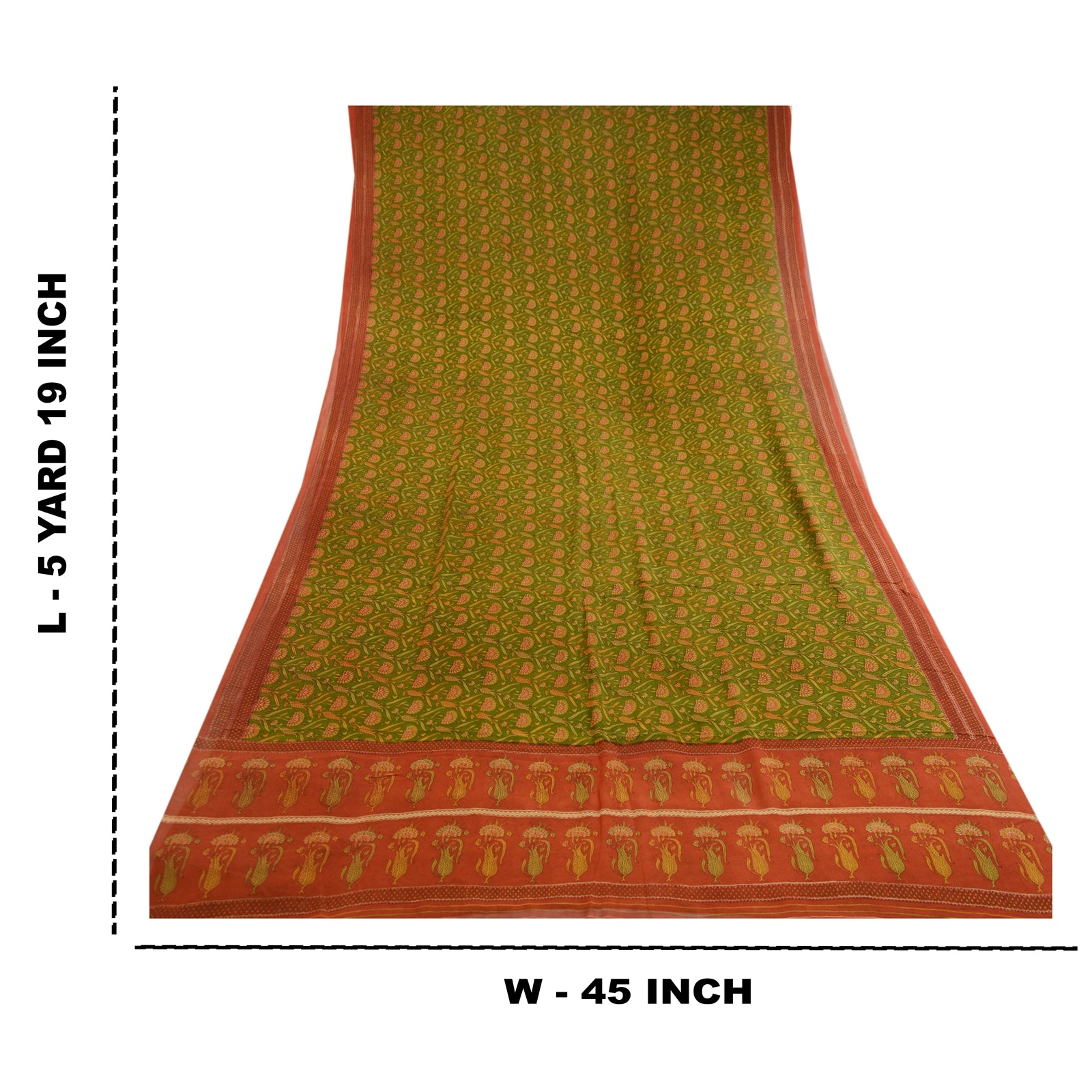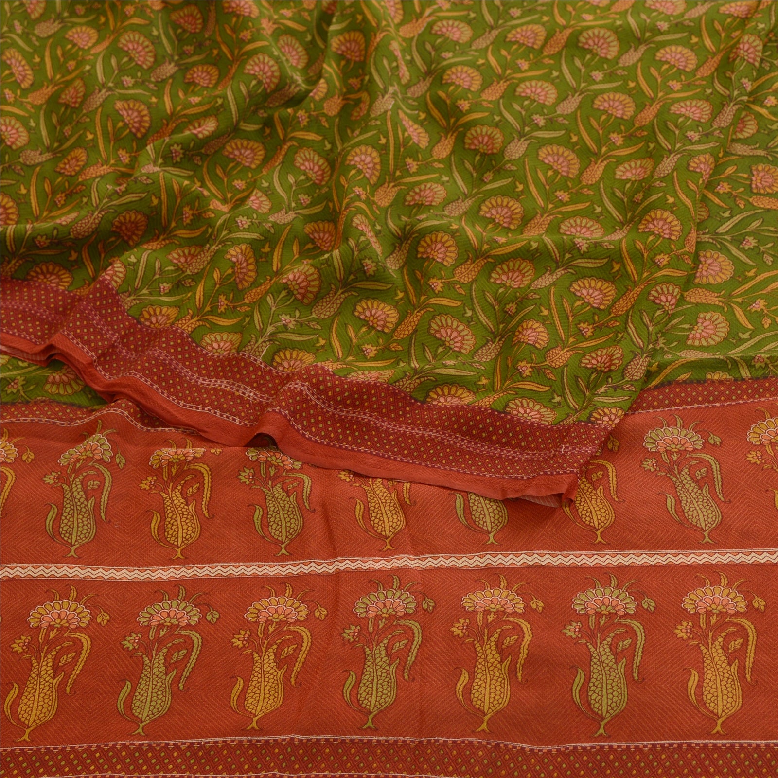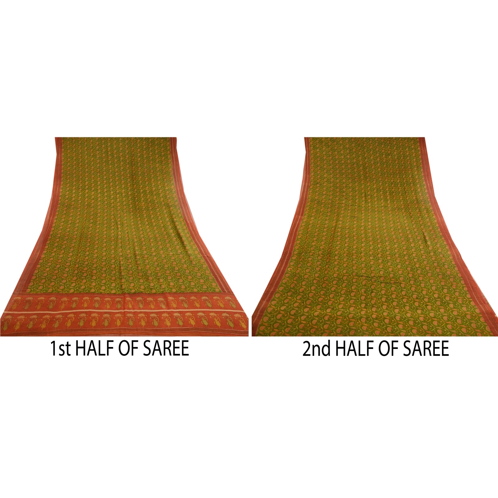Sanskriti Vintage Sarees Green Printed Pure Georgette Silk Sari 5yd Craft Sustainable Fabric