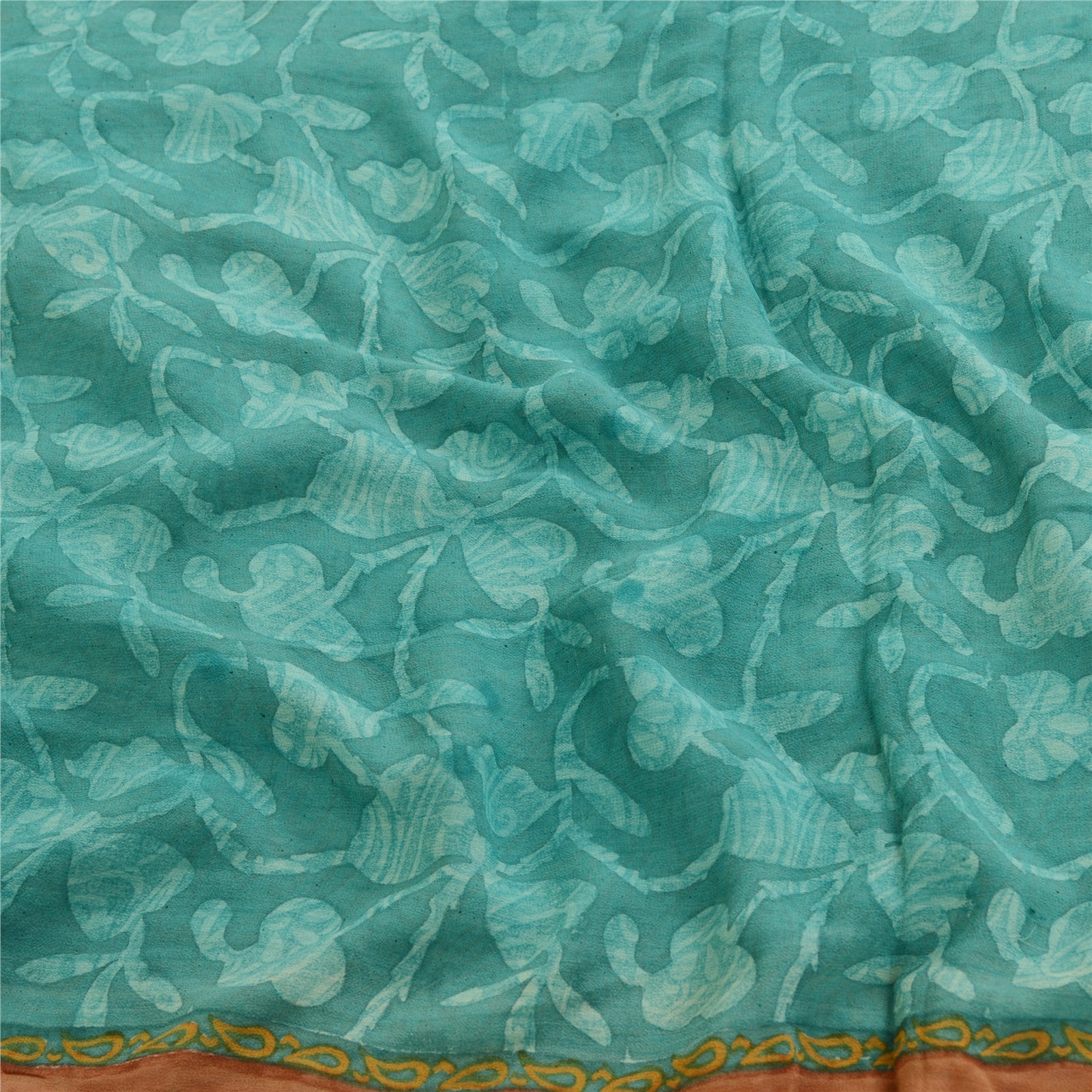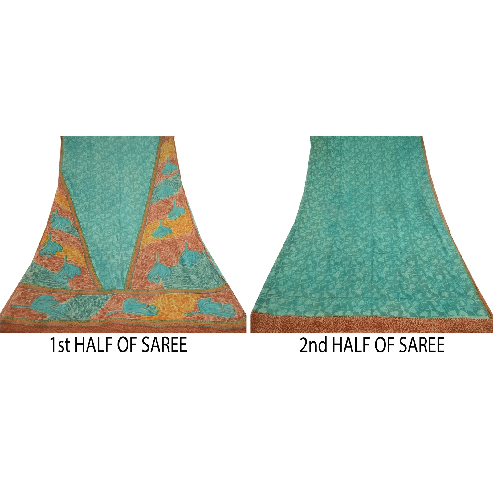 Sanskriti Vintage Sarees Green Pure Geogette Silk Printed Sari 5yd Craft Sustainable Fabric