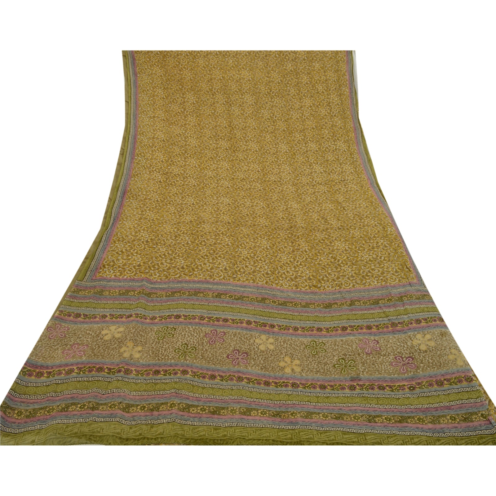 Sanskriti Vintage Sarees Green Pure Georgette Silk Printed Sari 5yd Craft Sustainable Fabric