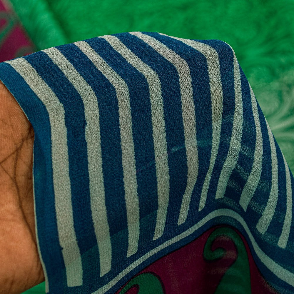 THE ITEM COLOR OR SHADE MAY BE DARKER OR LIGHTER THAN THE PICTURE.' Beautiful green colored pure georgette silk printed saree. Pallu & Border has printed floral design. Similar design in center part of saree. What is special about this saree? Brilliant design on soft Sustainable Fabric is really enhancing the beauty of the saree.This unique vintage saree can be used for various crafting ideas even if you don't want to use it as a sari. Design a dress, use it as a as window dressing, upholstery, sarongs, throw, dress making and table linen much more.Let your creative juices flow and use this decorated Sustainable Fabric in multiple fashion. International buyers please note:Import duties, taxes, and charges are not included in the item price or postage cost. These charges are the buyer's responsibility. Please check with your country's customs office to determine what these additional costs will be prior to bidding or buying.Buyer will pay custom duty/tax. It is calculated and charged differently by every country. As a seller I do not have any control over it.VAT or sales tax is calculated by the platform at the time of checkout. Customs charge is payable at the time of delivery.