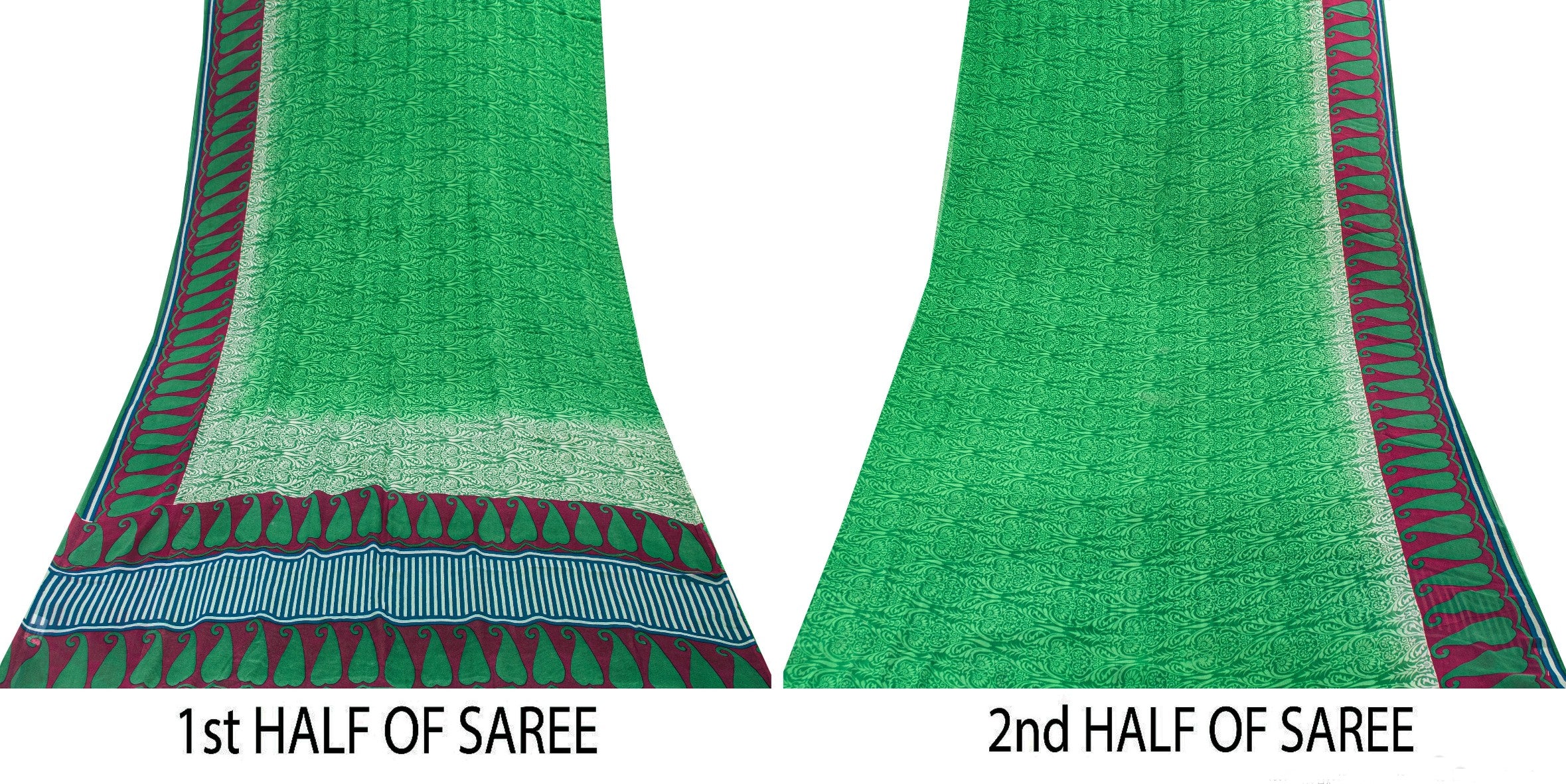 Sanskriti Vintage Sarees Green Pure Georgette Silk Printed Sari 5YD Craft Sustainable Fabric