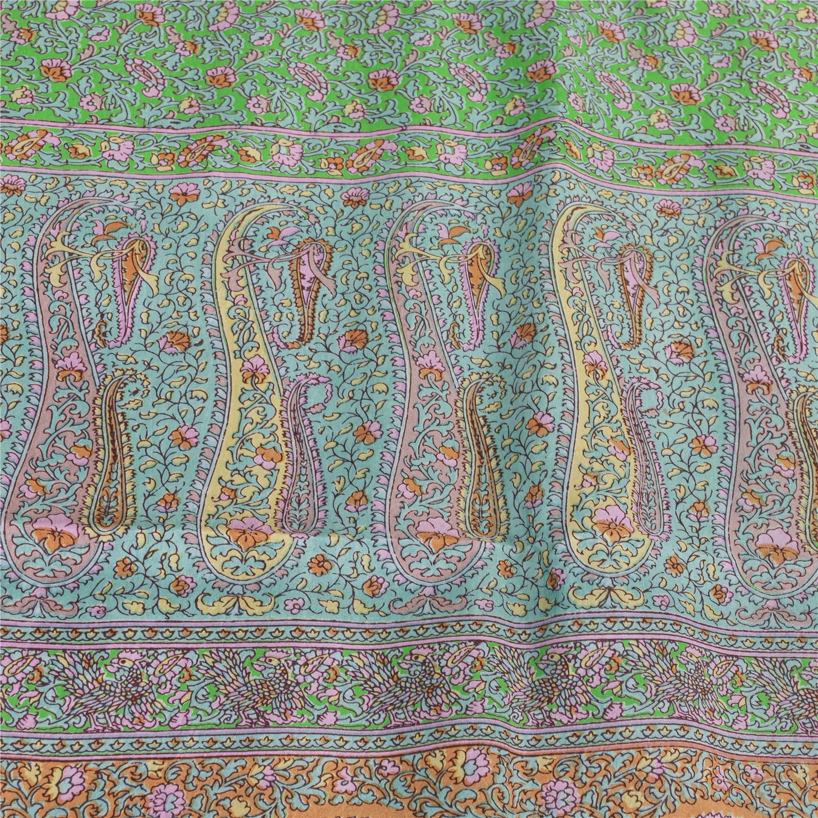 Sanskriti Vintage Sarees Green Pure Silk Floral Printed Sari 6yd Craft Fabric