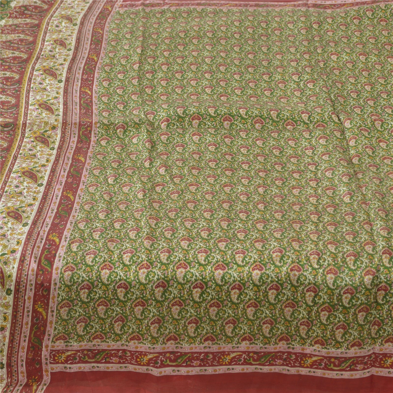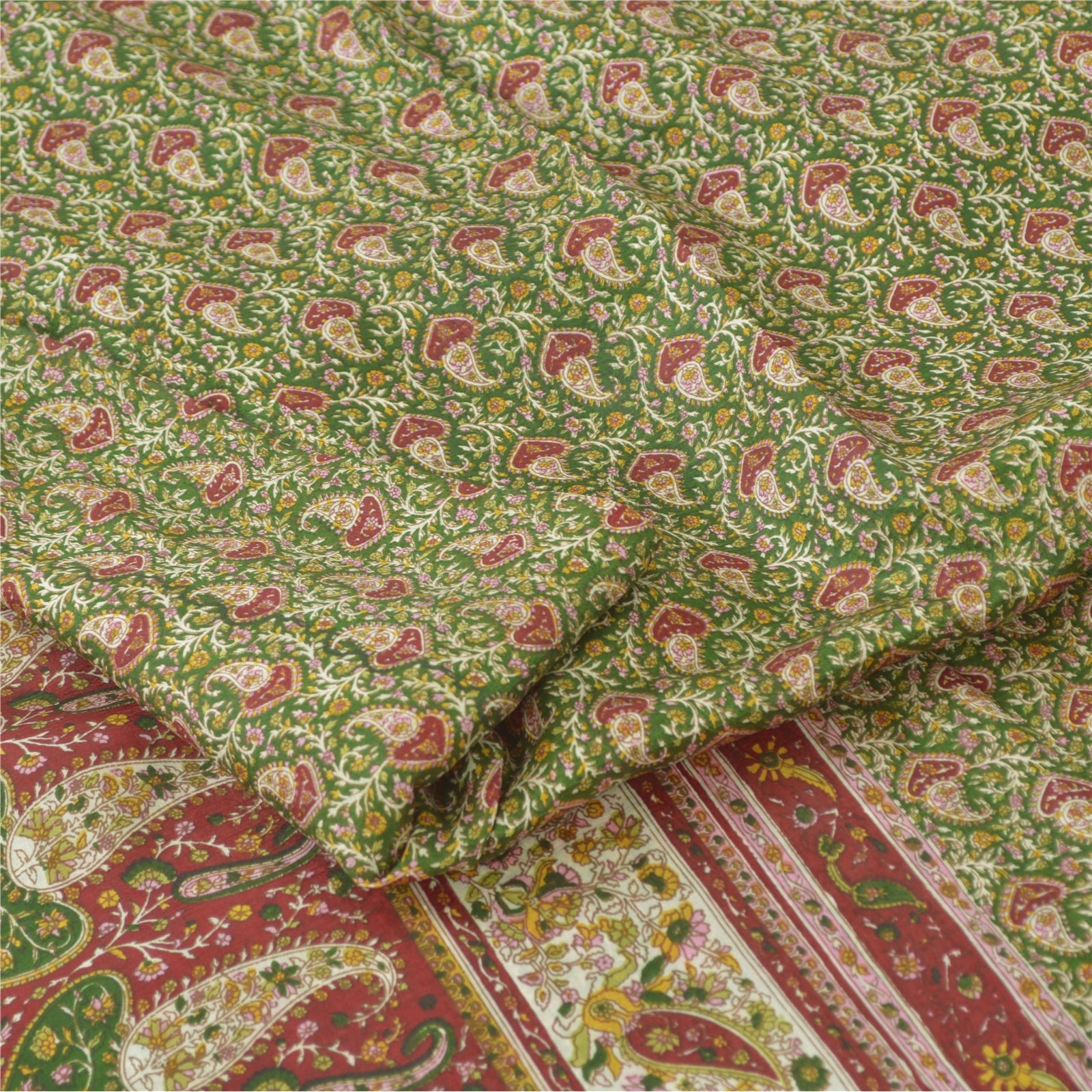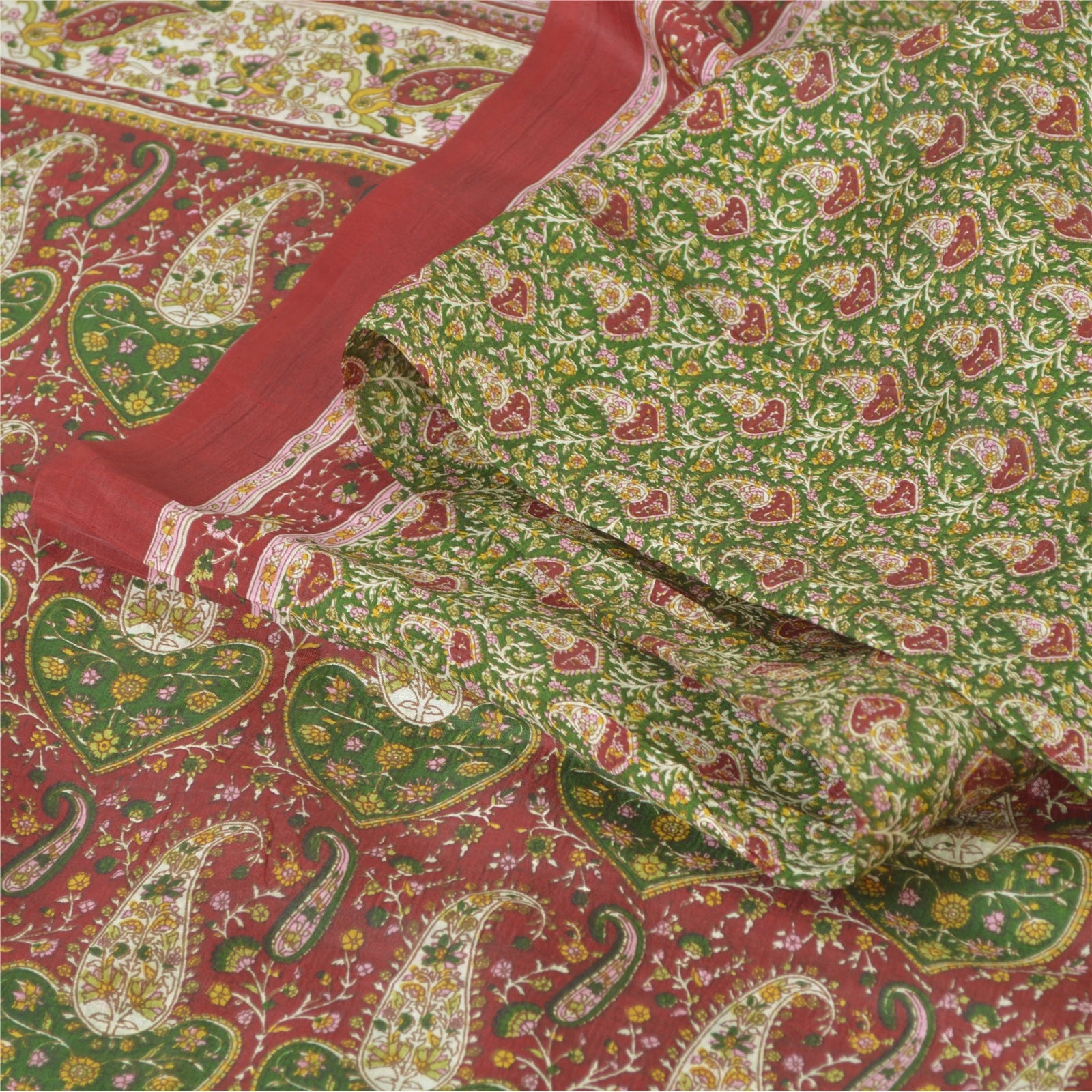 THE ITEM COLOR OR SHADE MAY BE DARKER OR LIGHTER THAN THE PICTURE.' • Beautiful green & red colored printed pure silk saree . • Pallu & Border has printed floral & paisley design. • Similar design in center part of sari . This unique vintage saree can be used for various crafting ideas even if you don't want to use it as a sari. Design a dress, use it as a as window dressing, upholstery, sarongs, throw, dress making and table linen much more. Let your creative juices flow and use this decorated Sustainable Fabric in multiple fashion. International buyers please note: Import duties, taxes, and charges are not included in the item price or postage cost. These charges are the buyer's responsibility. Please check with your country's customs office to determine what these additional costs will be prior to bidding or buying.Buyer will pay custom duty/tax. It is calculated and charged differently by every country. As a seller I do not have any control over it. VAT or sales tax is calculated by the platform at the time of checkout. Customs charge is payable at the time of delivery.