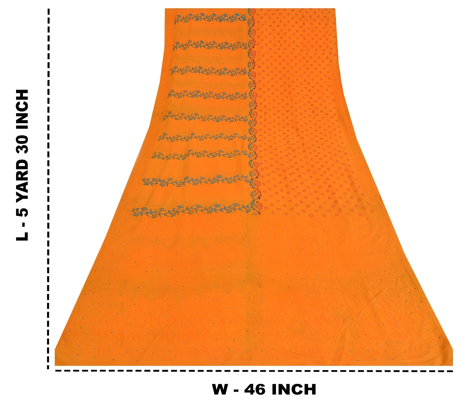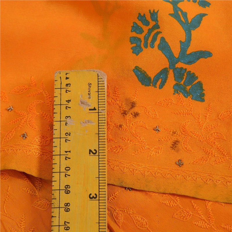 Beautiful orange colored hand embroidery & painted pure crepe silk saree .Pallu & Border has floral design with thread & zardozi work. Floral design with painted work in center part of sari . Saree has mild stain on it. Versatile Uses-Crafting, Repurpose, Creative Sewing Project, Dressmaking, Kaftans, Use It As A Sari, Window Dressing, Upcycling, Sarongs, Throw,Table Linen,Decorative Fabric, Sustainable Indian Fabric. THE ITEM COLOR OR SHADE MAY BE DARKER OR LIGHTER THAN THE PICTURE.' International buyers please note: Import duties, taxes, and charges are not included in the item price or postage cost. Buyer will pay custom duty/tax,VAT, and any applicable charges at the time of delivery. PRC-22347