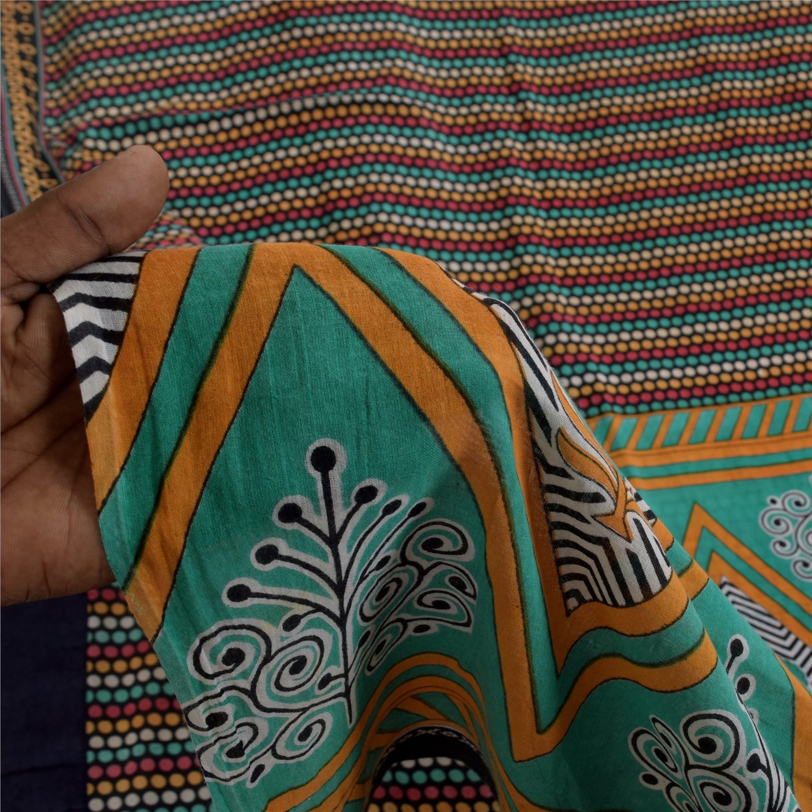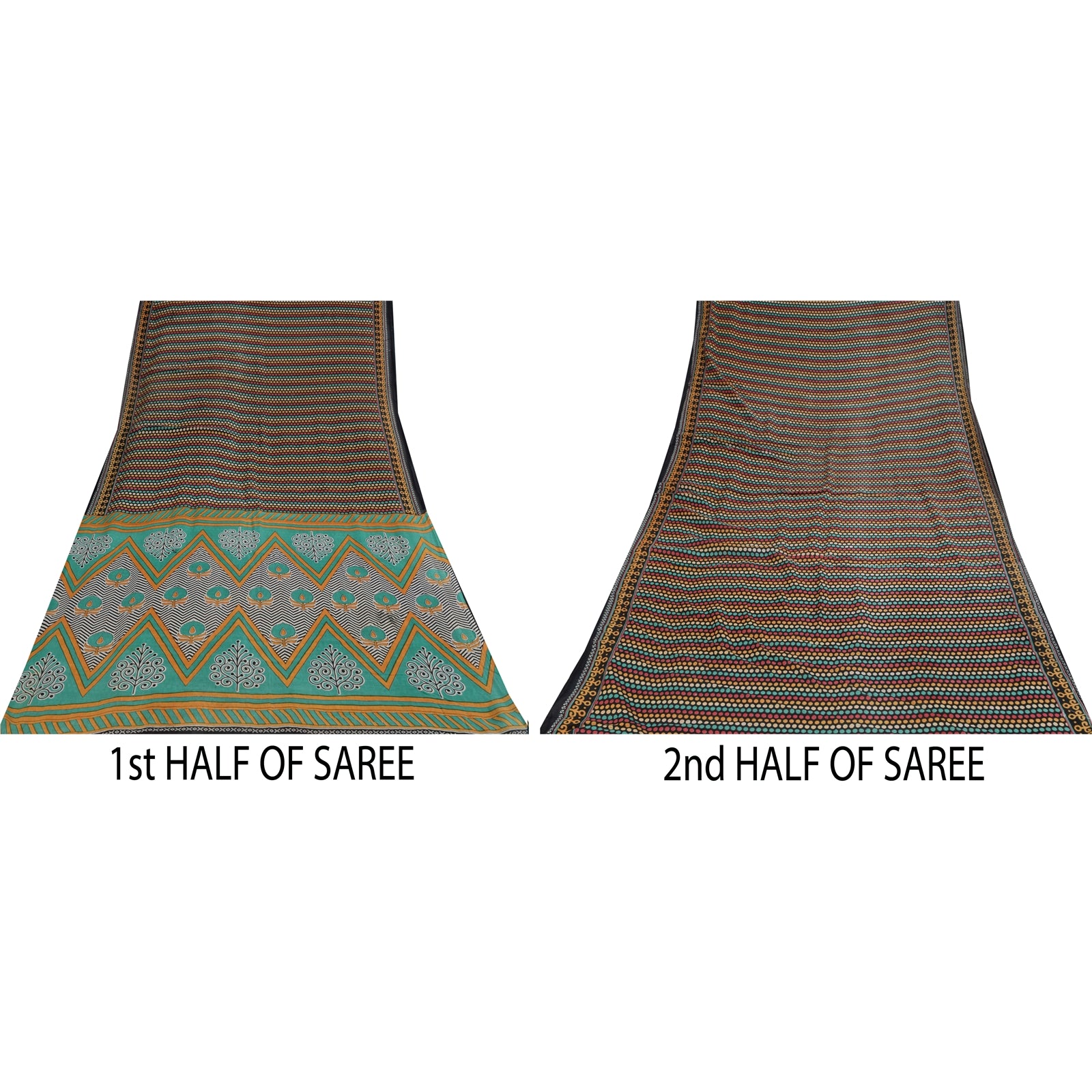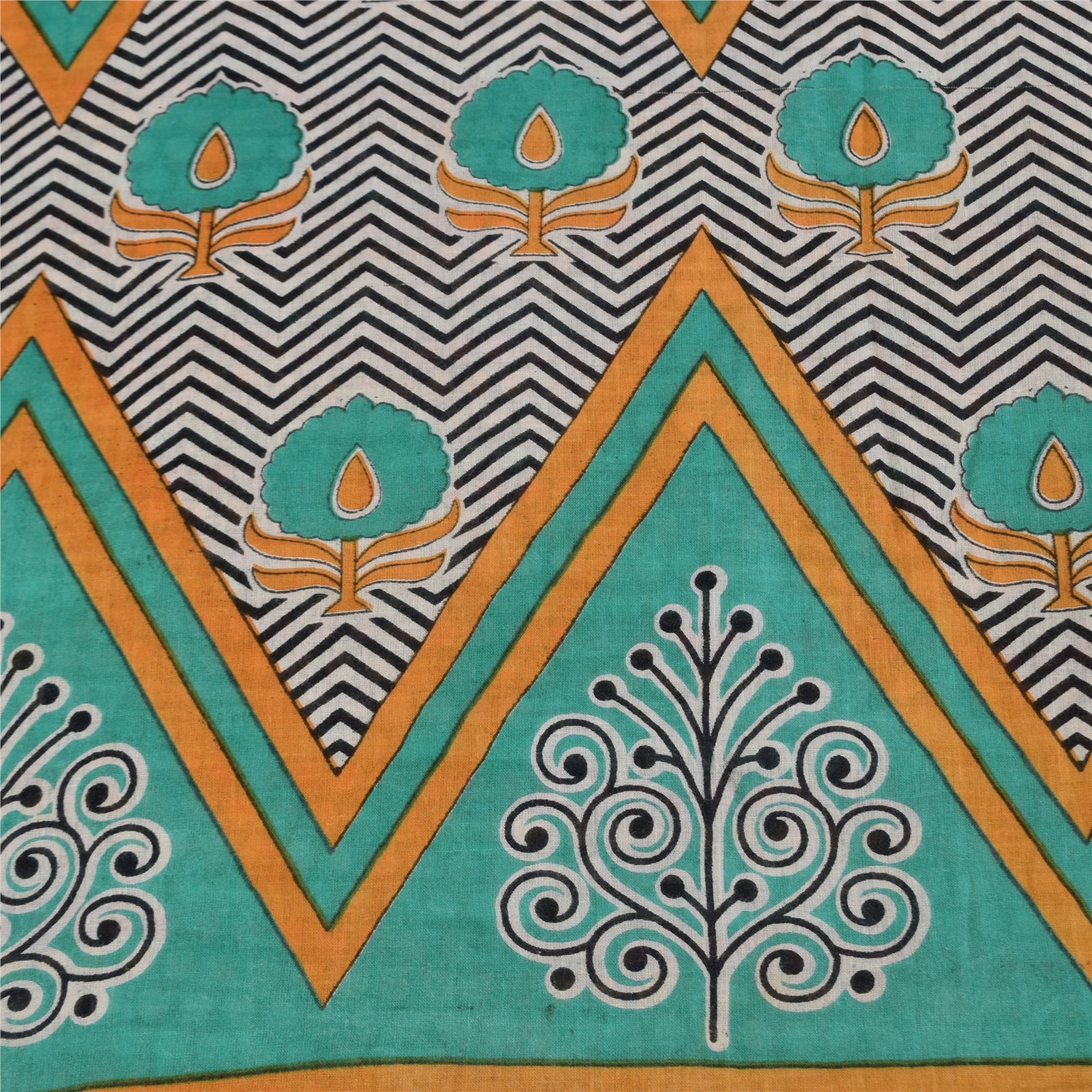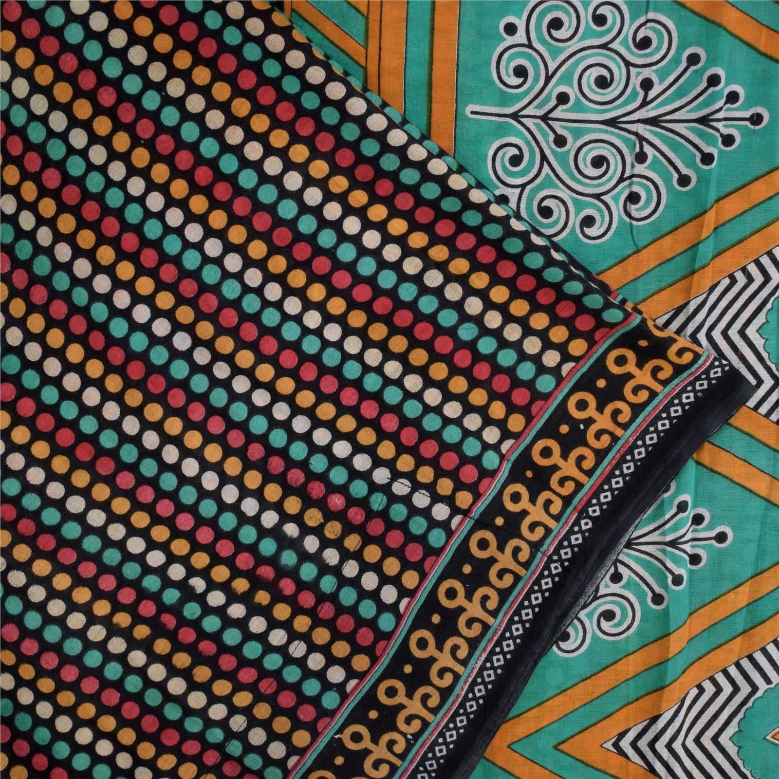 THE ITEM COLOR OR SHADE MAY BE DARKER OR LIGHTER THAN THE PICTURE. Attractive black colored pure cotton printed sari. Pallu & Border has printed floral & geometric design. Geometric design in center part of saree.. This unique vintage saree can be used for various crafting ideas even if you don't want to use it as a sari. Design a dress, use it as a as window dressing, upholstery, sarongs, throw, dress making and table linen much more. Let your creative juices flow and use this decorated Sustainable Fabric in multiple fashion. Shipping Note: 'International buyers please note: Import duties, taxes, and charges are not included in the item price or postage cost. These charges are the buyer's responsibility. Please check with your country's customs office to determine what these additional costs will be prior to bidding or buying. Buyer will pay custom duty/tax. It is calculated and charged differently by every country. As a seller I do not have any control over it. VAT or sales tax is calculated by the platform at the time of checkout. Customs charge is payable at the time of delivery.' PCS-6657