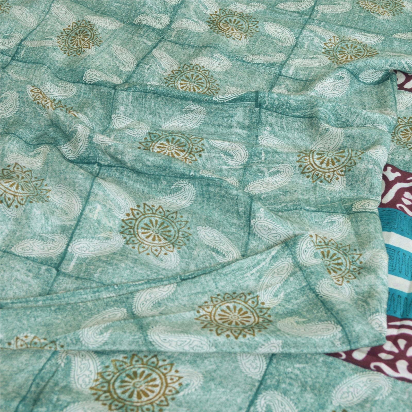 Sanskriti Vintage Sarees Indian Blue Pure Crepe Silk Printed Sari Craft Sustainable Fabric