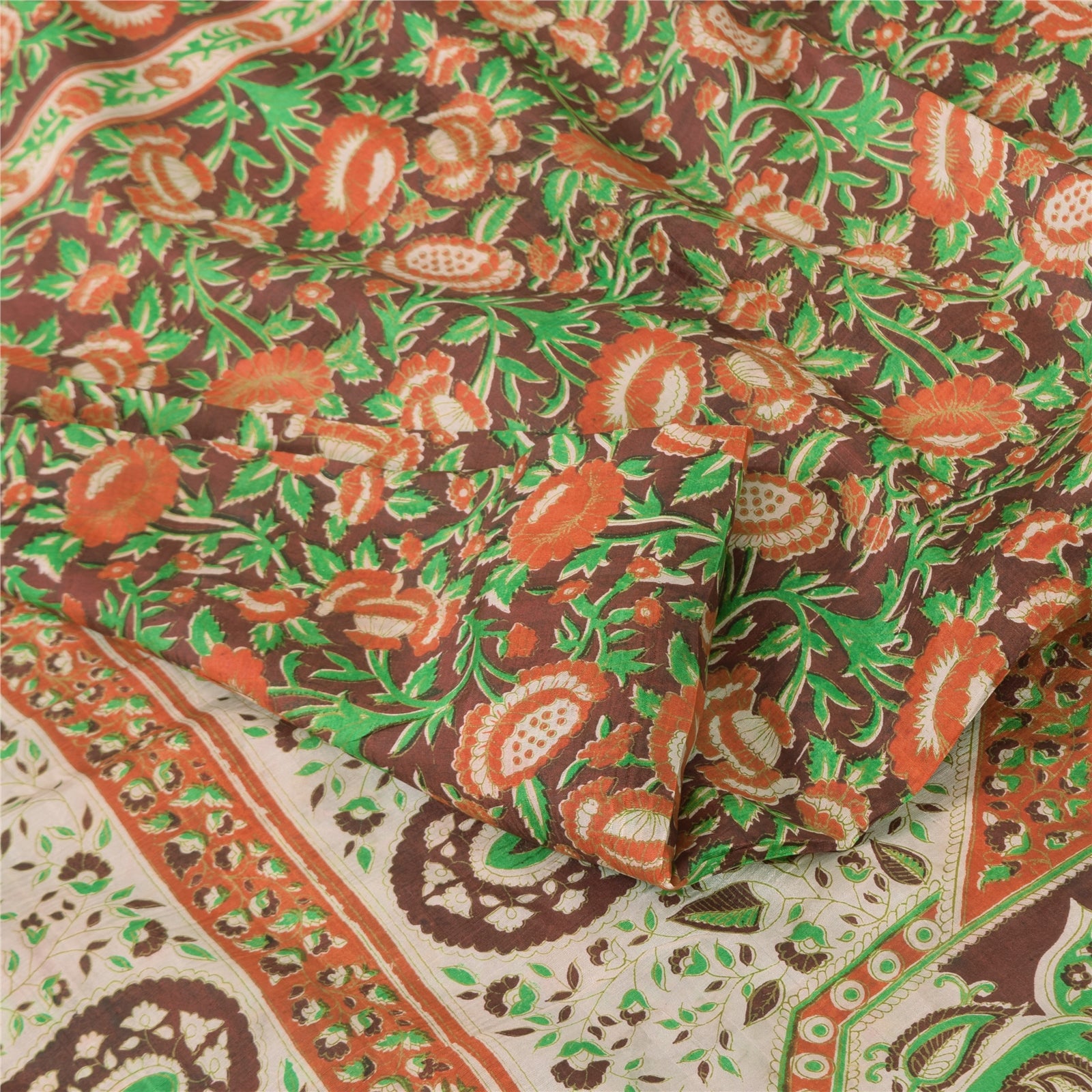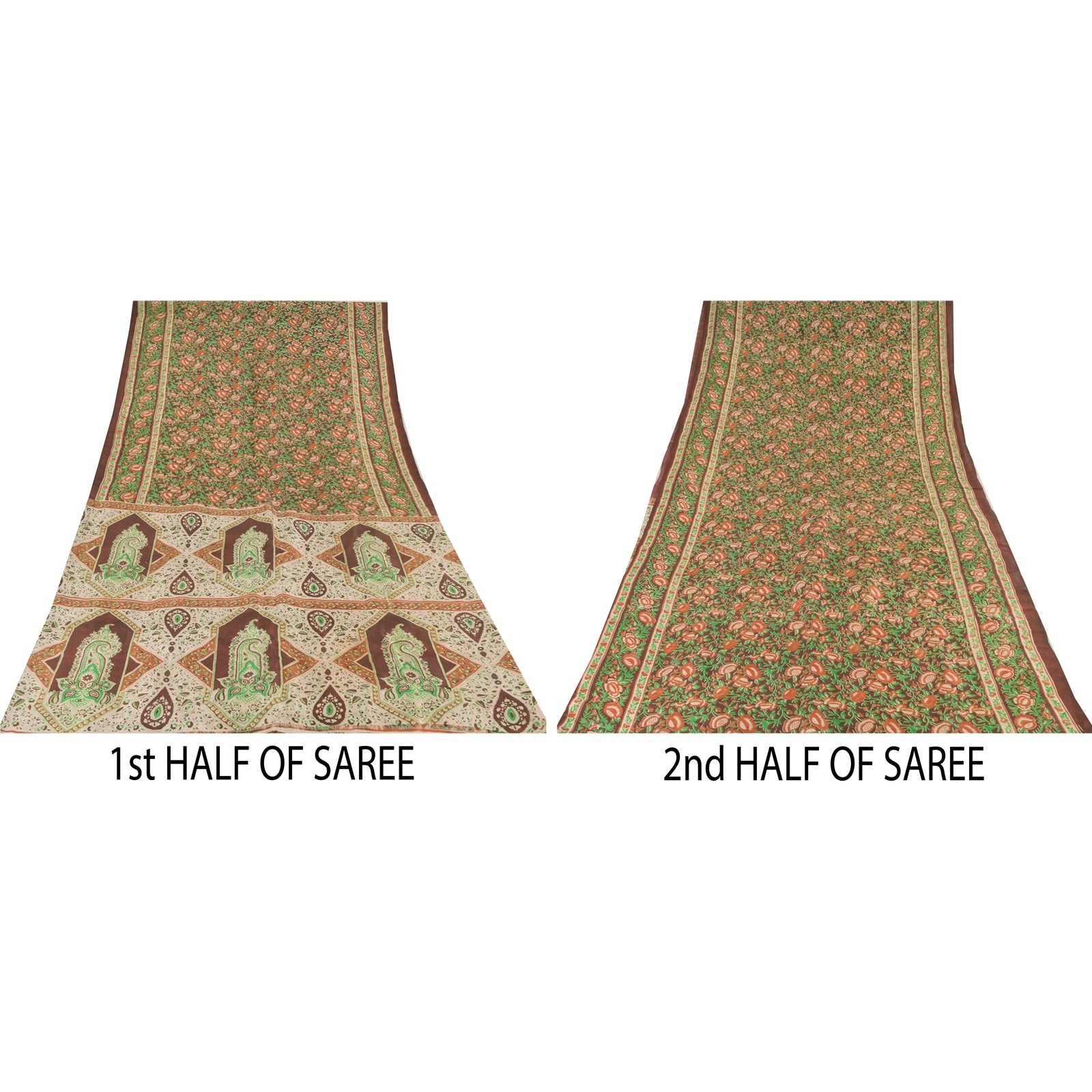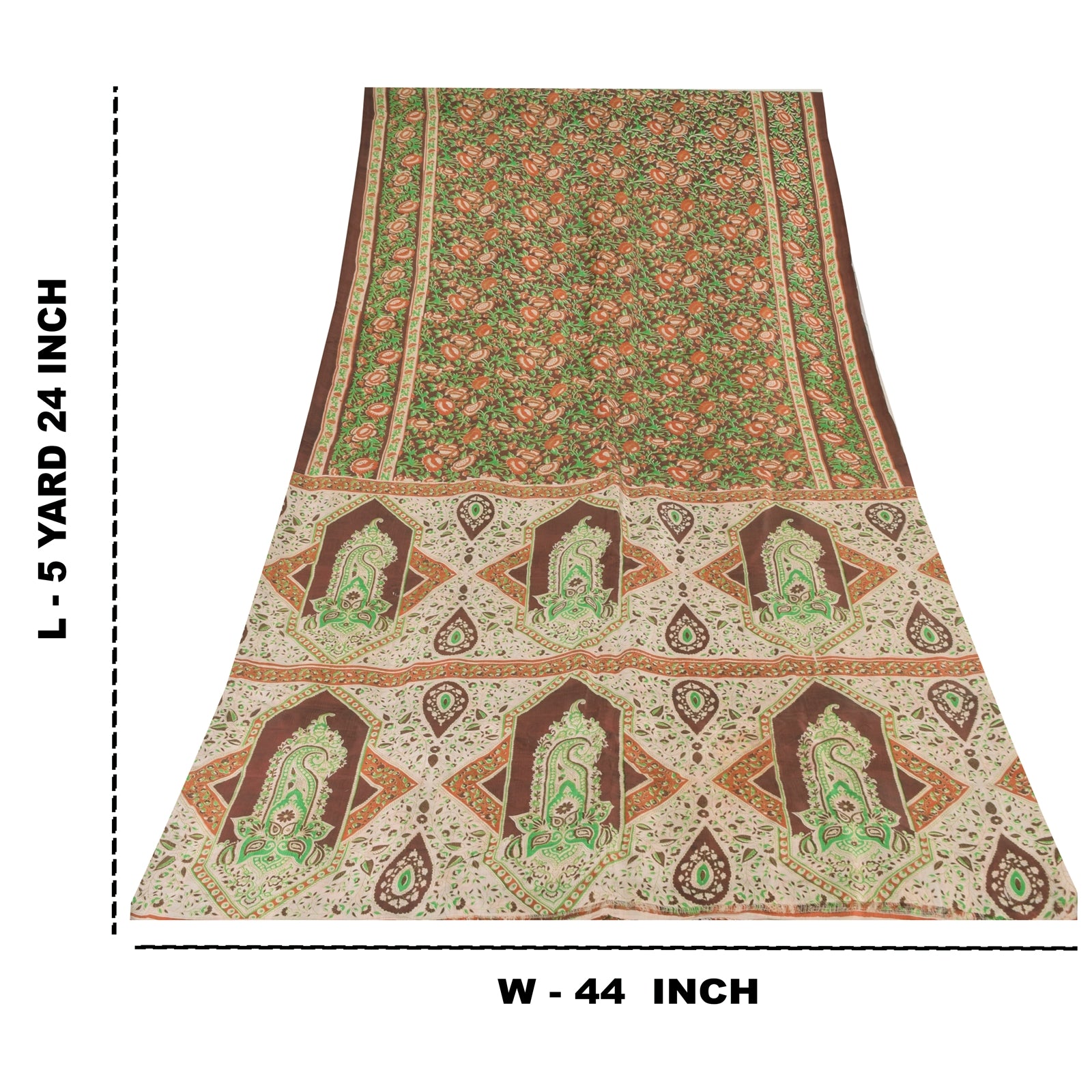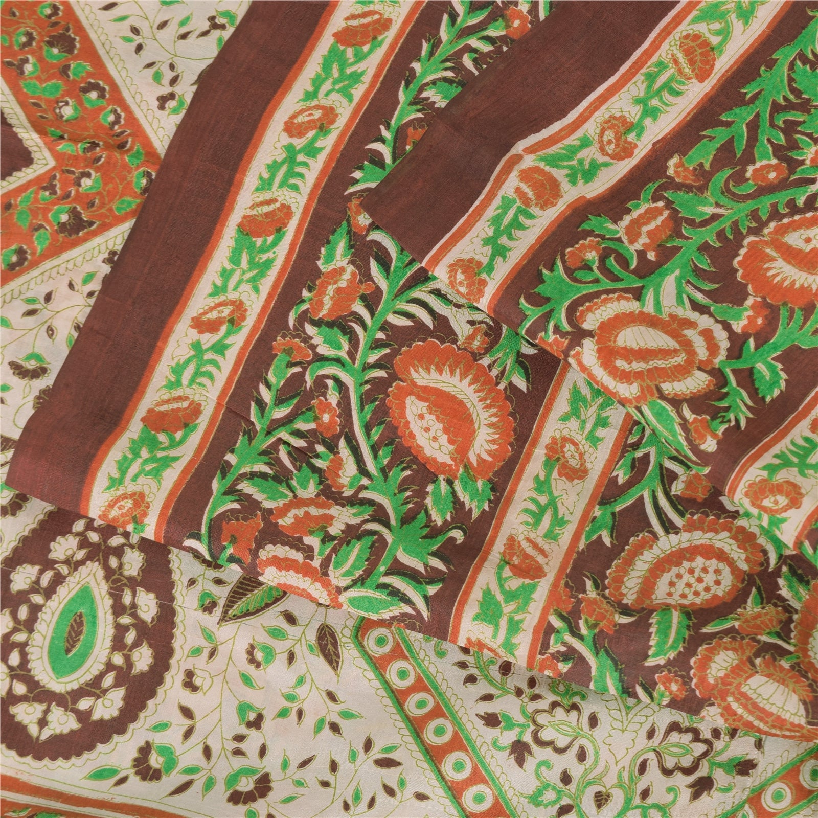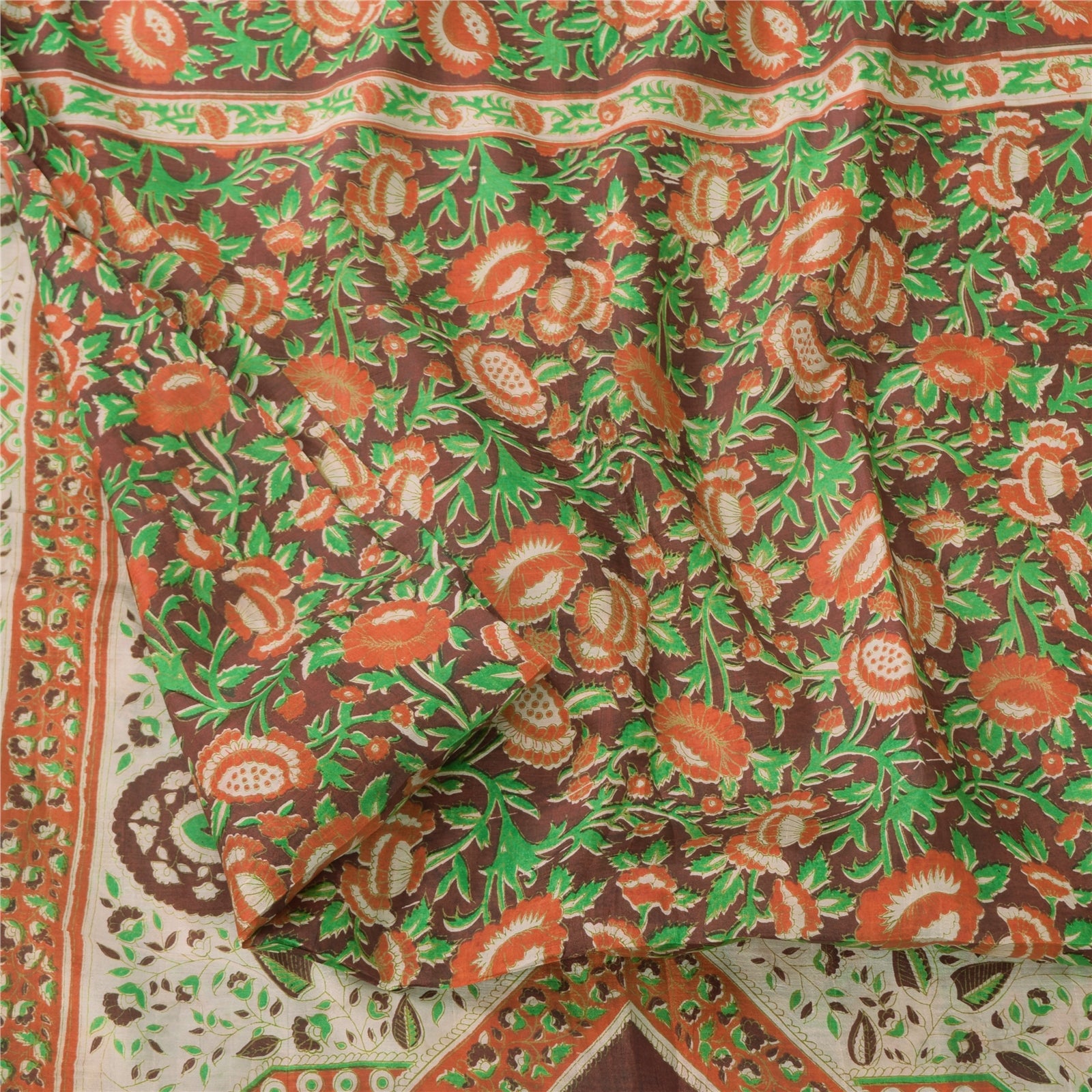 Sanskriti Vintage Sarees Indian Brown Pure Silk Printed Sari 5yd Craft Sustainable Fabric