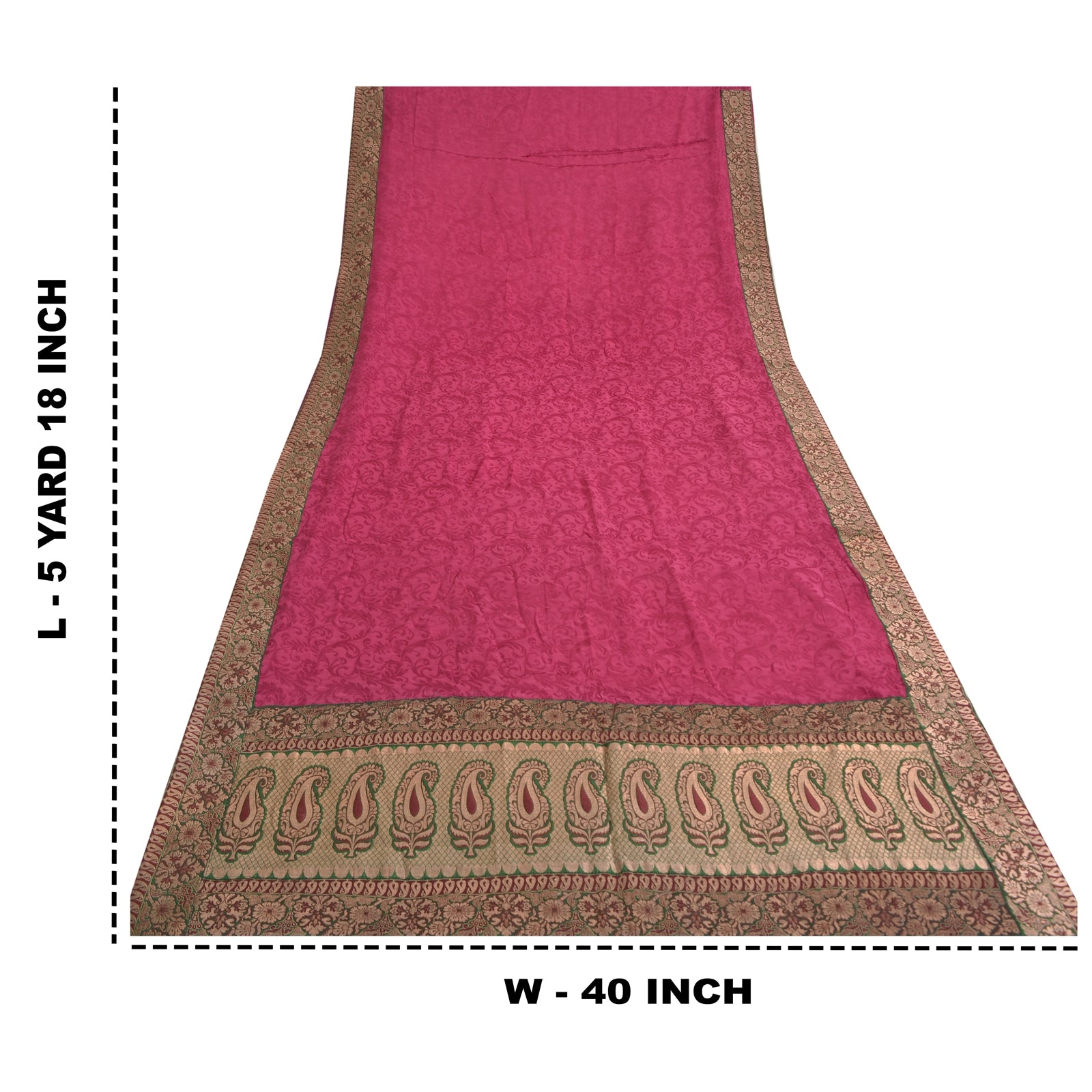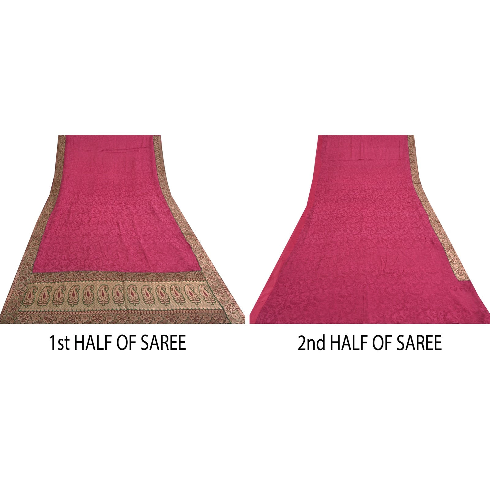Sanskriti Vintage Sarees Indian Hot-Pink Cotton Silk Woven Sari 5yd Craft Sustainable Fabric