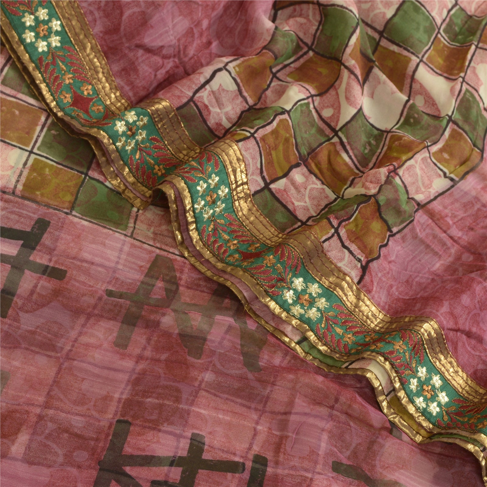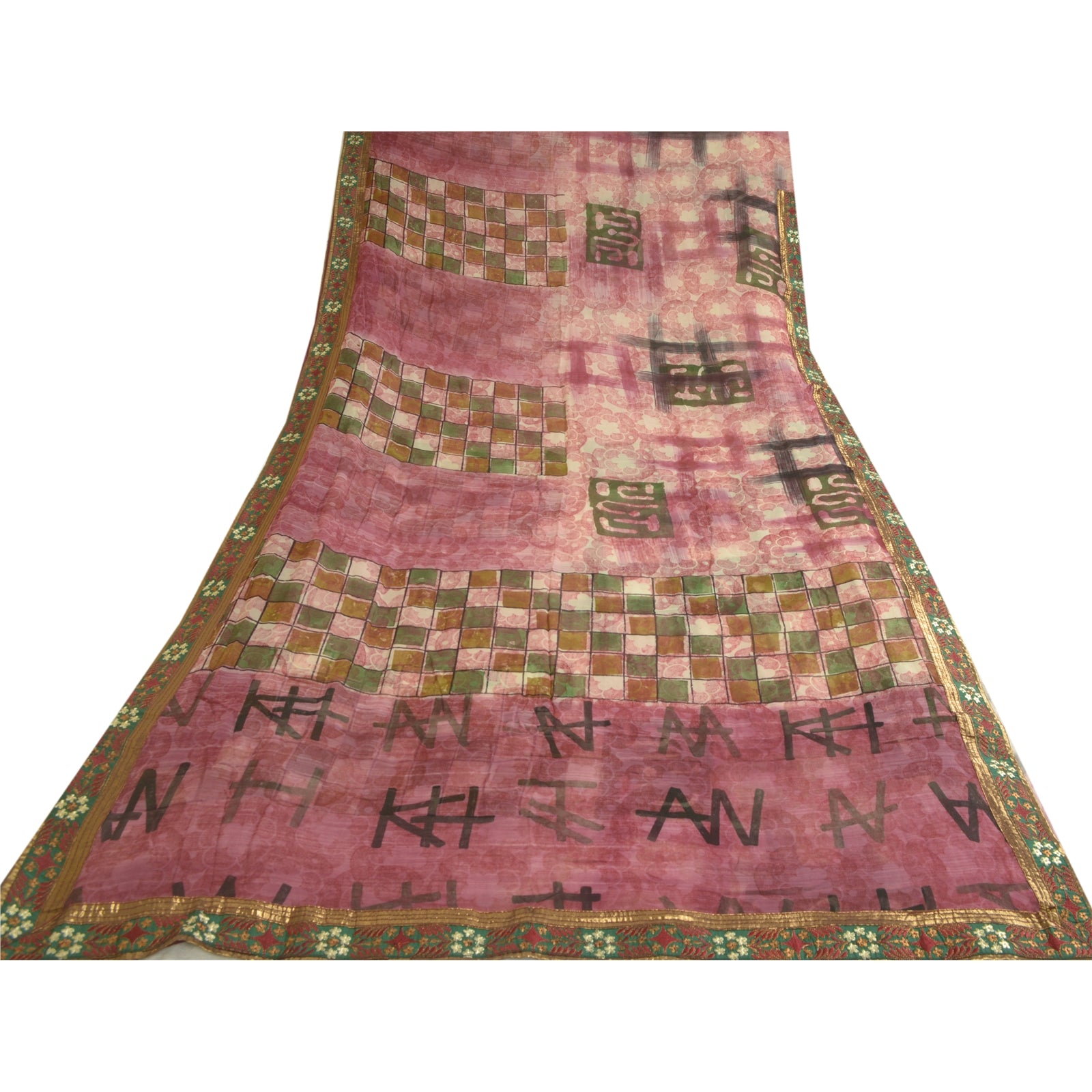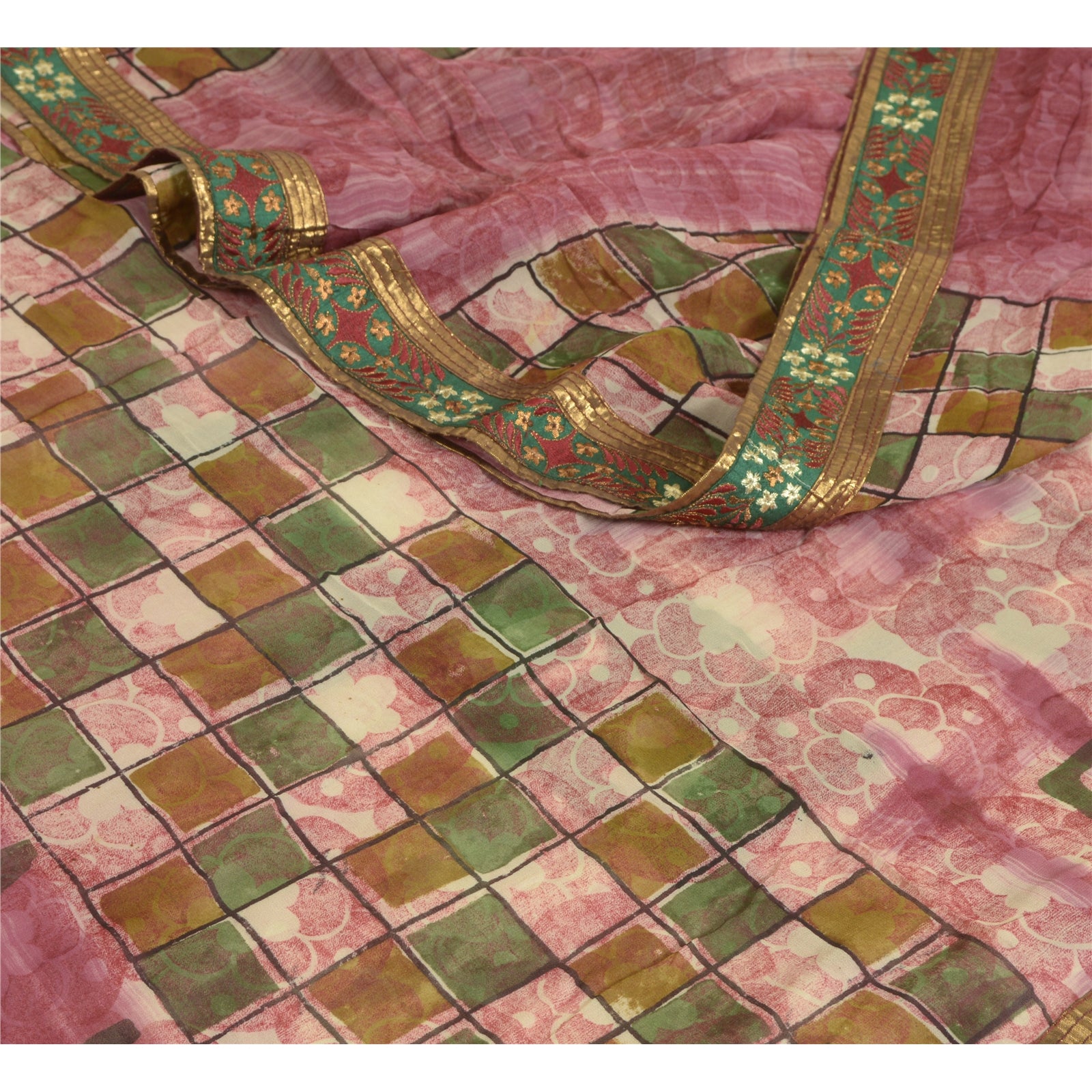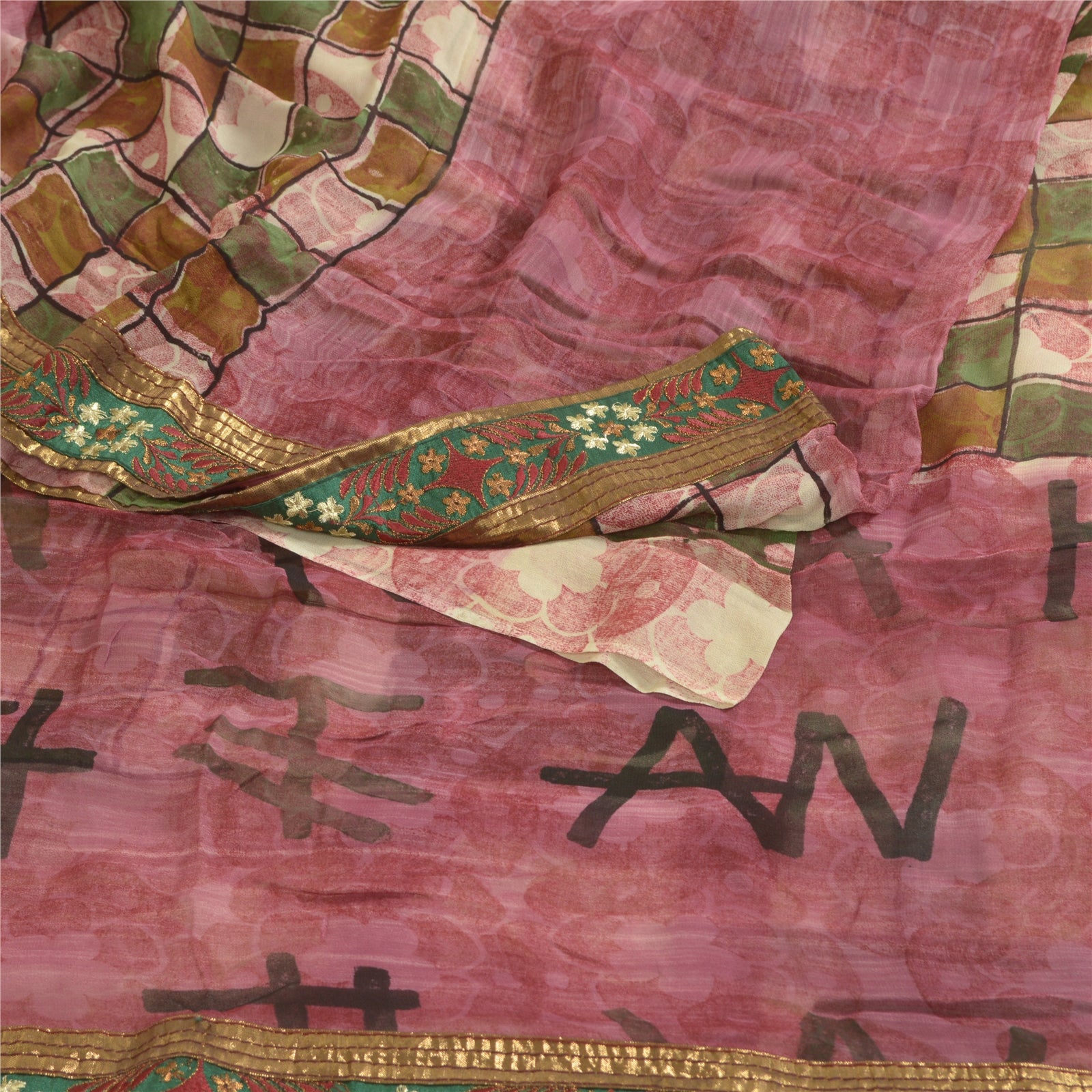 Sanskriti Vintage Sarees Indian Pink Pure Georgette Printed Sari Craft Sustainable Fabric