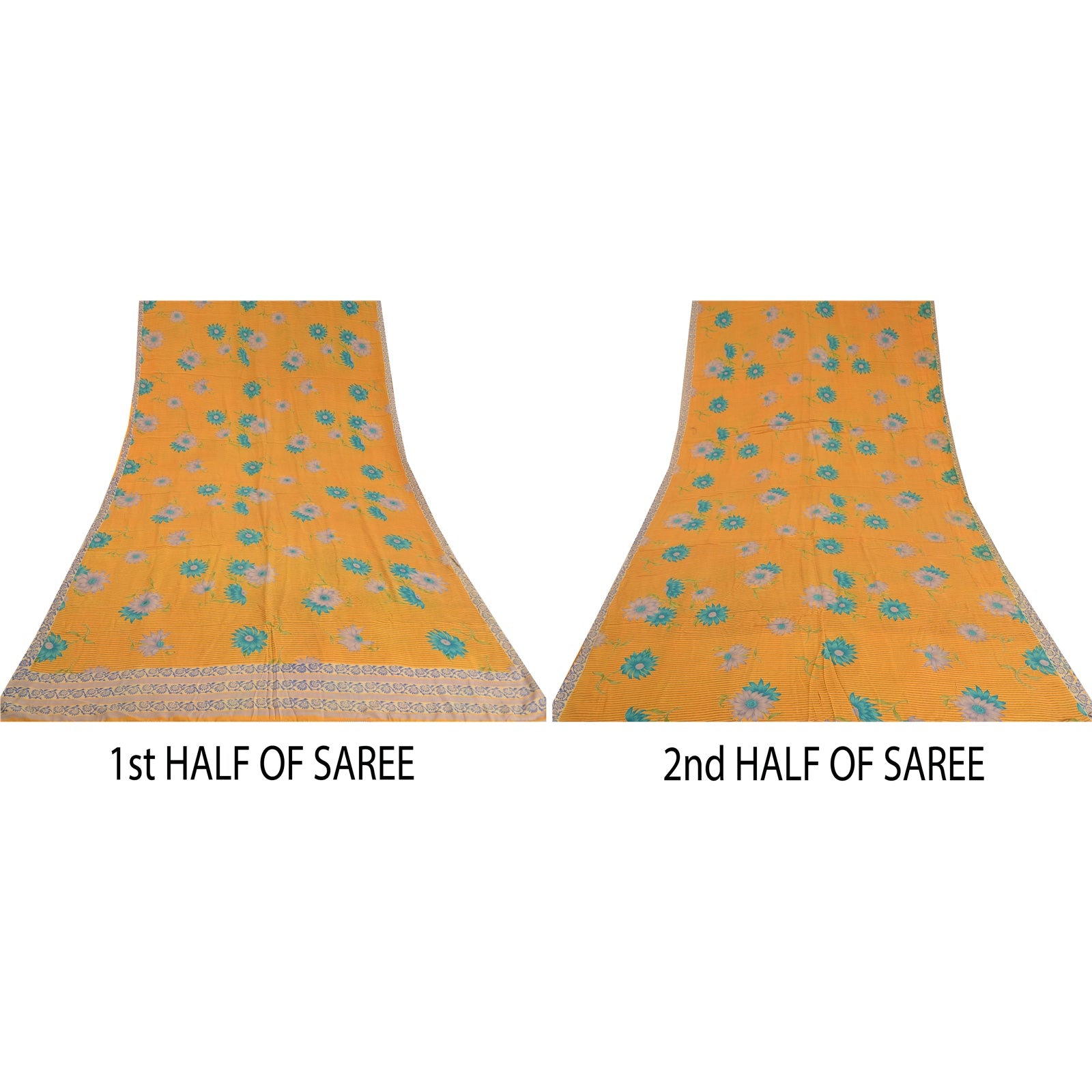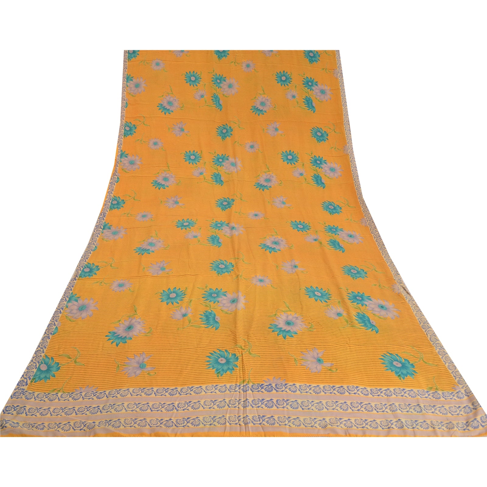 THE ITEM COLOR OR SHADE MAY BE DARKER OR LIGHTER THAN THE PICTURE.' Beautiful yellow colored pure crepe silk printed saree. Pallu & Border has printed floral design. Similar design in center part of saree. What is special about this saree? Fabulous design is really enhancing the beauty of the saree. This unique vintage saree can be used for various crafting ideas even if you don't want to use it as a sari. Design a dress, use it as window,dressing, upholstery, sarongs, throw, dress making and table linen much more. Let your creative juices flow and use this decorated Sustainable Fabric in multiple fashion. International buyers please note: Import duties, taxes, and charges are not included in the item price or postage cost. These charges are the buyer's responsibility. Please check with your country's customs office to determine what these additional costs will be prior to bidding or buying.Buyer will pay custom duty/tax. It is calculated and charged differently by every country. As a seller I do not have any control over it.VAT or sales tax is calculated by the platform at the time of checkout. Customs charge is payable at the time of delivery.