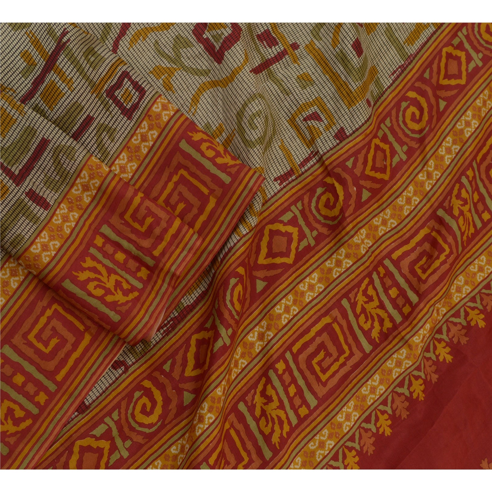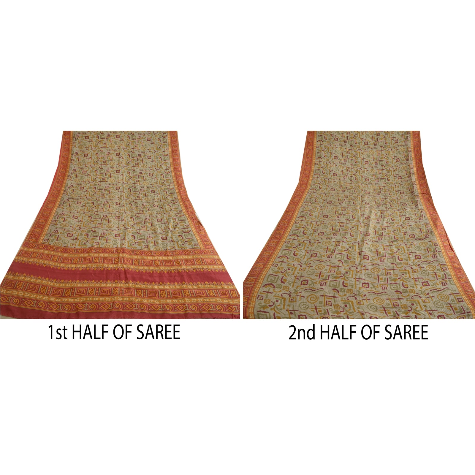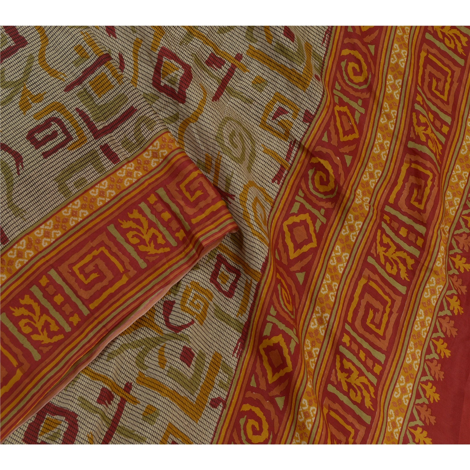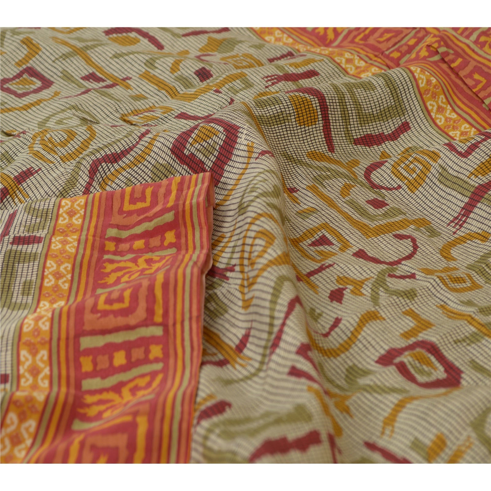 Sanskriti Vintage Sarees Ivory Indian Printed Pure Silk Sari Soft Craft Sustainable Fabric