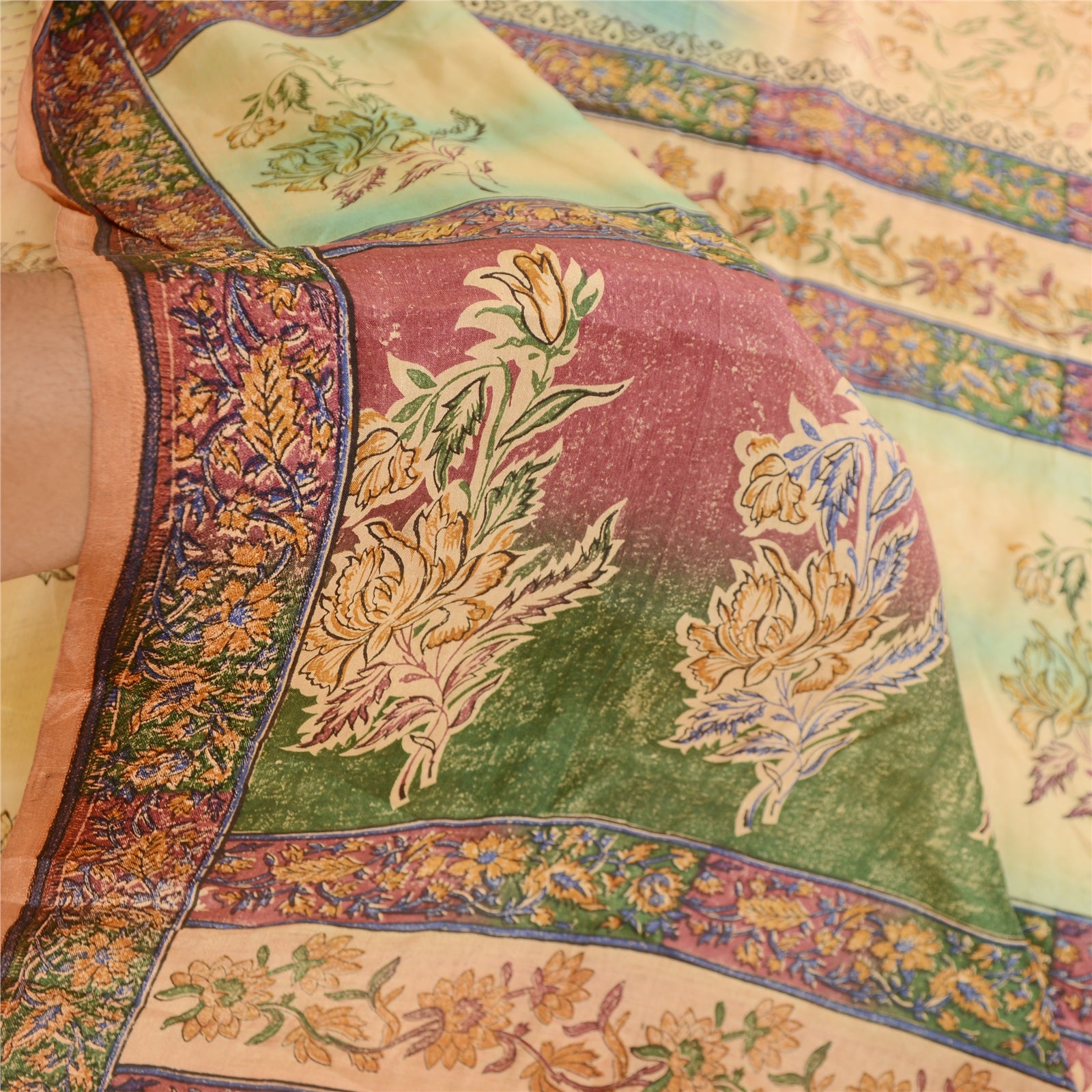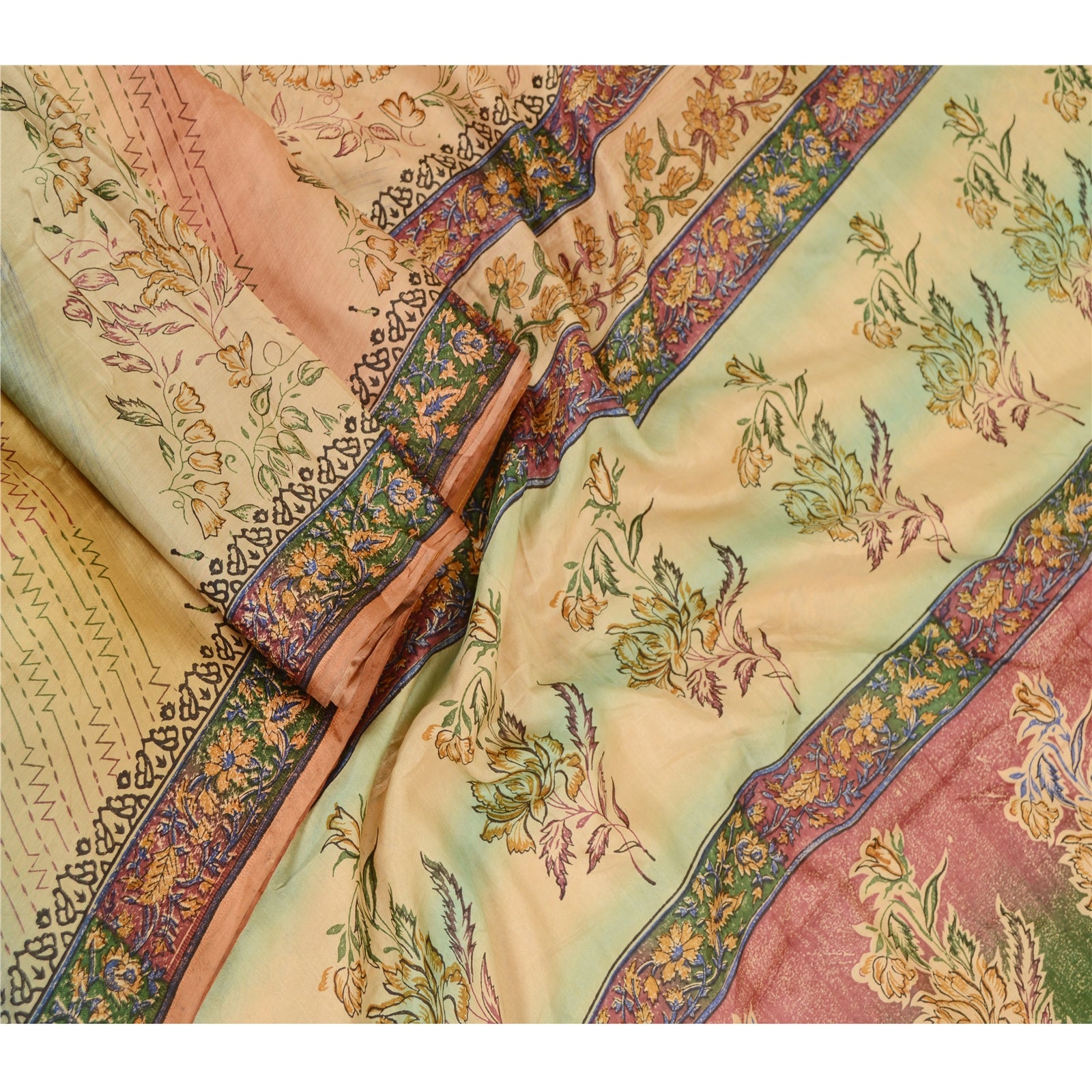Sanskriti Vintage Sarees Multi 100% Pure Silk Printed Sari Floral Craft Sustainable Fabric