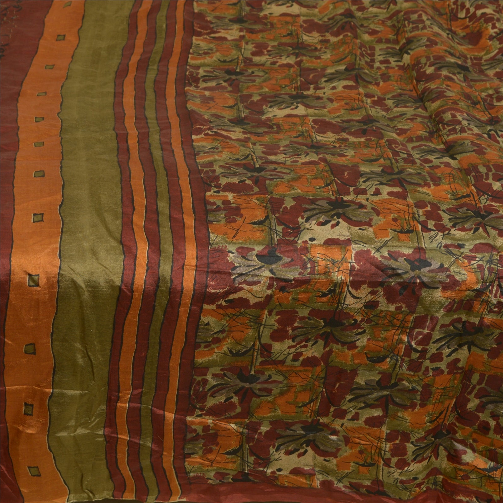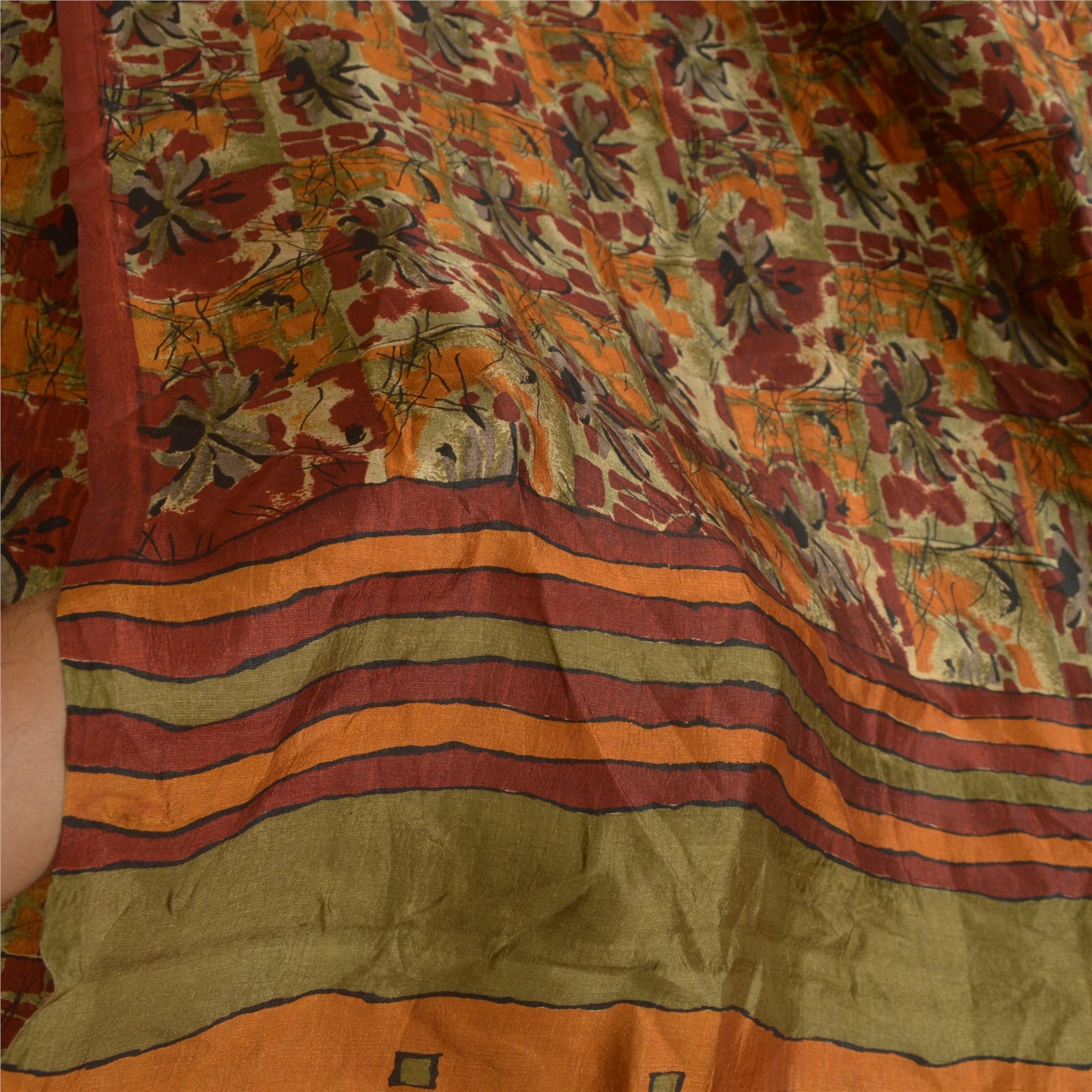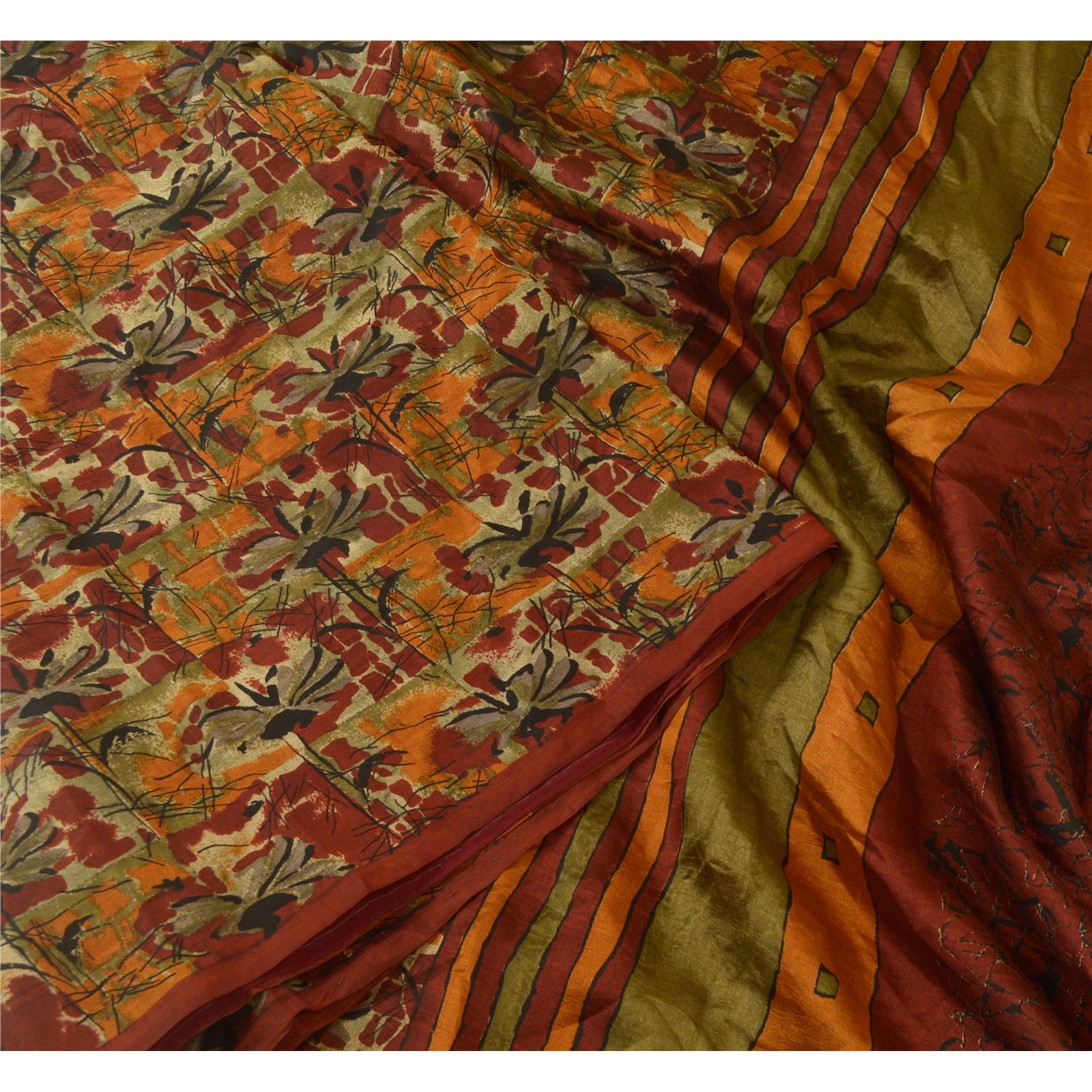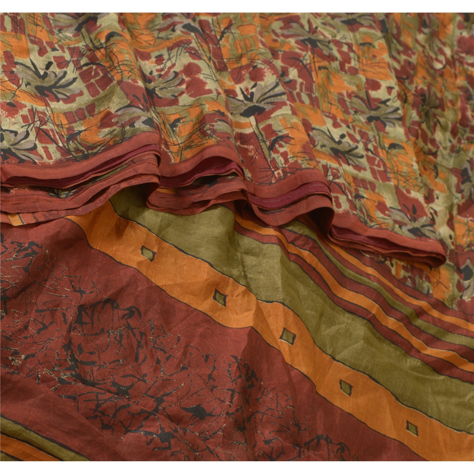 Sanskriti Vintage Sarees Multi 100% Pure Silk Printed Sari Soft 5YD Craft Sustainable Fabric