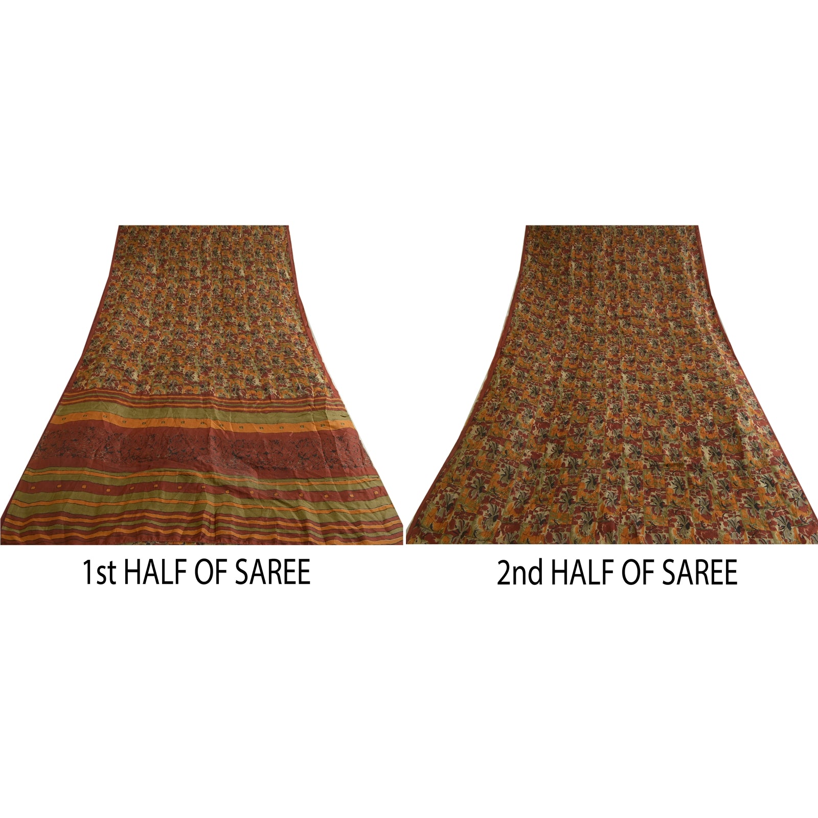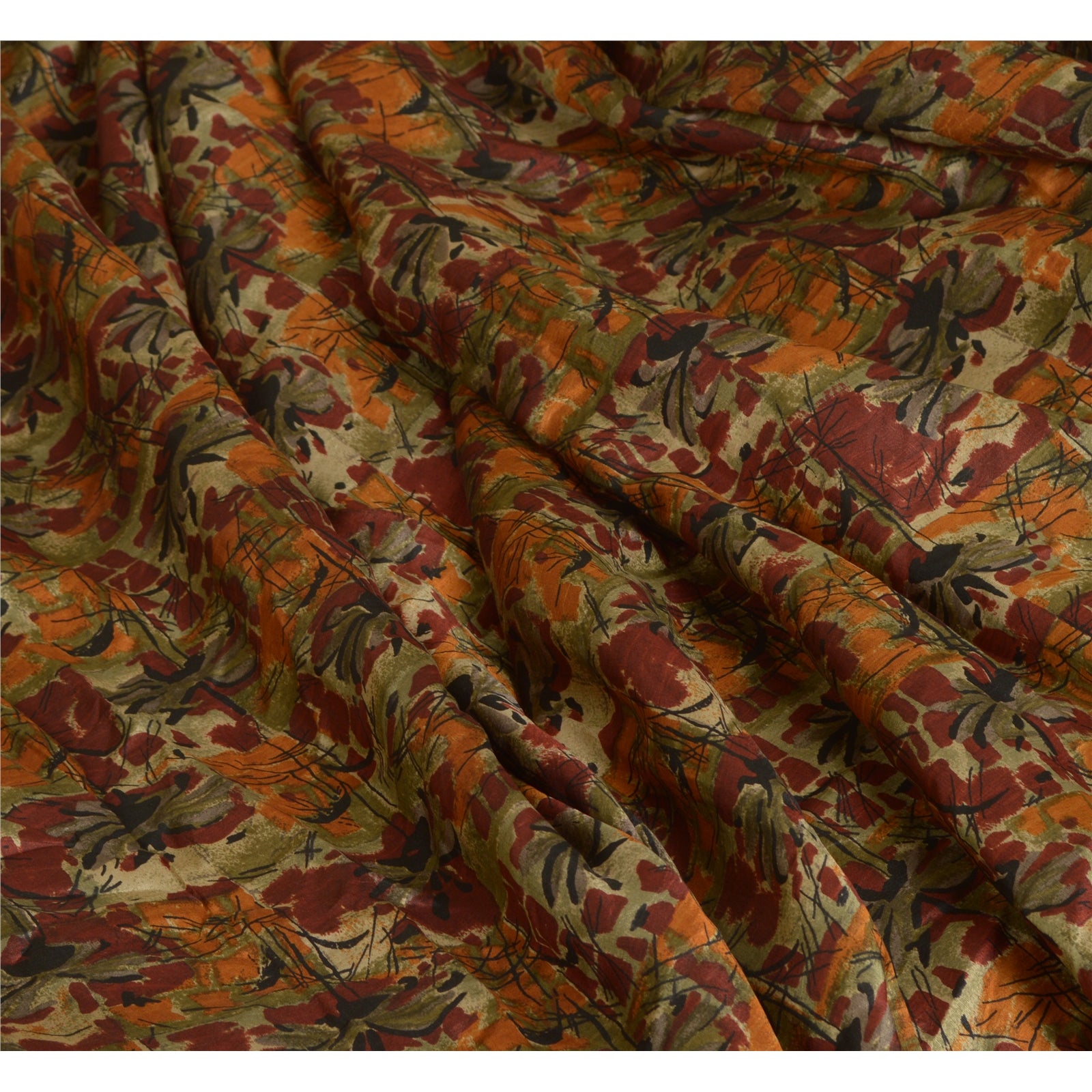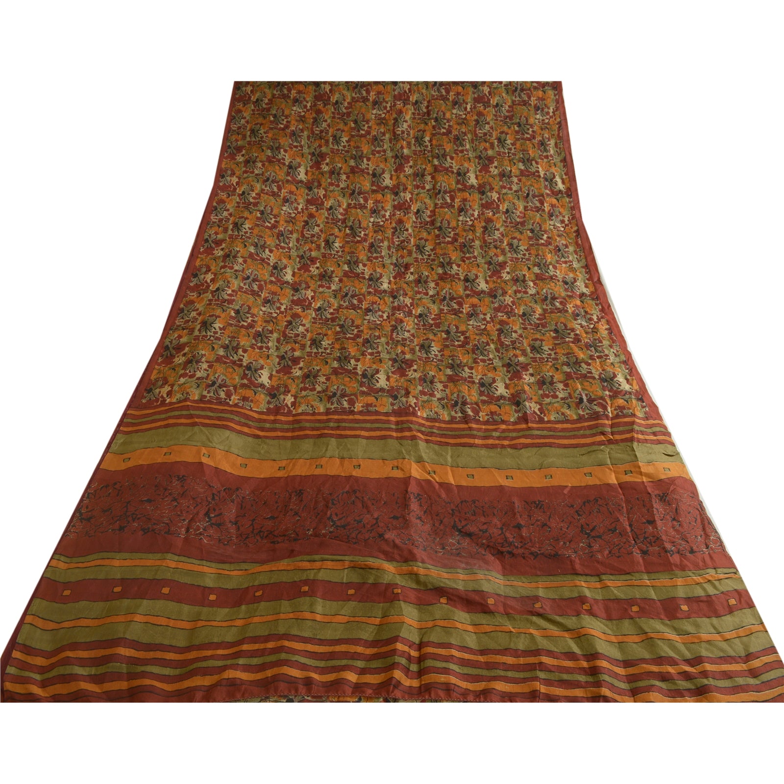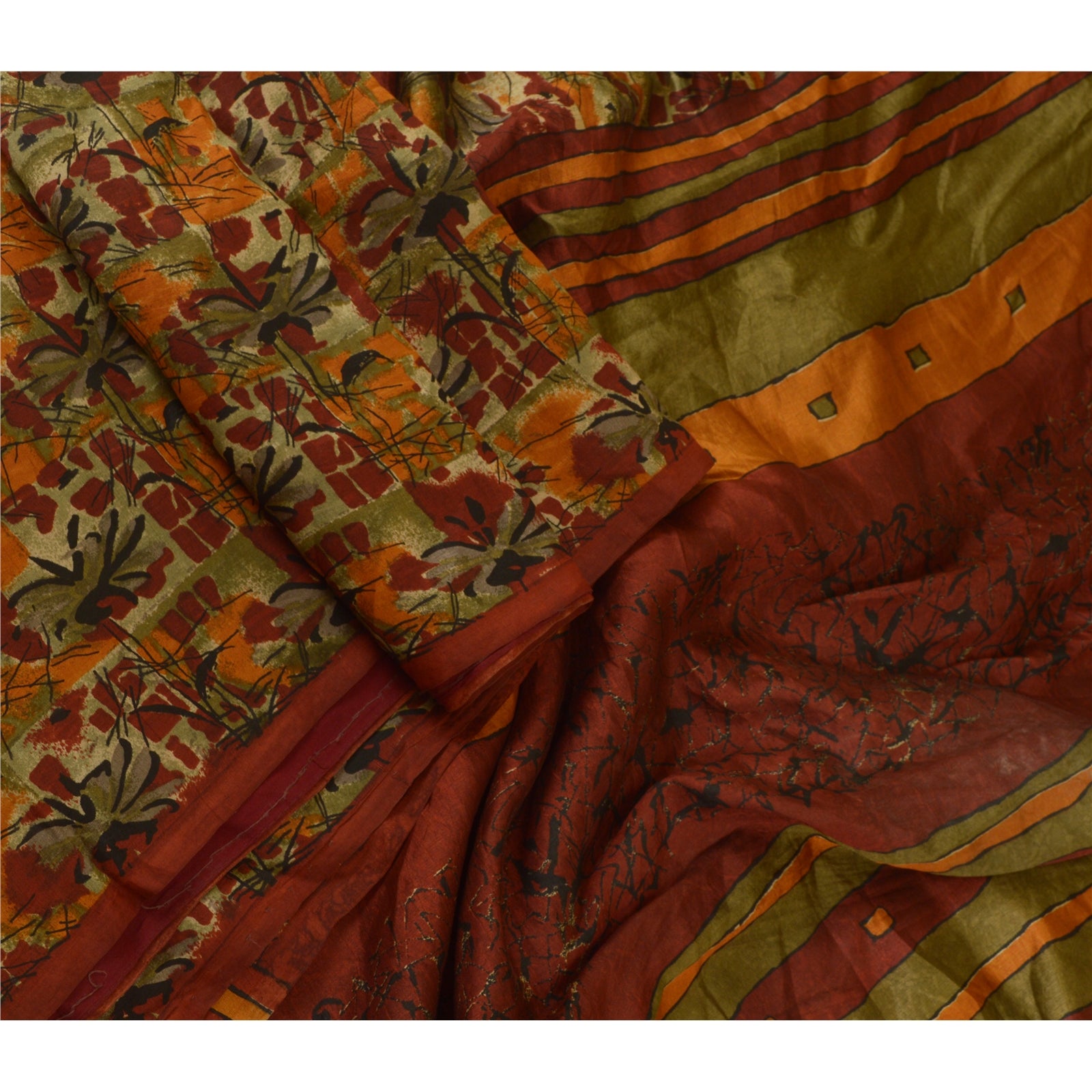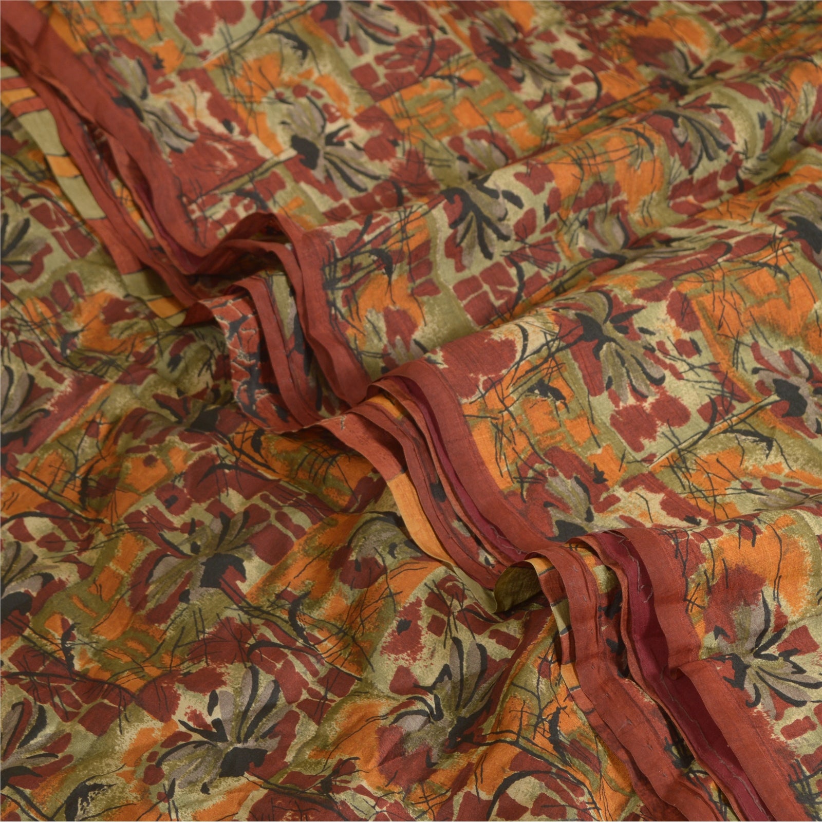Sanskriti Vintage Sarees Multi 100% Pure Silk Printed Sari Soft 5YD Craft Sustainable Fabric