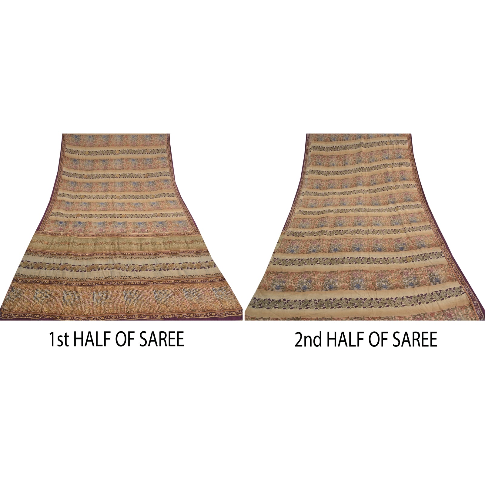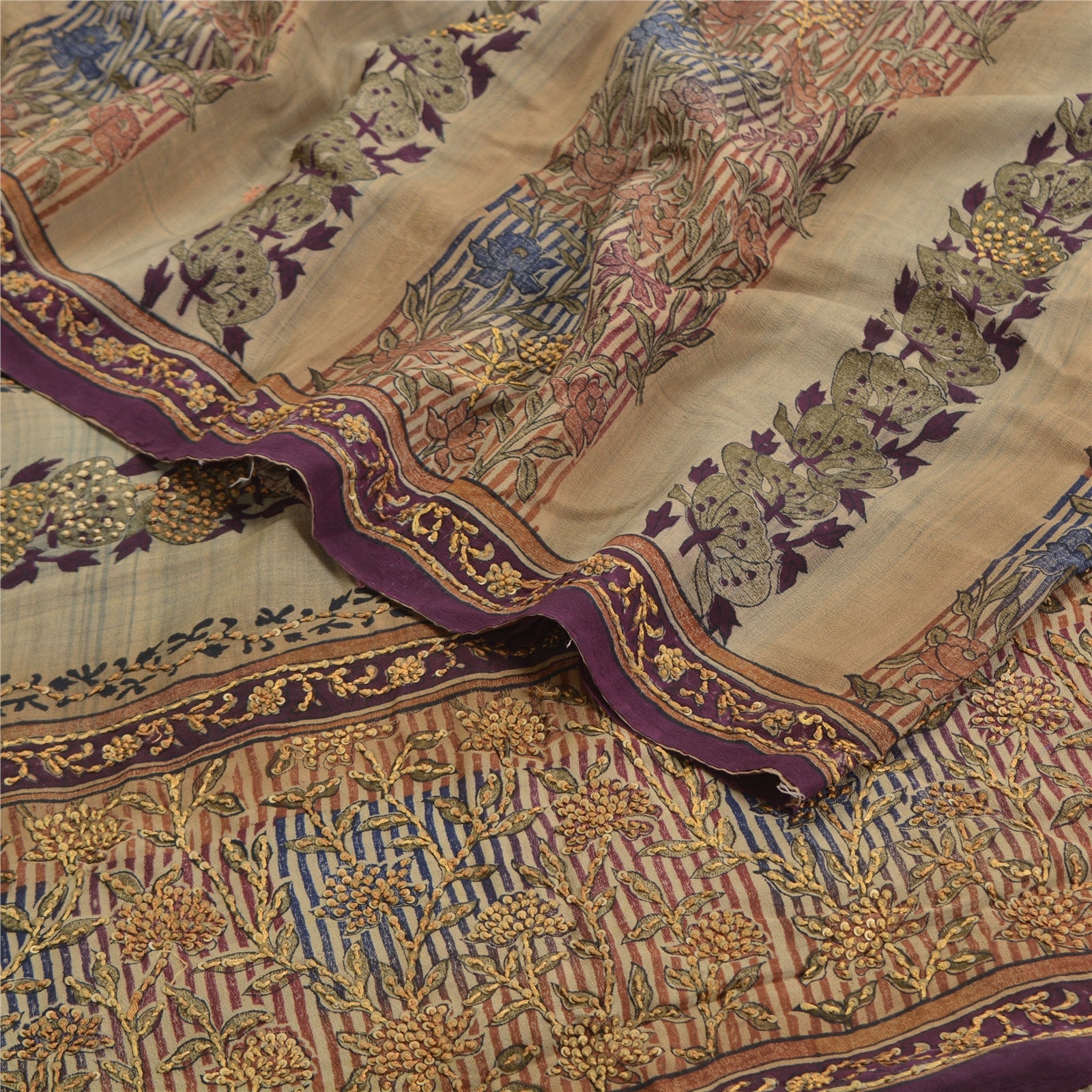 Sanskriti Vintage Sarees Multi Hand Beaded Printed Pure Crepe Sari Craft Sustainable Fabric