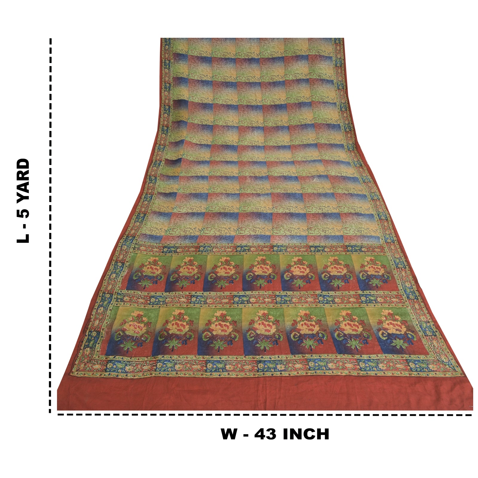 THE ITEM COLOR OR SHADE MAY BE DARKER OR LIGHTER THAN THE PICTURE.' • Beautiful multi colored printed pure crepe silk saree . • Pallu & Border has printed floral design. • Floral design in center part of sari . This unique vintage saree can be used for various crafting ideas even if you don't want to use it as a sari. Design a dress, use it as a as window dressing, upholstery, sarongs, throw, dress making and table linen much more. Let your creative juices flow and use this decorated Sustainable Fabric in multiple fashion. International buyers please note: Import duties, taxes, and charges are not included in the item price or postage cost. These charges are the buyer's responsibility. Please check with your c
