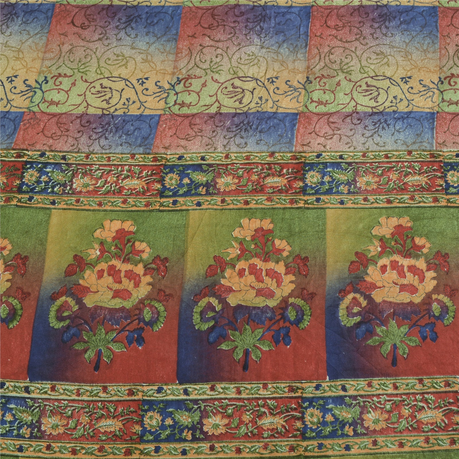 Sanskriti Vintage Sarees Multi Pure Crepe Silk Printed Sari 5yd Craft Sustainable Fabric