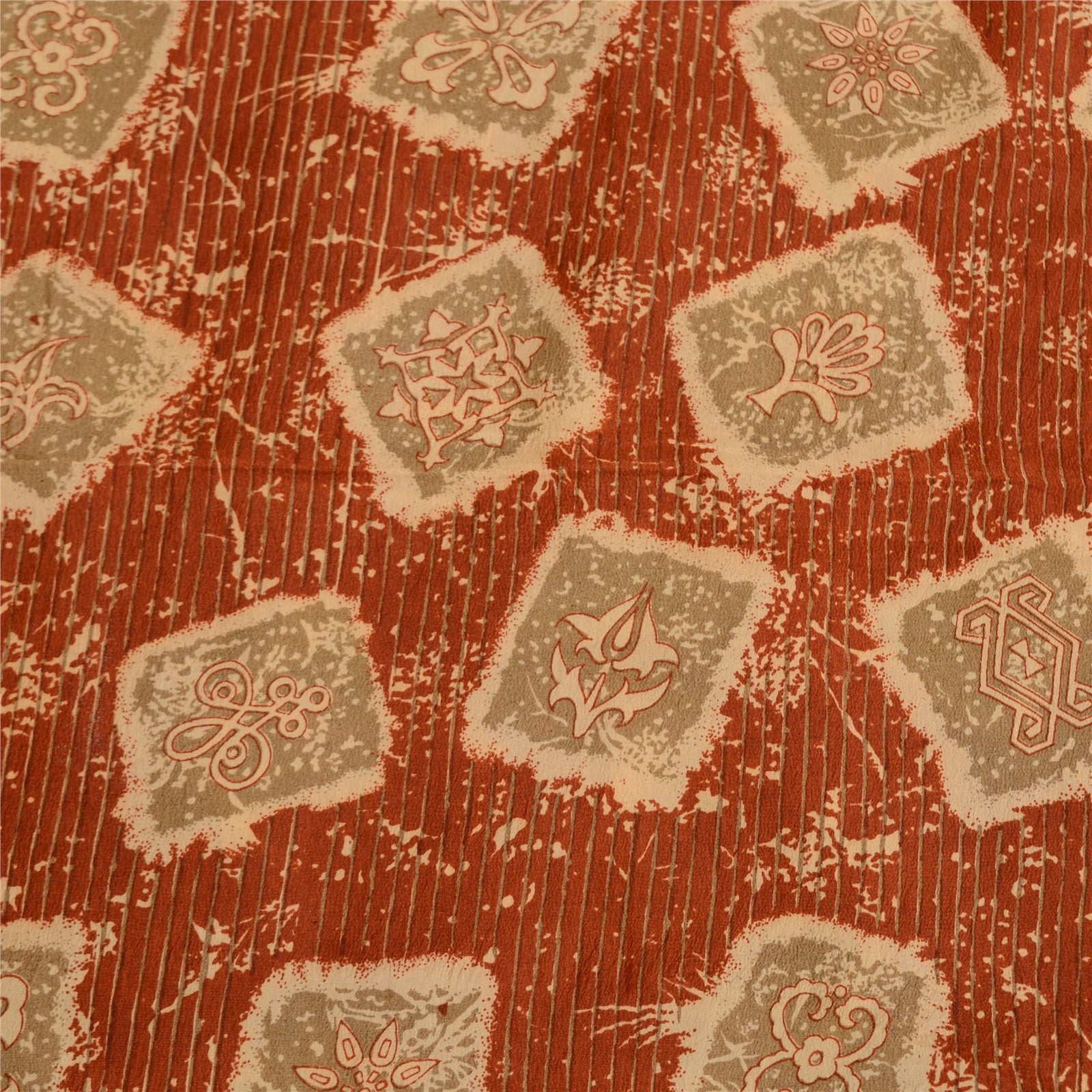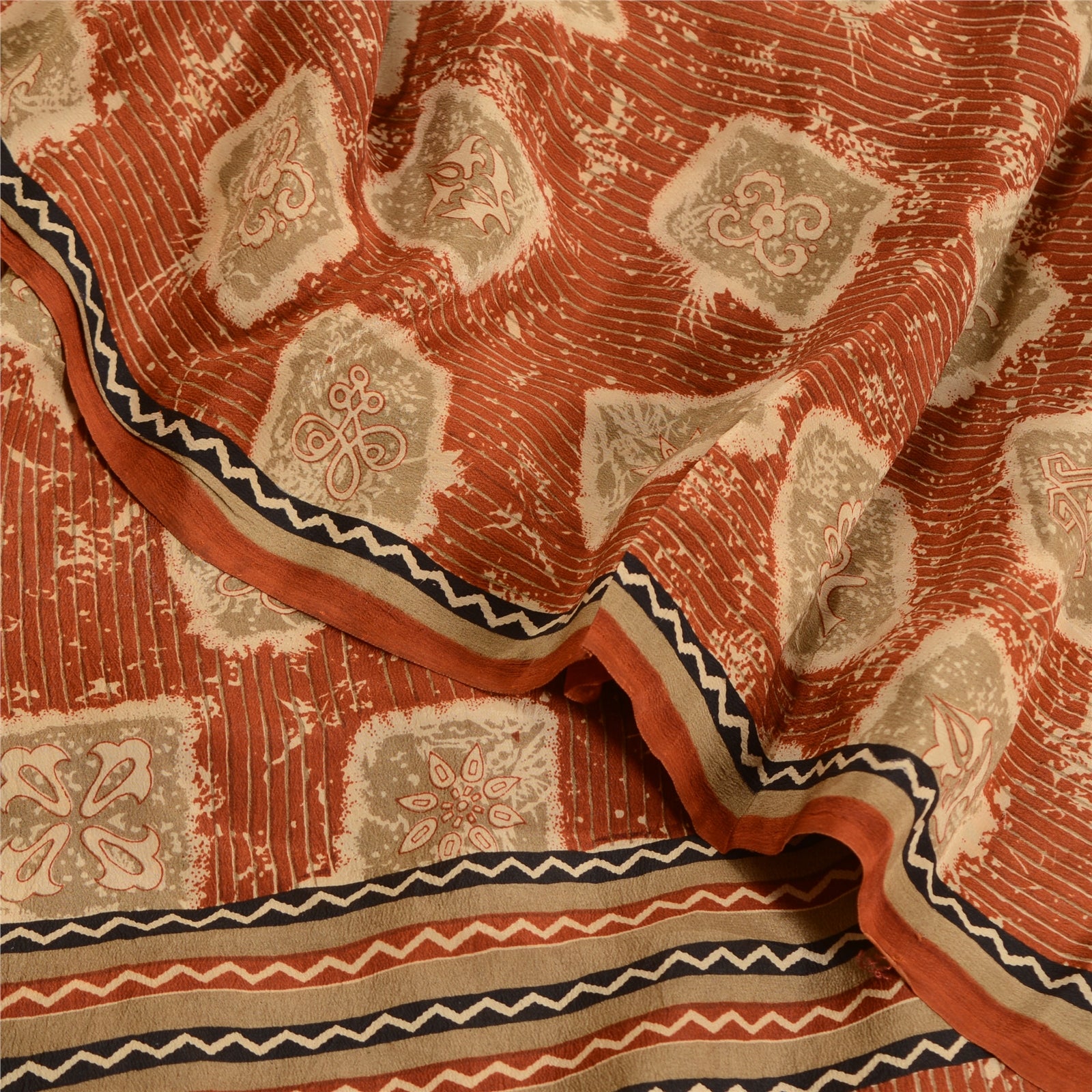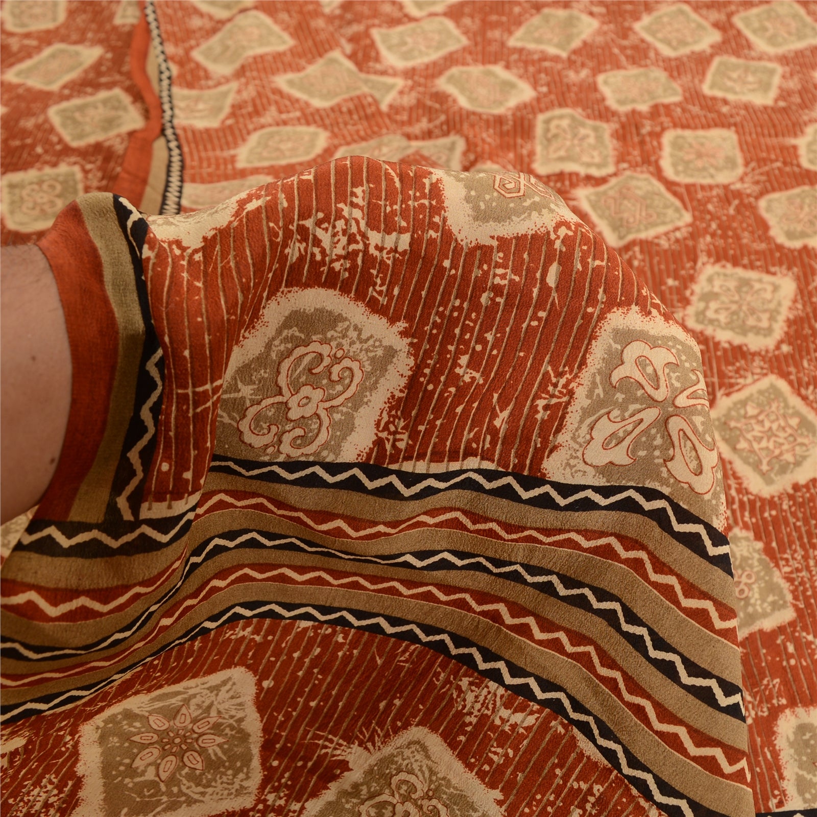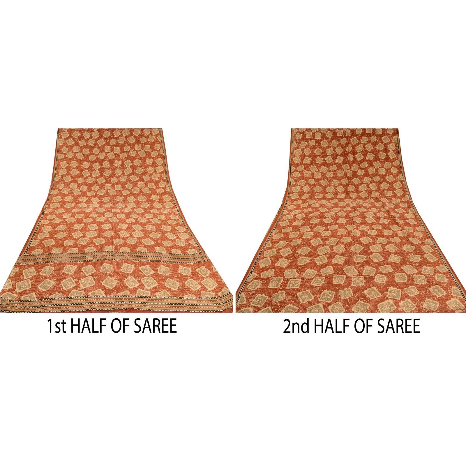 Sanskriti Vintage Sarees Orange 100% Pure Crepe Silk Printed Sari Craft Sustainable Fabric