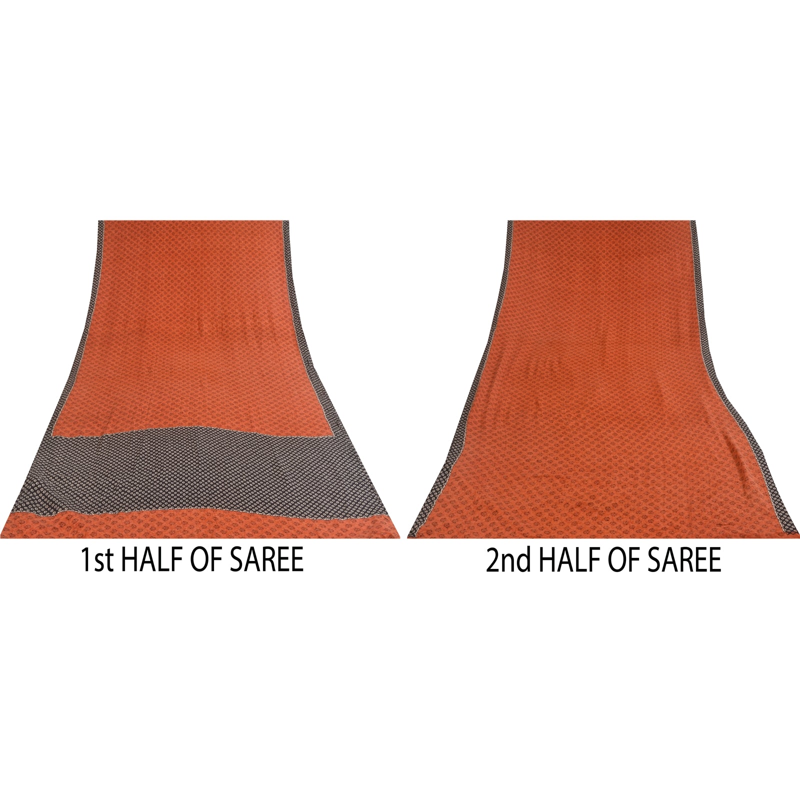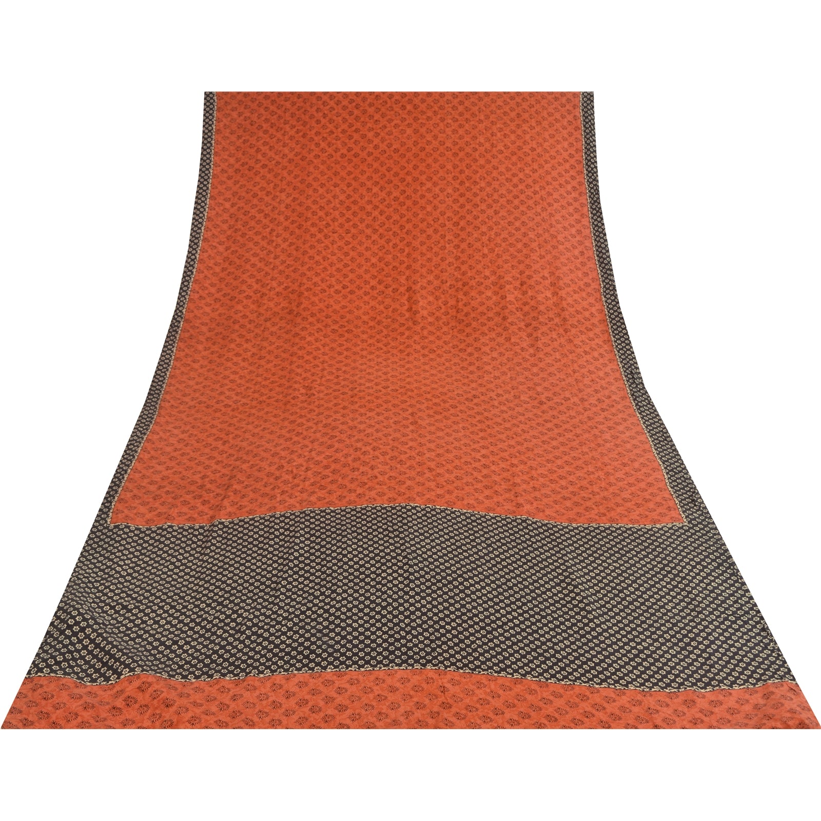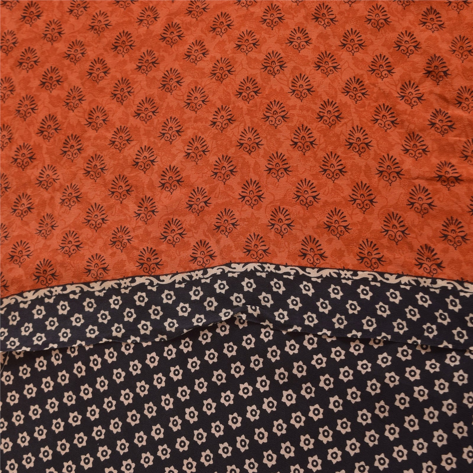 Sanskriti Vintage Sarees Orange Pure Crepe Silk Printed Sari 5+yd Craft Sustainable Fabric