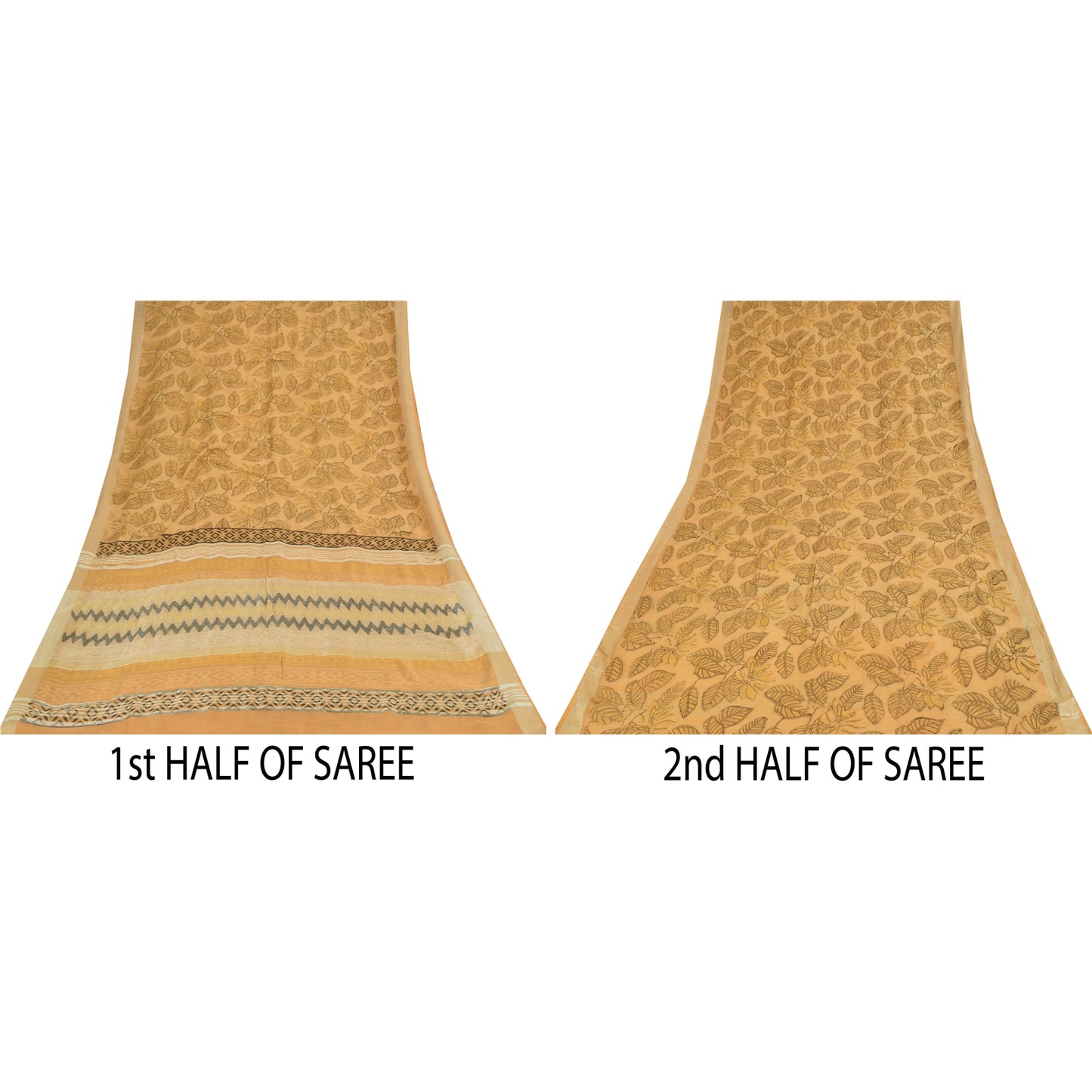 Sanskriti Vintage Sarees Peach Hand Block Printed Pure Cotton Sari 5+yd Fabric