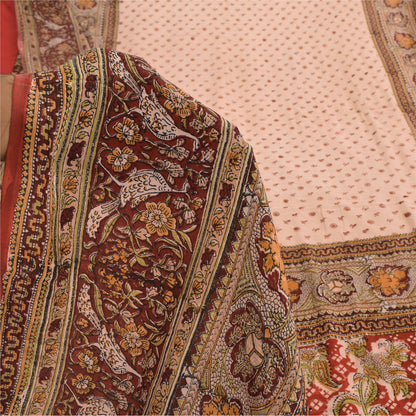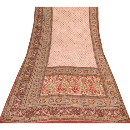 Sanskriti Vintage Sarees Peach Hand Block Printed Pure Crepe Silk Sari Sustainable Fabric