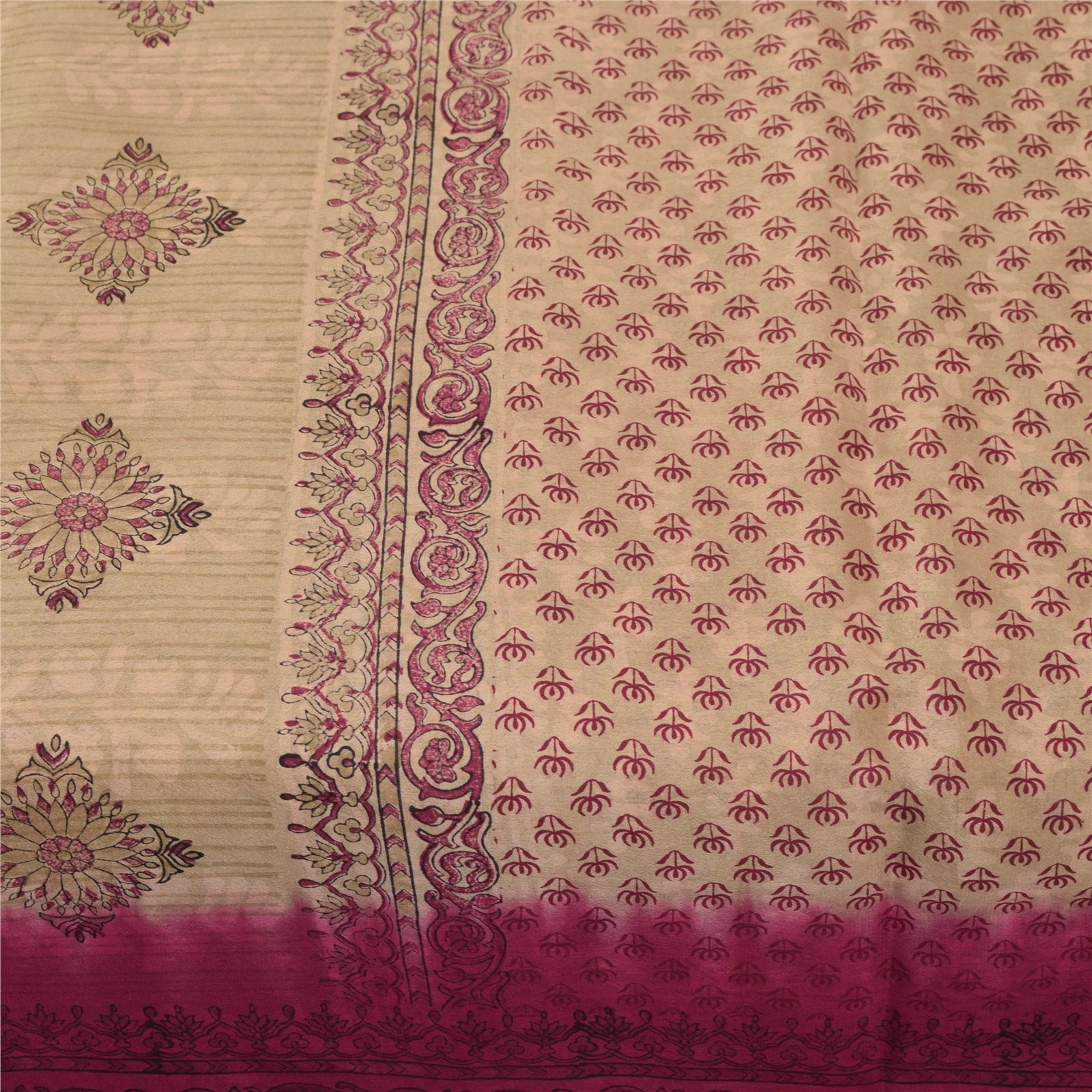 Sanskriti Vintage Sarees Peach Indian Pure Silk Printed Sari 6yd Craft Fabric