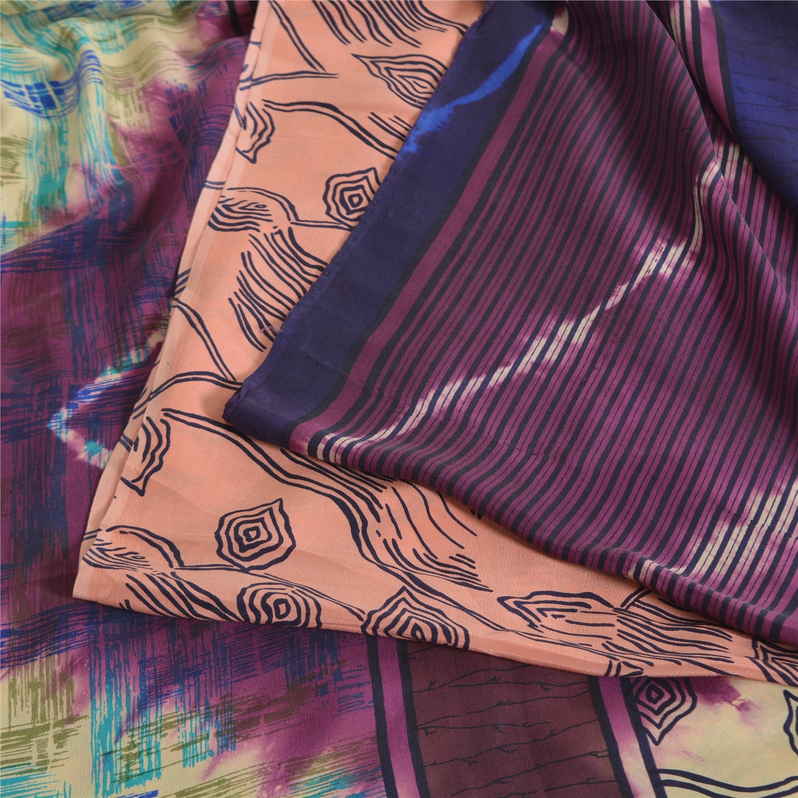 Sanskriti Vintage Sarees Pink Pure Crepe Silk Printed Sari 5yd Craft Sustainable Fabric