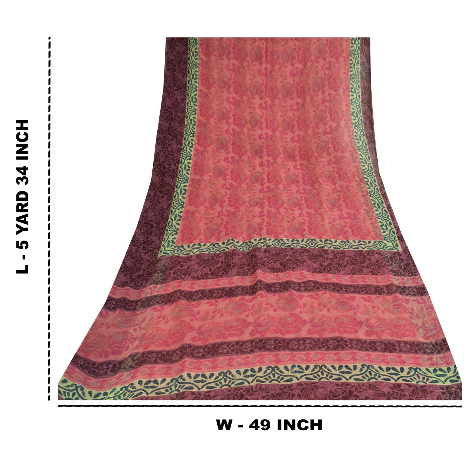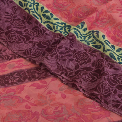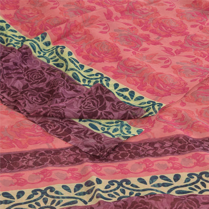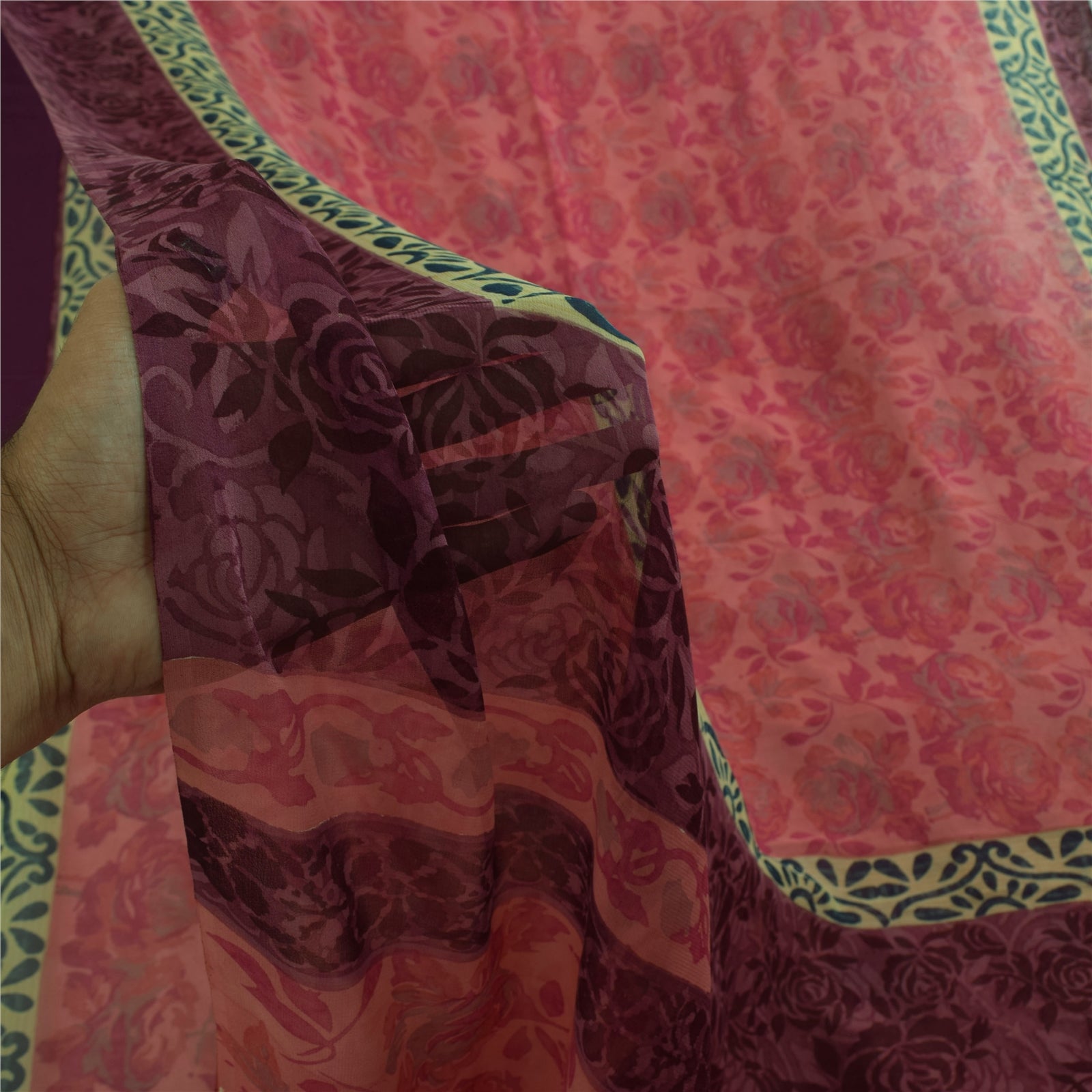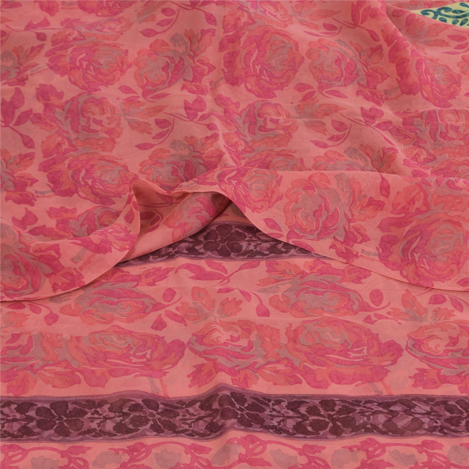 Sanskriti Vintage Sarees Pink Pure Georgette Silk Printed Sari 5+yd Craft Sustainable Fabric