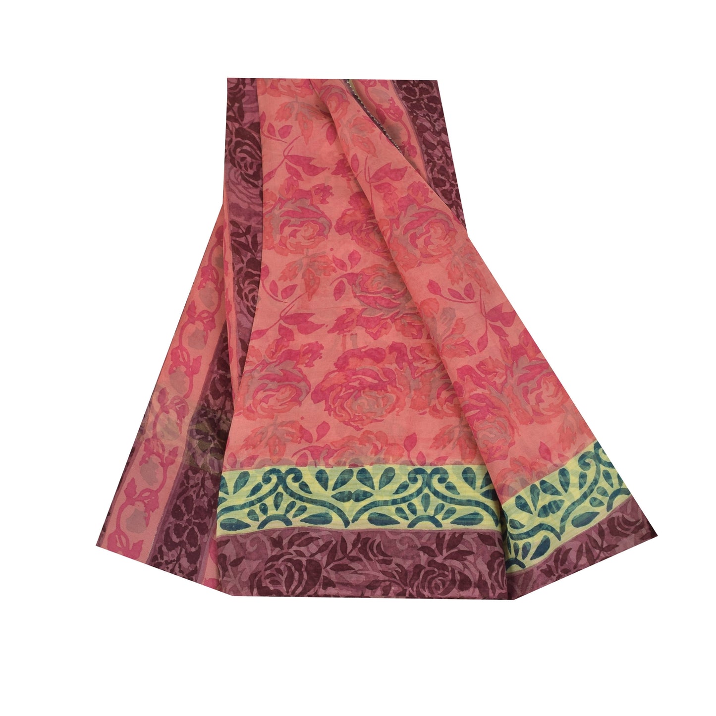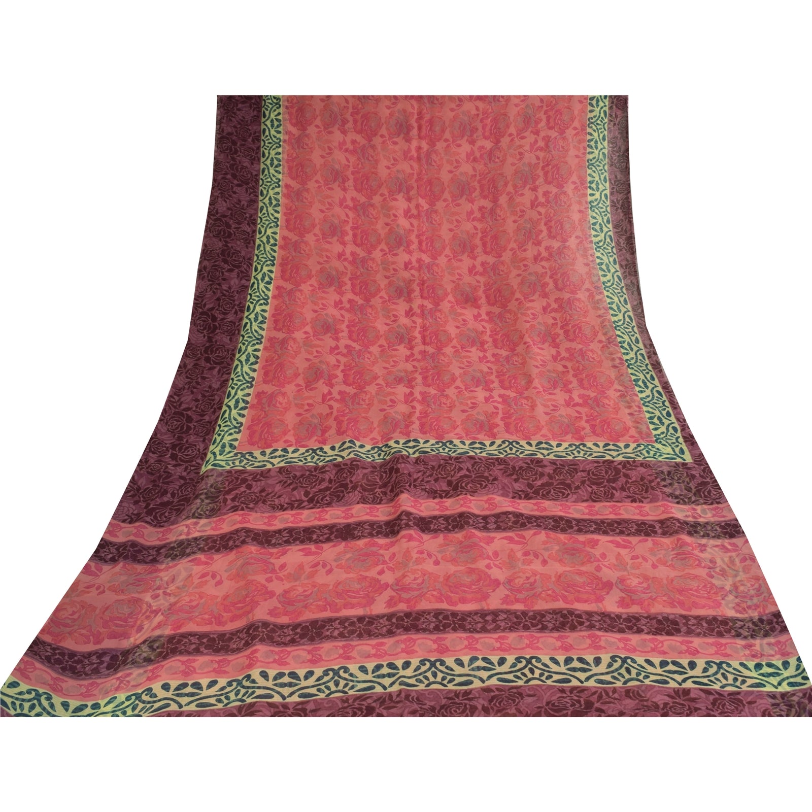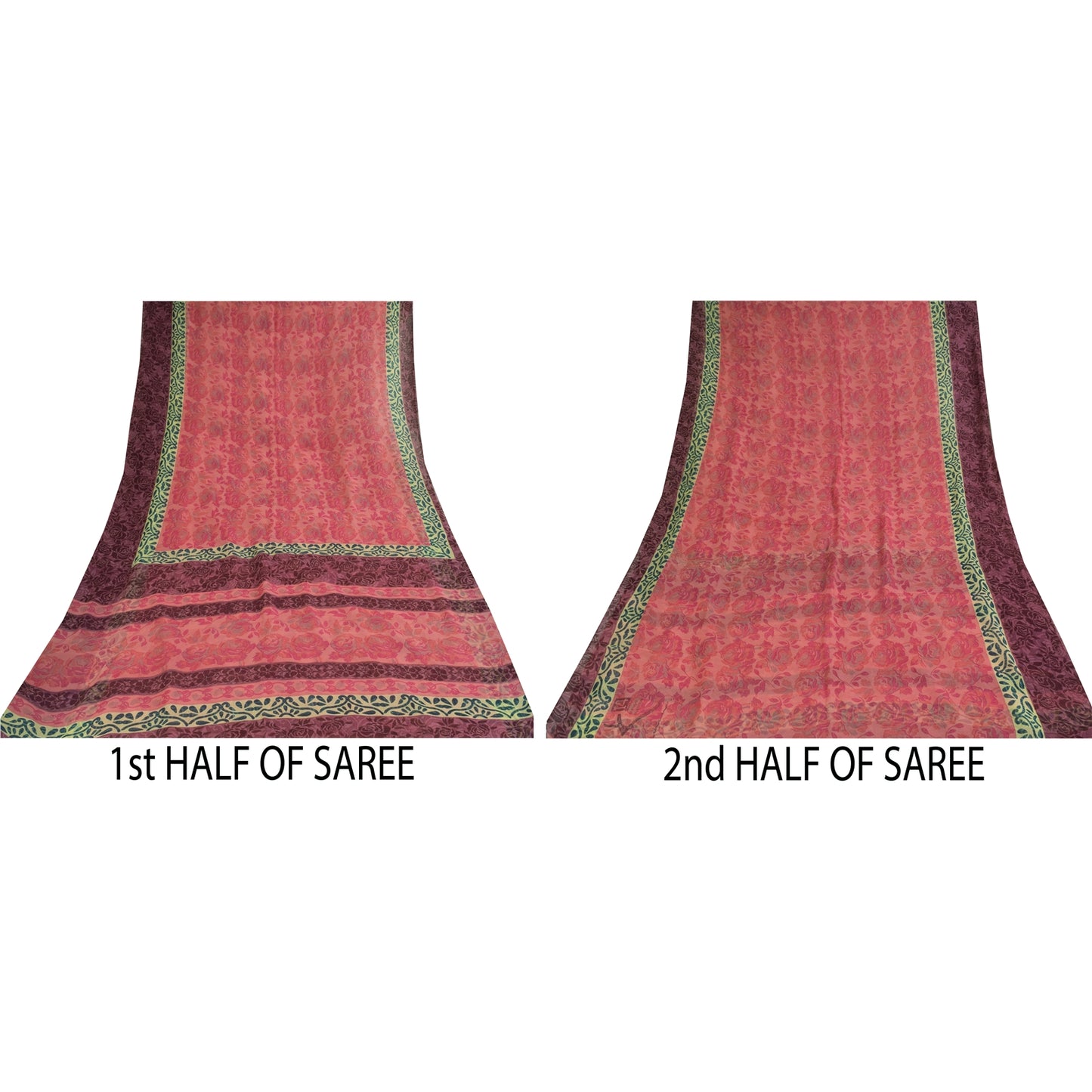 Sanskriti Vintage Sarees Pink Pure Georgette Silk Printed Sari 5+yd Craft Sustainable Fabric