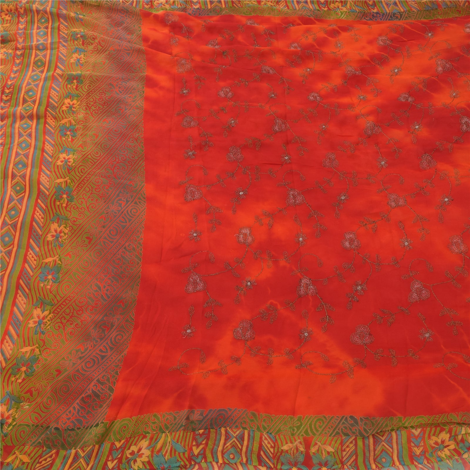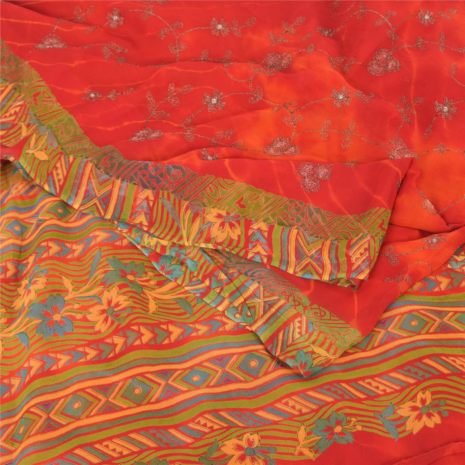 Sanskriti Vintage Sarees Pure Georgette Silk Embroidered Tie-Dye Sari 5yd Sustainable Fabric
