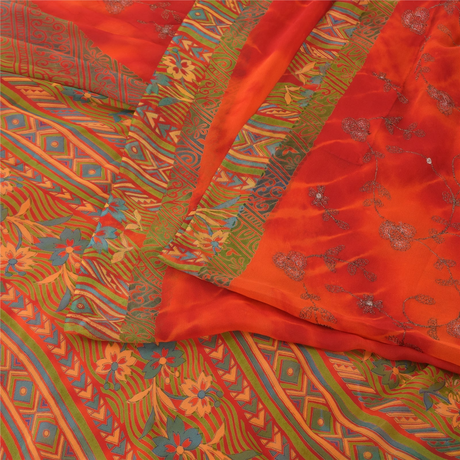 'THE ITEM COLOR OR SHADE MAY BE DARKER OR LIGHTER THAN THE PICTURE.' Beautiful multi colored pure georgette silk embroidered sari/Sustainable Fabric. Pallu & border features has floral design embellished with multi color printed work. The center of the saree has embroidered thread work with tie-dye base Sustainable Fabric is really enhancing beauty of the sari. This saree can be used for various crafting ideas too. Use it for dress designing, as a throw, as window dressing, upholstery, table linen and much more. Let your creative juices flow. Shipping note: 'International buyers please note: Import duties, taxes, and charges are not included in the item price or postage cost. These charges are the buyer's responsibility. Please check with your country's customs office to determine what these additional costs will be prior to bidding or buying. Buyer will pay custom duty/tax. It is calculated and charged differently by every country. As a seller I do not have any control over it. VAT or sales tax is calculated by the platform at the time of checkout. Customs charge is payable at the time of delivery.' SKU: PS-63526