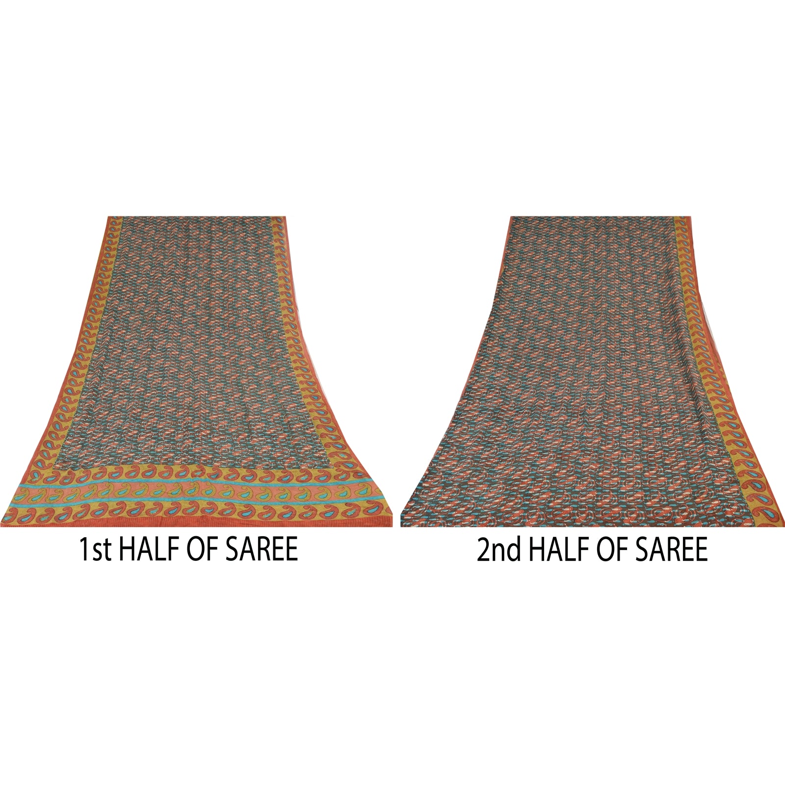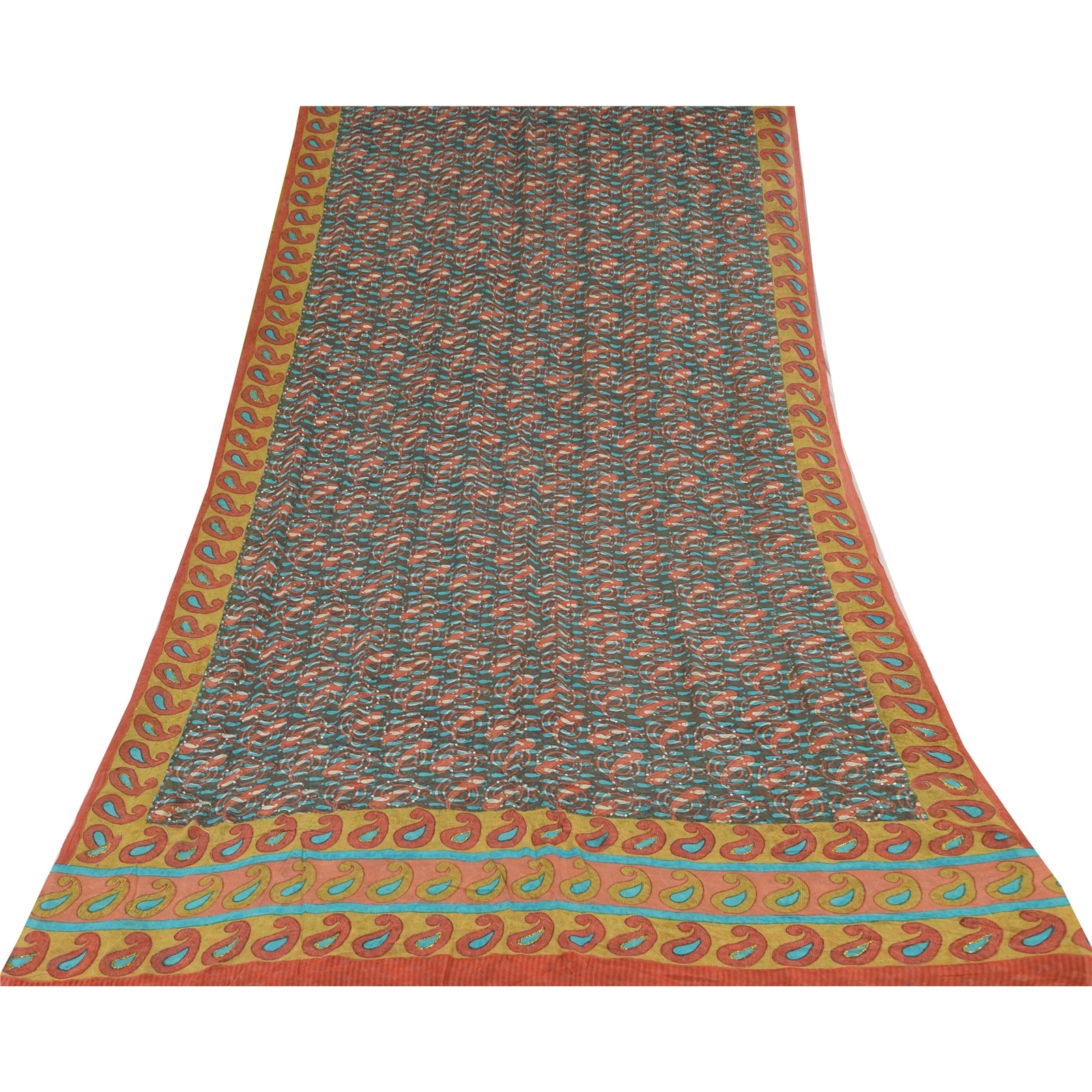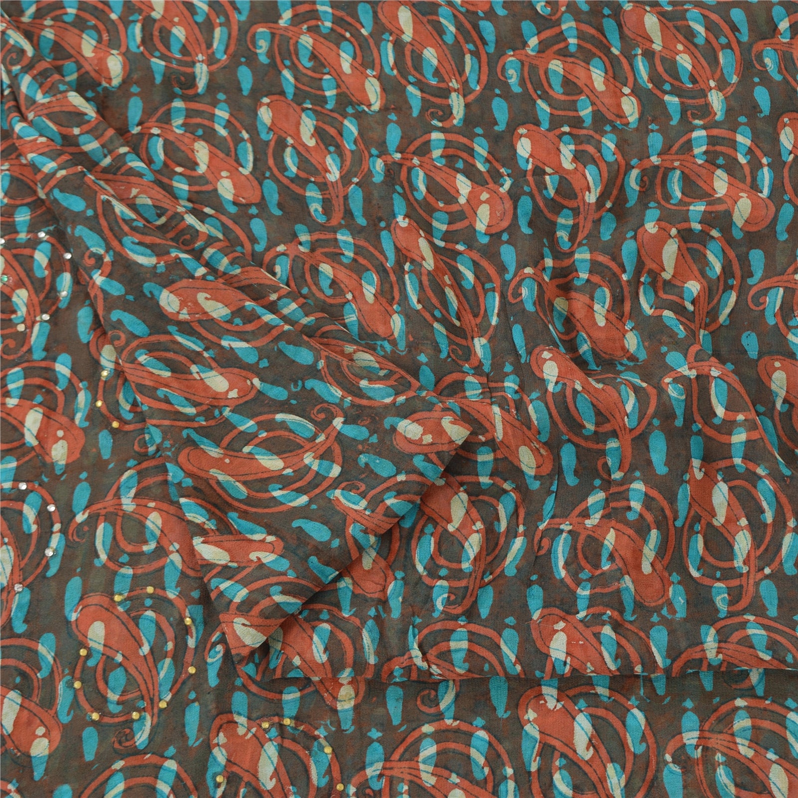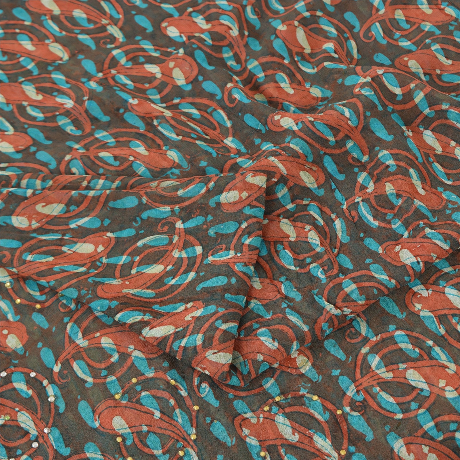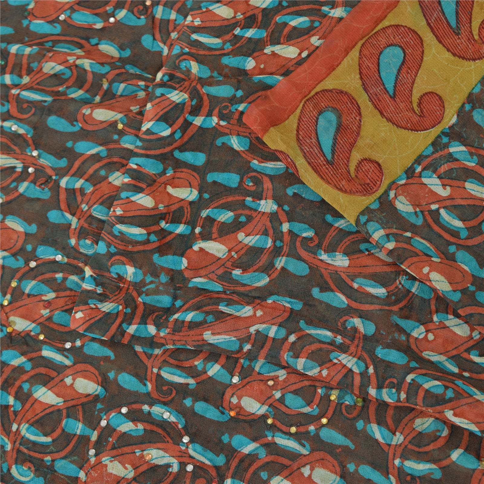 Sanskriti Vintage Sarees Pure Georgette Silk Paisley Printed Sari Craft Sustainable Fabric