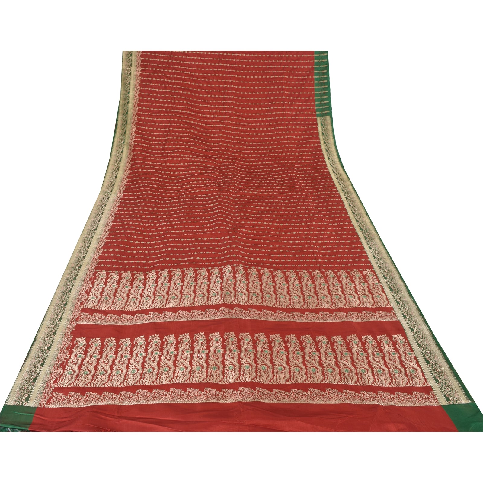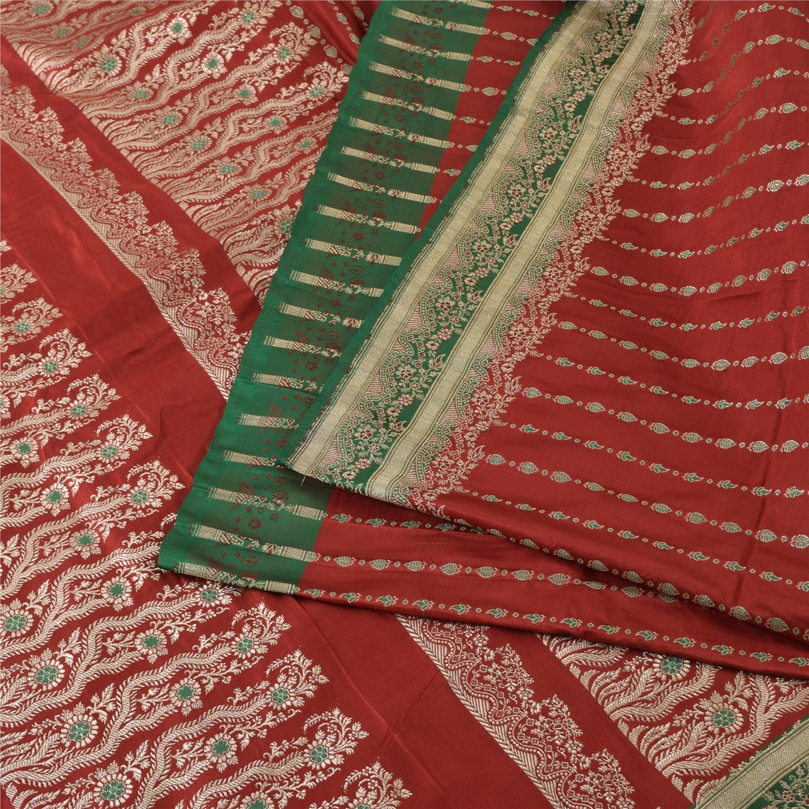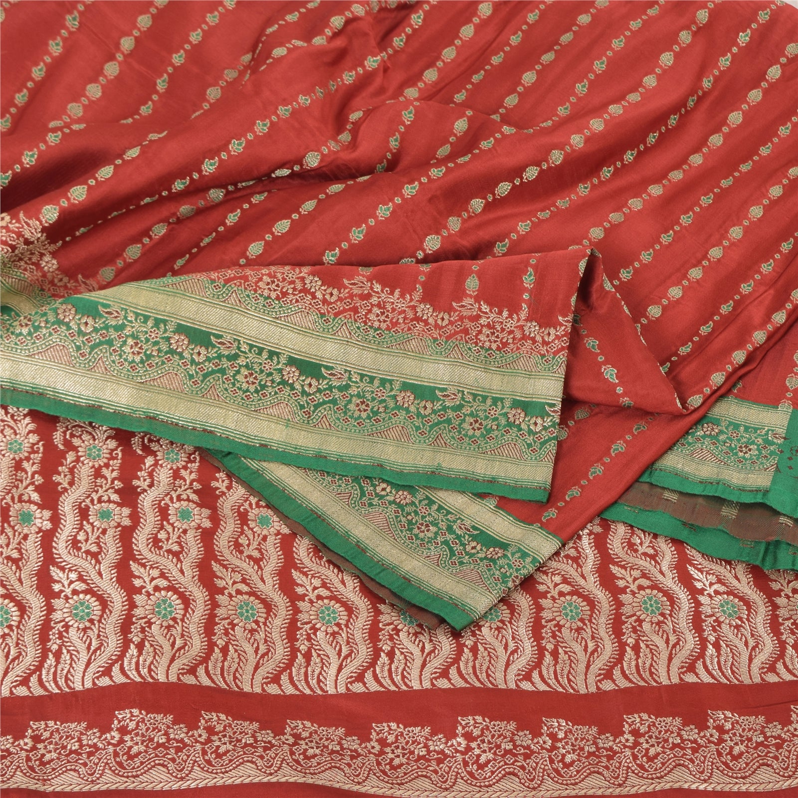 THE ITEM COLOR OR SHADE MAY BE DARKER OR LIGHTER THAN THE PICTURE.' An Awesome Sari In 100% Pure Satin Silk Red/Green Colored Brocade Banarasi Woven Sari/Sustainable Fabric. Pallu & Border Features floral design embellished with metallic golden zari work . You Can See Center Portion Of The Sari Has Similar Work With Floral Design. This unique vintage saree can be used for various crafting ideas for example design a dress, use it as a throw, as window dressing, upholstery, table linen and much more. Let your creative juices flow and use this decorated Sustainable Fabric in multiple fashion Shipping note: International buyers please note: Import duties, taxes, and charges are not included in the item price or postage cost. These charges are the buyer's responsibility. Please check with your country's customs office to determine what these additional costs will be prior to bidding or buying. Buyer will pay custom duty/tax. It is calculated and charged differently by every country. As a seller I do not have any control over it. VAT or sales tax is calculated by the platform at the time of checkout. Customs charge is payable at the time of delivery. SKU: BHS-2685