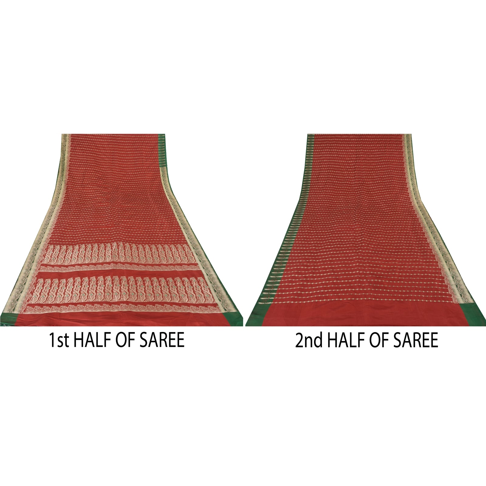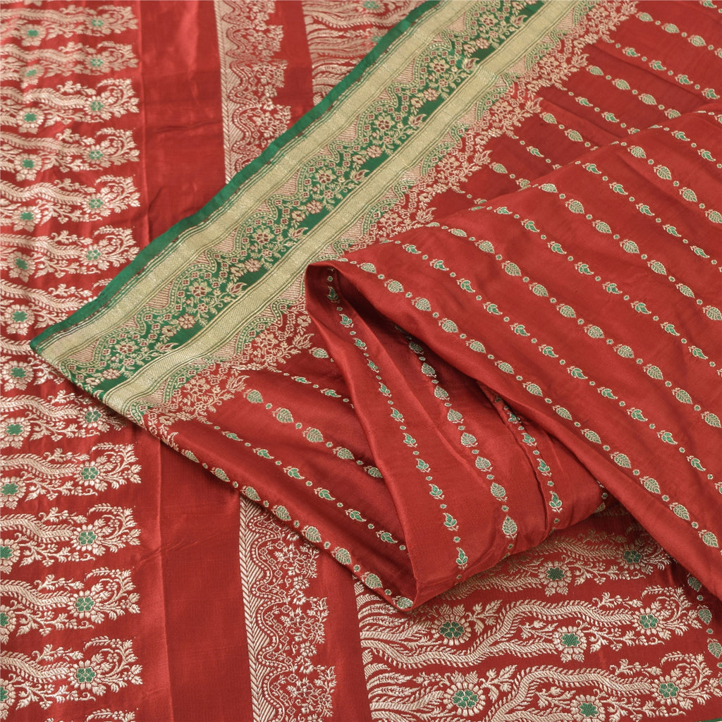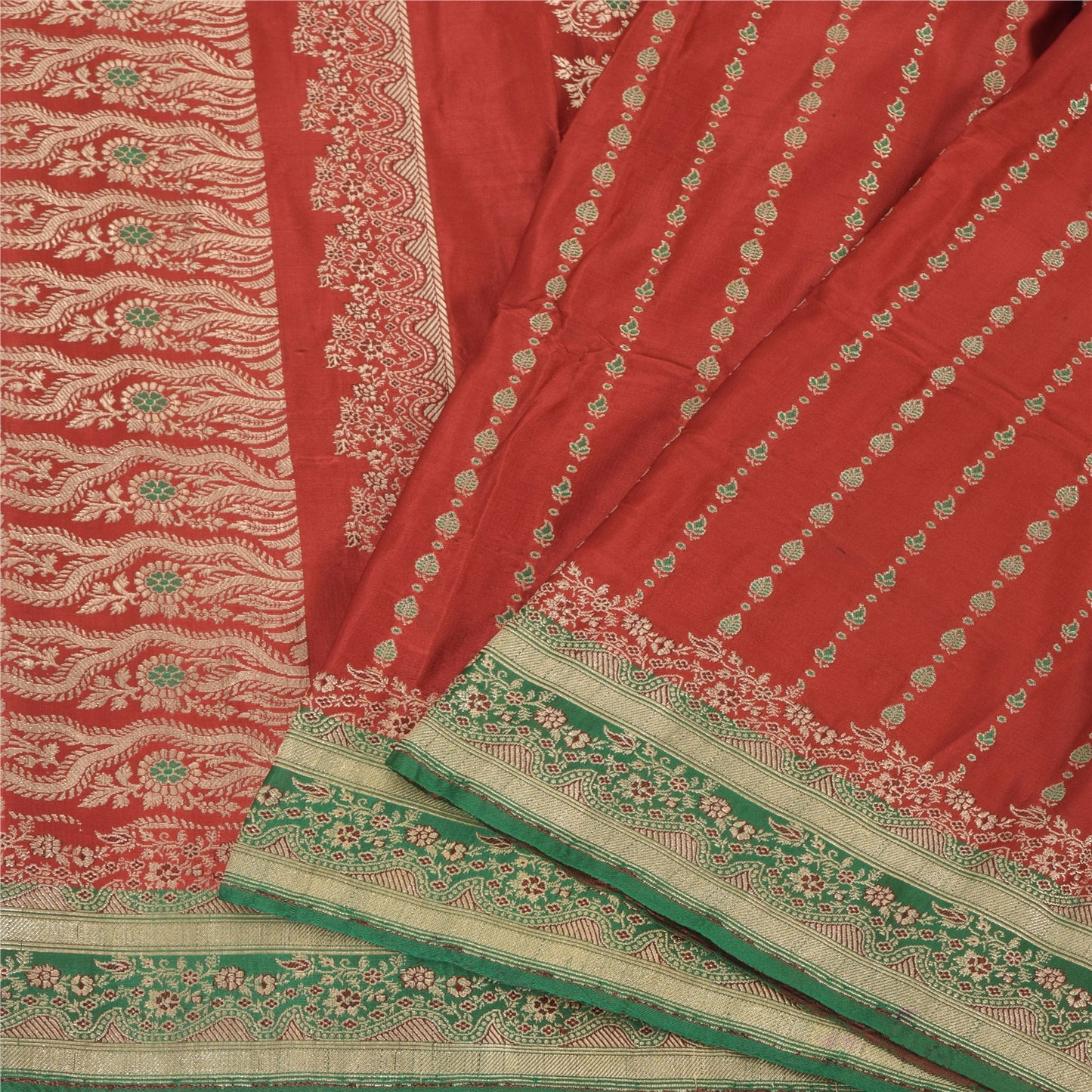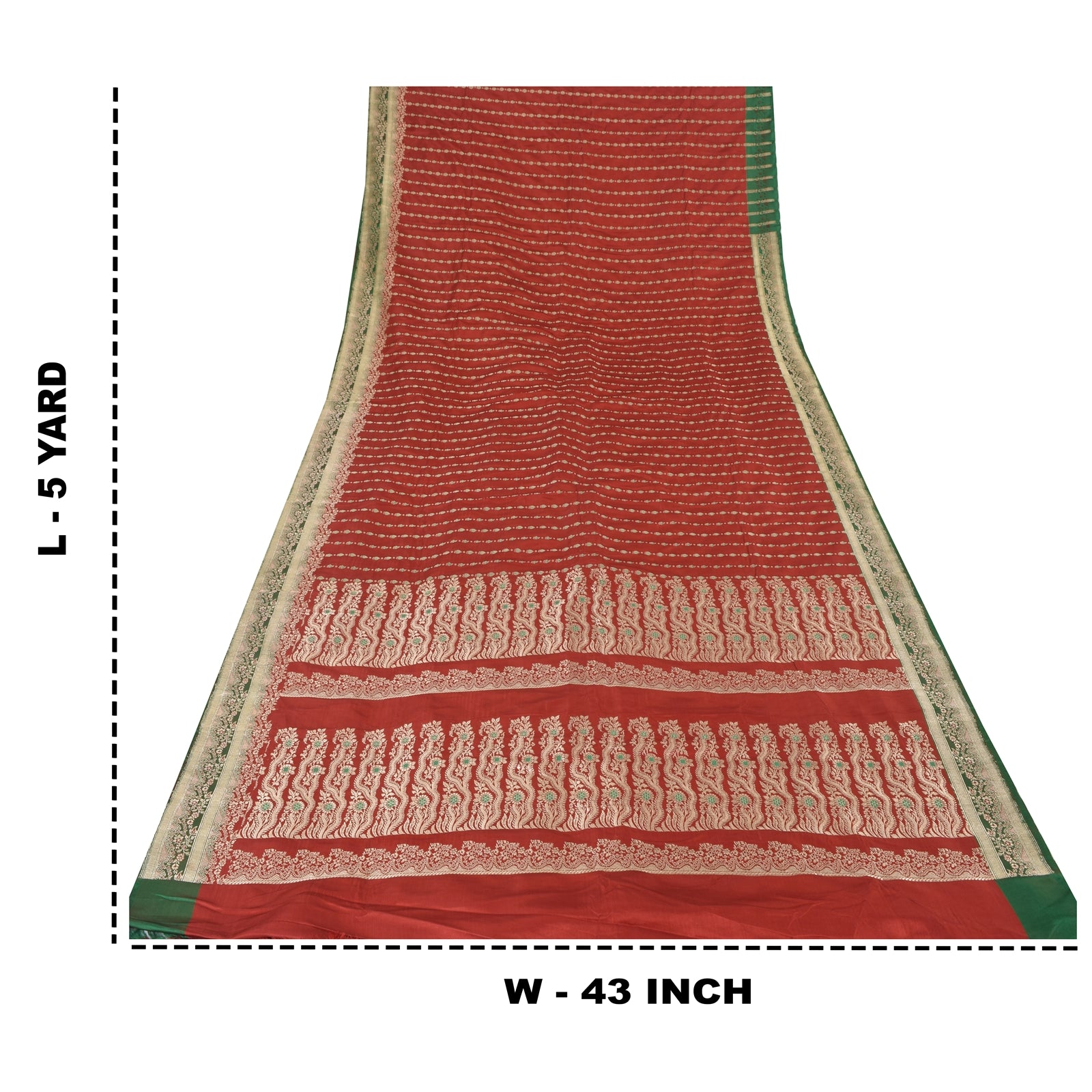 THE ITEM COLOR OR SHADE MAY BE DARKER OR LIGHTER THAN THE PICTURE.' An Awesome Sari In 100% Pure Satin Silk Red/Green Colored Brocade Banarasi Woven Sari/Sustainable Fabric. Pallu & Border Features floral design embellished with metallic golden zari work . You Can See Center Portion Of The Sari Has Similar Work With Floral Design. This unique vintage saree can be used for various crafting ideas for example design a dress, use it as a throw, as window dressing, upholstery, table linen and much more. Let your creative juices flow and use this decorated Sustainable Fabric in multiple fashion Shipping note: International buyers please note: Import duties, taxes, and charges are not included in the item price or postage cost. These charges are the buyer's responsibility. Please check with your country's customs office to determine what these additional costs will be prior to bidding or buying. Buyer will pay custom duty/tax. It is calculated and charged differently by every country. As a seller I do not have any control over it. VAT or sales tax is calculated by the platform at the time of checkout. Customs charge is payable at the time of delivery. SKU: BHS-2685