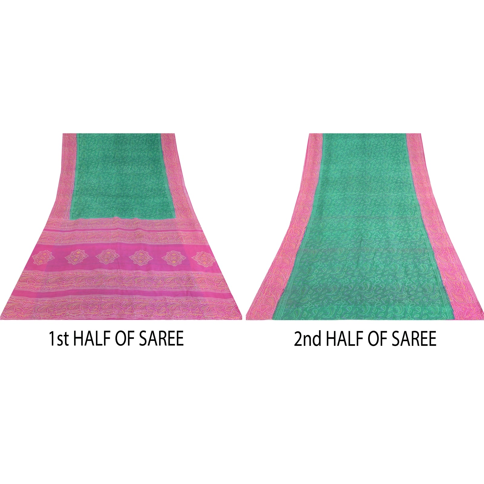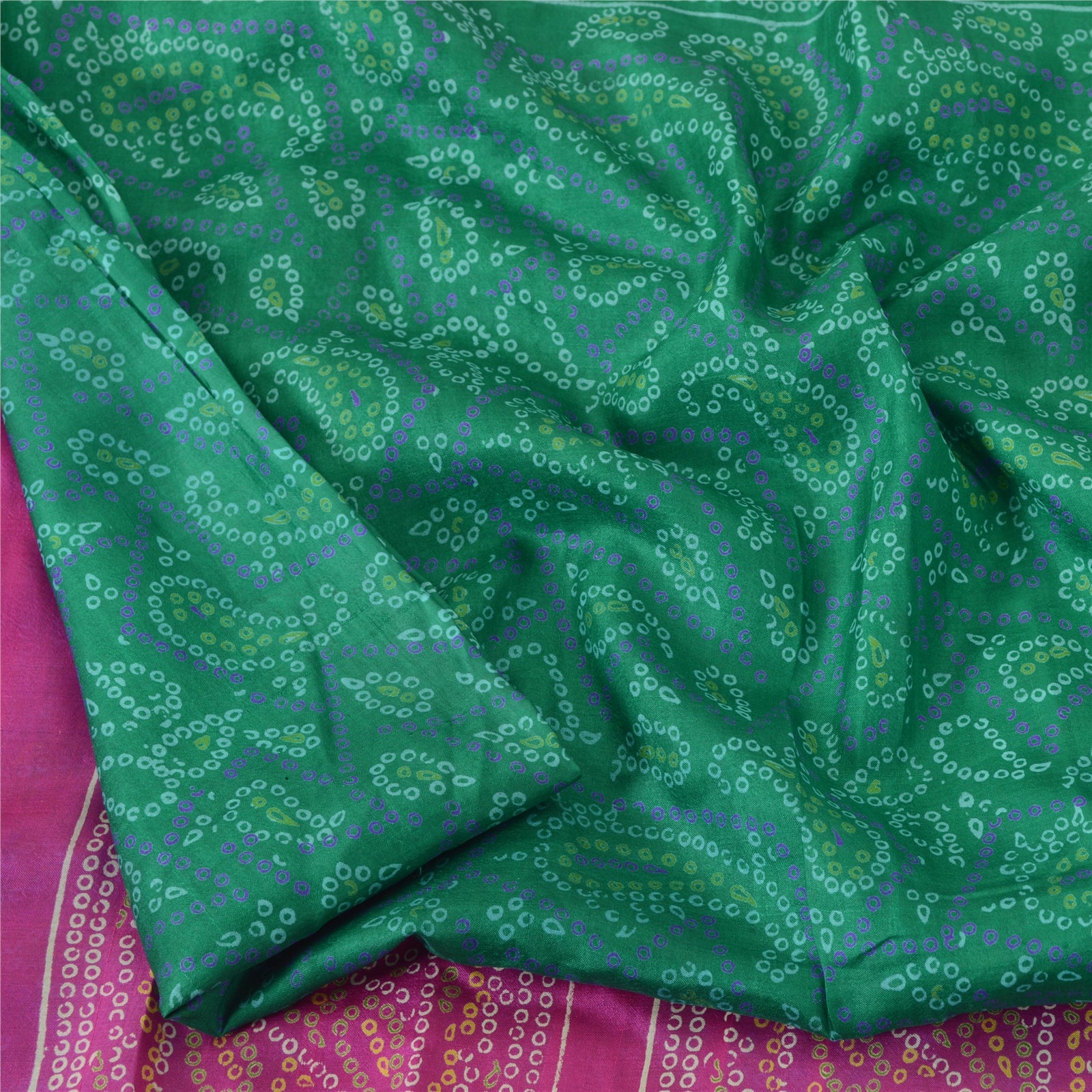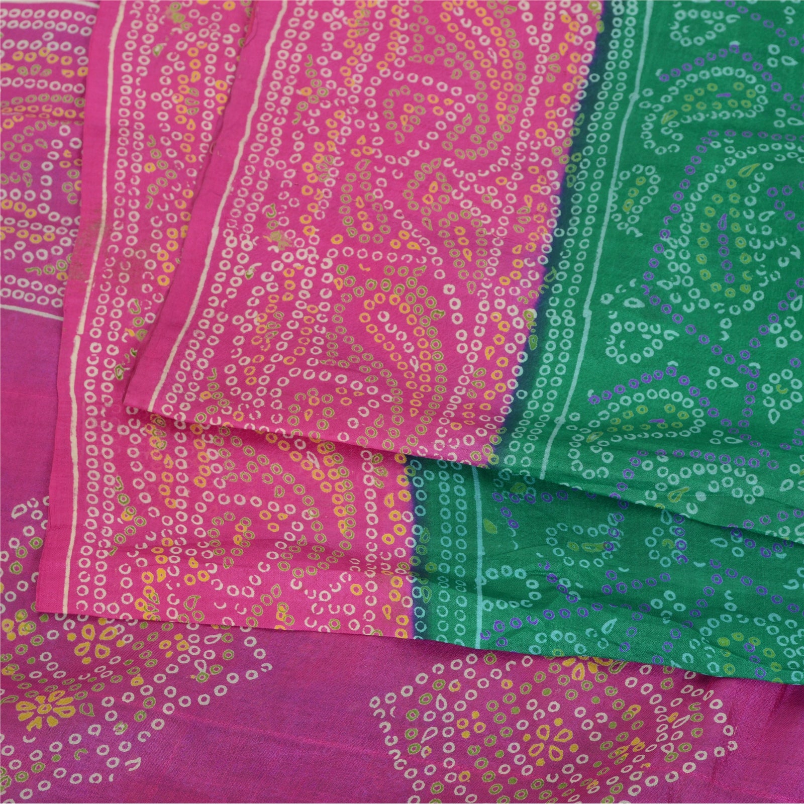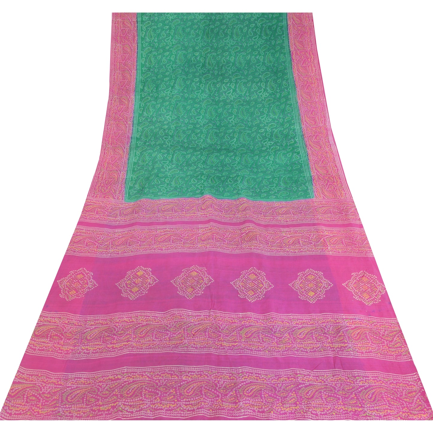 THE ITEM COLOR OR SHADE MAY BE DARKER OR LIGHTER THAN THE PICTURE.' • Beautiful green & pink colored bandhani printed pure silk saree . • Pallu & Border has printed floral design with geometric pattern. • Similar design in center part of sari . This unique vintage saree can be used for various crafting ideas even if you don't want to use it as a sari. Design a dress, use it as a as window dressing, upholstery, sarongs, throw, dress making and table linen much more. Let your creative juices flow and use this decorated Sustainable Fabric in multiple fashion. International buyers please note: Import duties, taxes, and charges are not included in the item price or postage cost. These charges are the buyer's responsibility. Please check with your country's customs office to determine what these additional costs will be prior to bidding or buying.Buyer will pay custom duty/tax. It is calculated and charged differently by every country. As a seller I do not have any control over it. VAT or sales tax is calculated by the platform at the time of checkout. Customs charge is payable at the time of delivery.