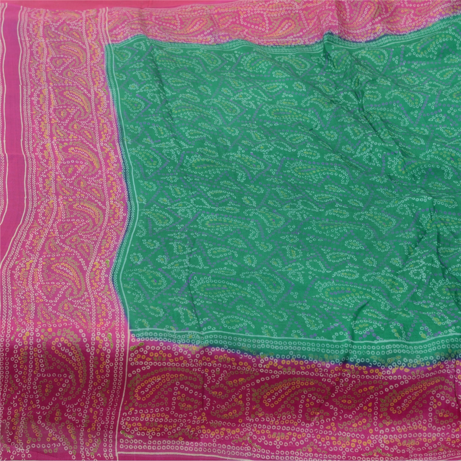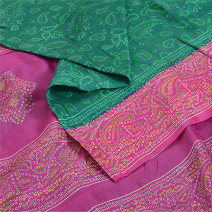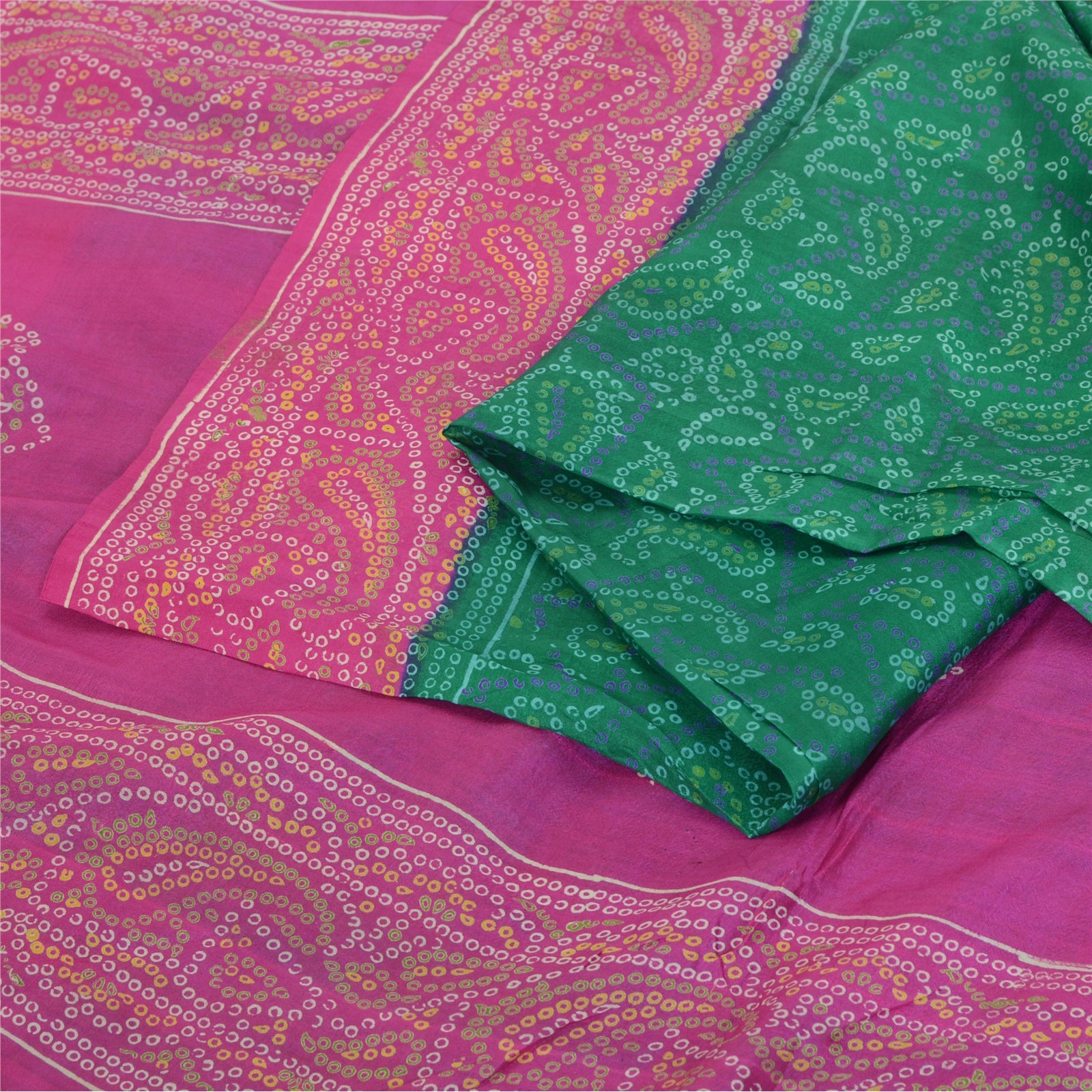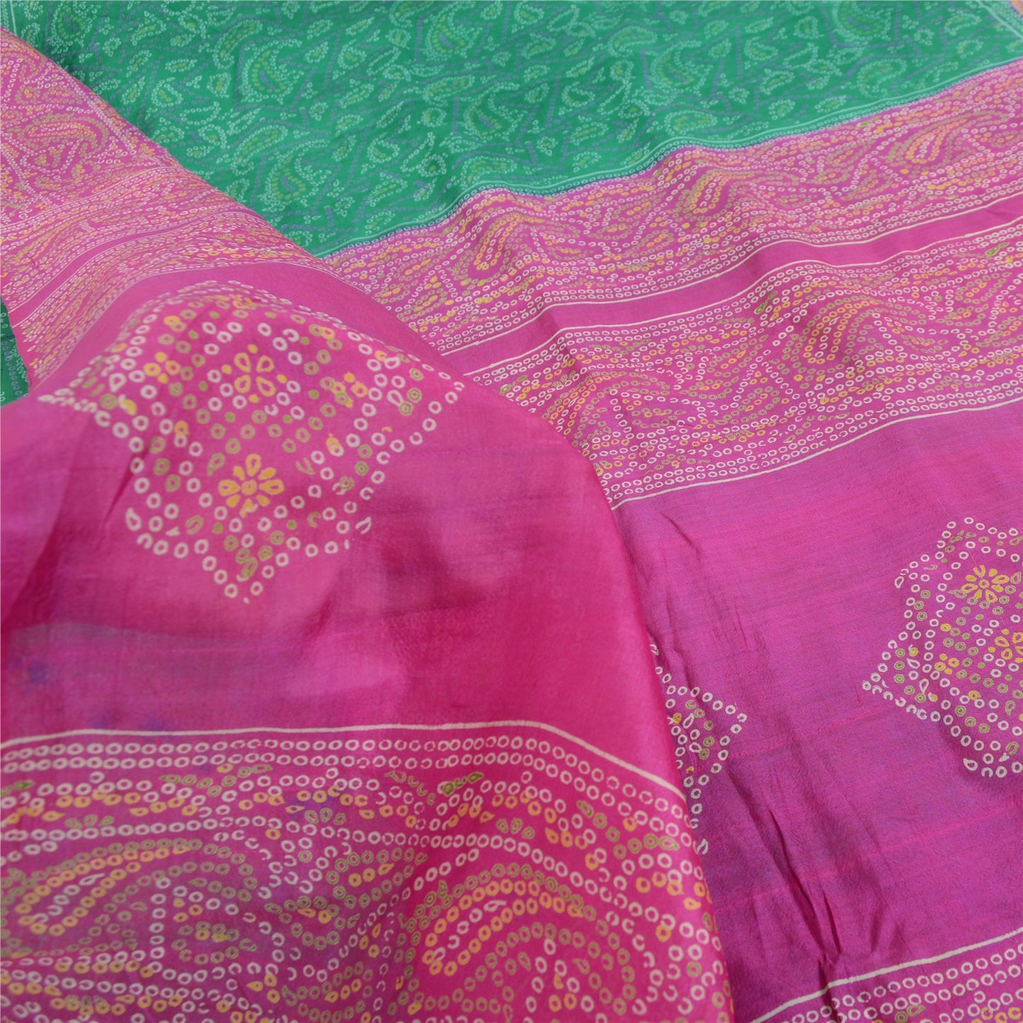 THE ITEM COLOR OR SHADE MAY BE DARKER OR LIGHTER THAN THE PICTURE.' • Beautiful green & pink colored bandhani printed pure silk saree . • Pallu & Border has printed floral design with geometric pattern. • Similar design in center part of sari . This unique vintage saree can be used for various crafting ideas even if you don't want to use it as a sari. Design a dress, use it as a as window dressing, upholstery, sarongs, throw, dress making and table linen much more. Let your creative juices flow and use this decorated Sustainable Fabric in multiple fashion. International buyers please note: Import duties, taxes, and charges are not included in the item price or postage cost. These charges are the buyer's responsibility. Please check with your country's customs office to determine what these additional costs will be prior to bidding or buying.Buyer will pay custom duty/tax. It is calculated and charged differently by every country. As a seller I do not have any control over it. VAT or sales tax is calculated by the platform at the time of checkout. Customs charge is payable at the time of delivery.