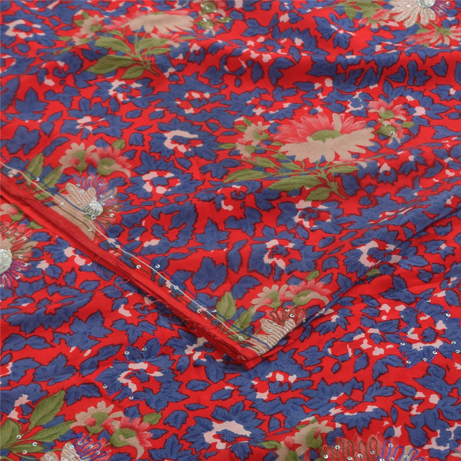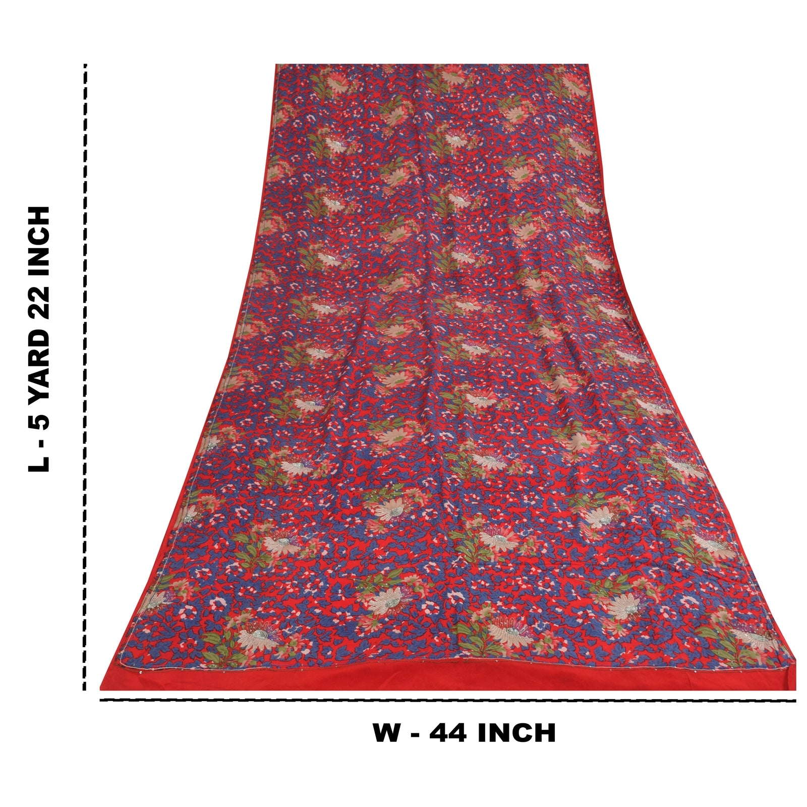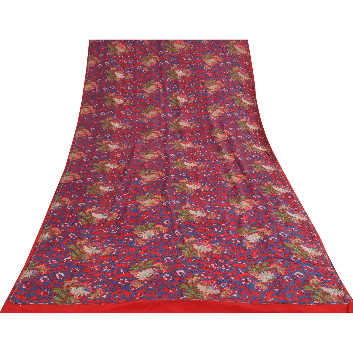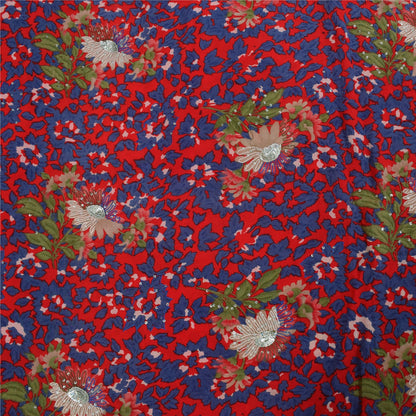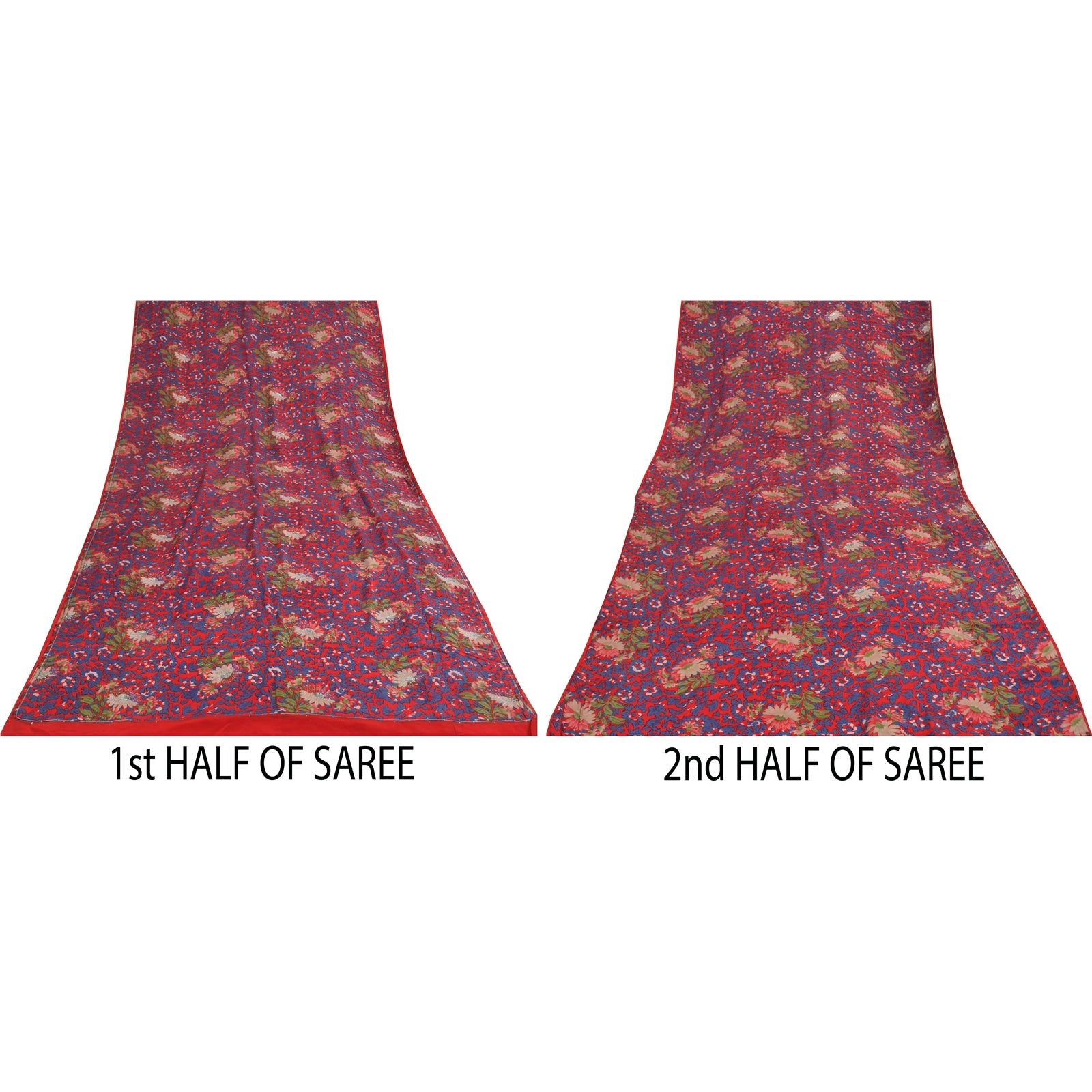 Sanskriti Vintage Sarees Red 100% Pure Crepe Silk Printed Sari 5+yd Craft Sustainable Fabric