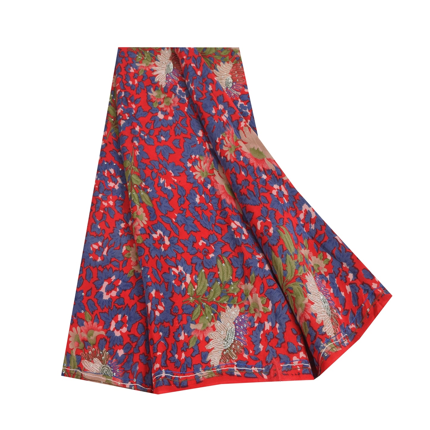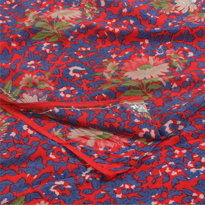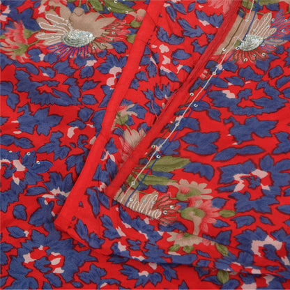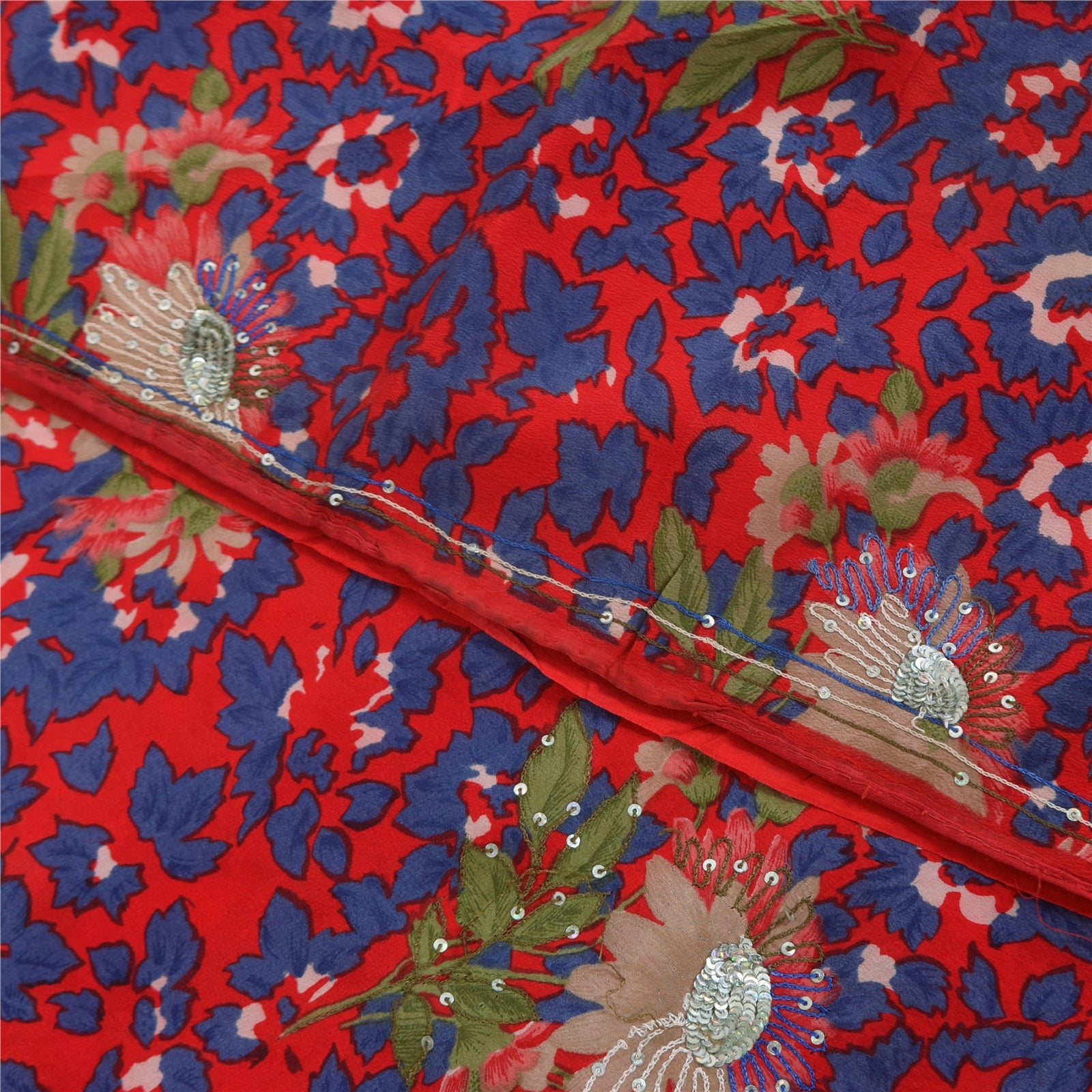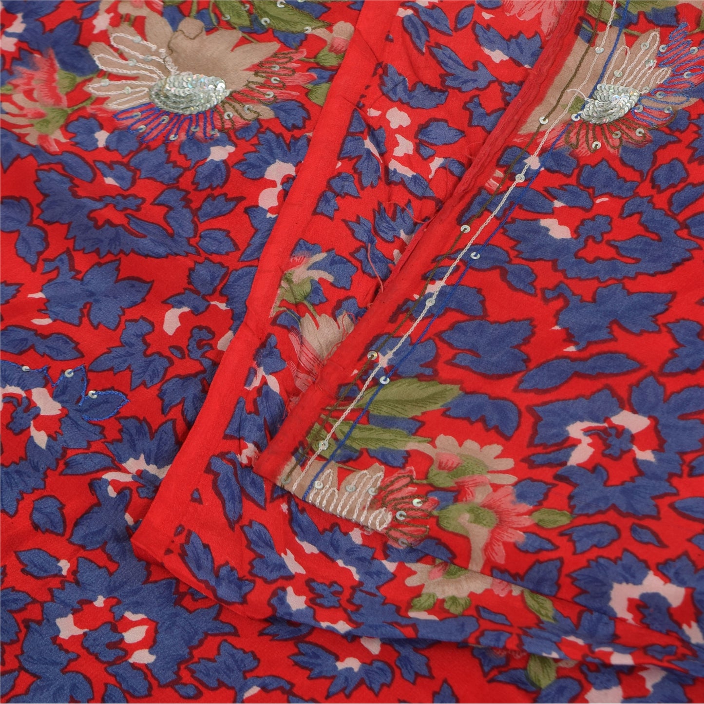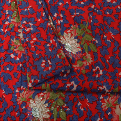 Sanskriti Vintage Sarees Red 100% Pure Crepe Silk Printed Sari 5+yd Craft Sustainable Fabric