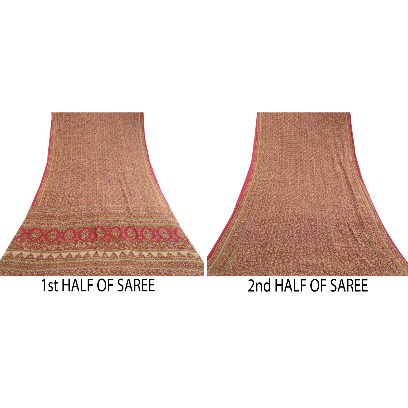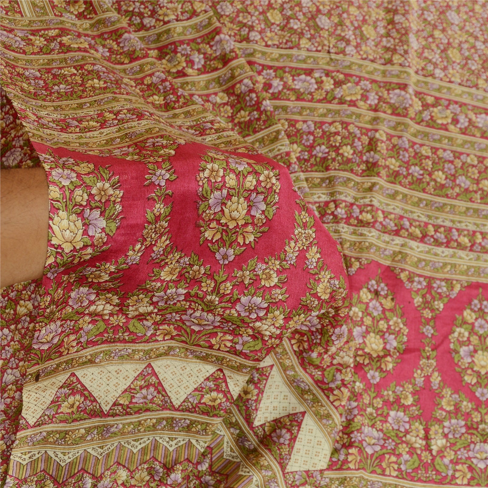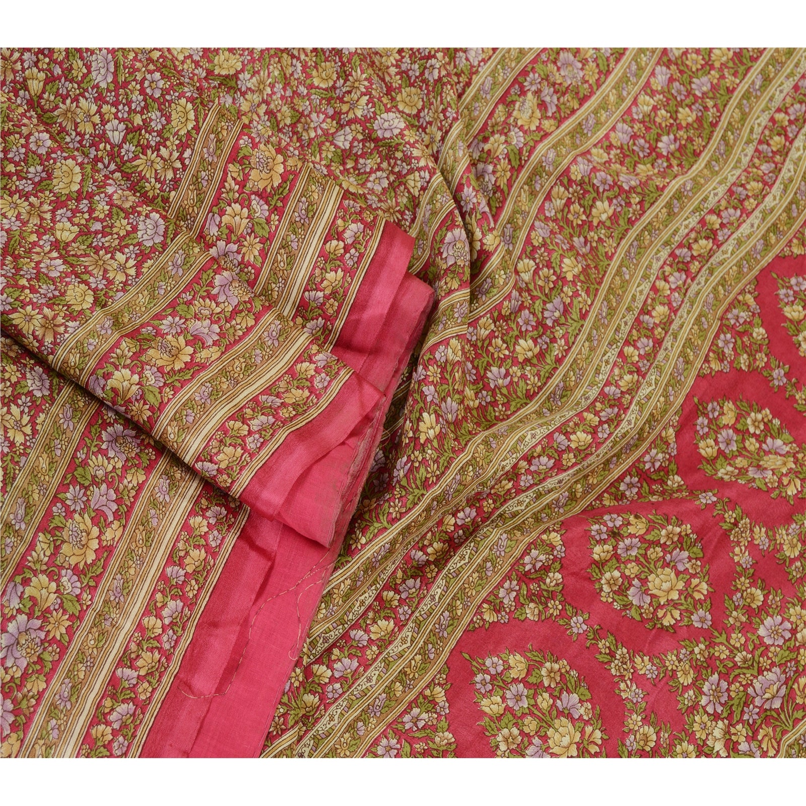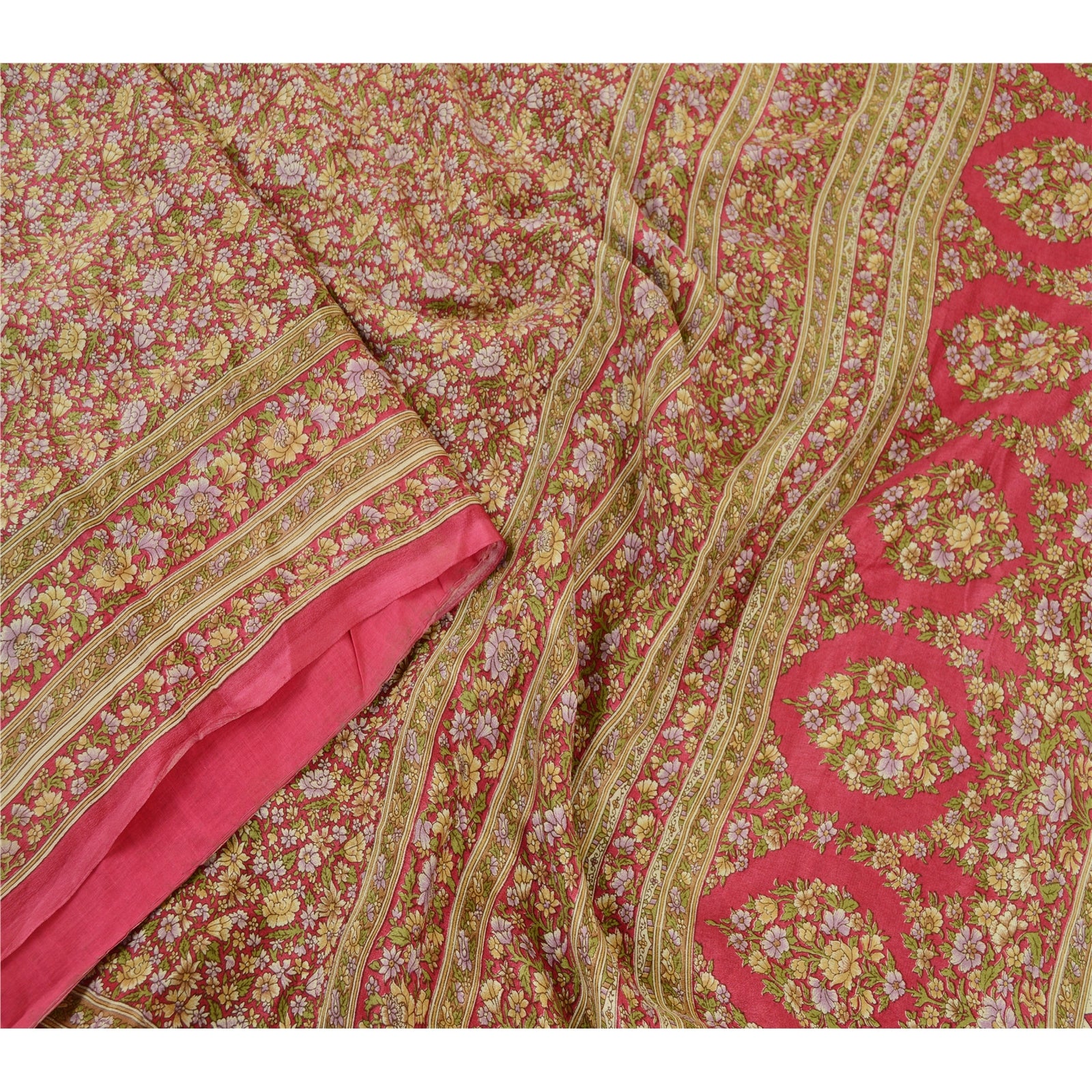 Sanskriti Vintage Sarees Red 100% Pure Silk Printed Sari Floral 5yd Craft Sustainable Fabric