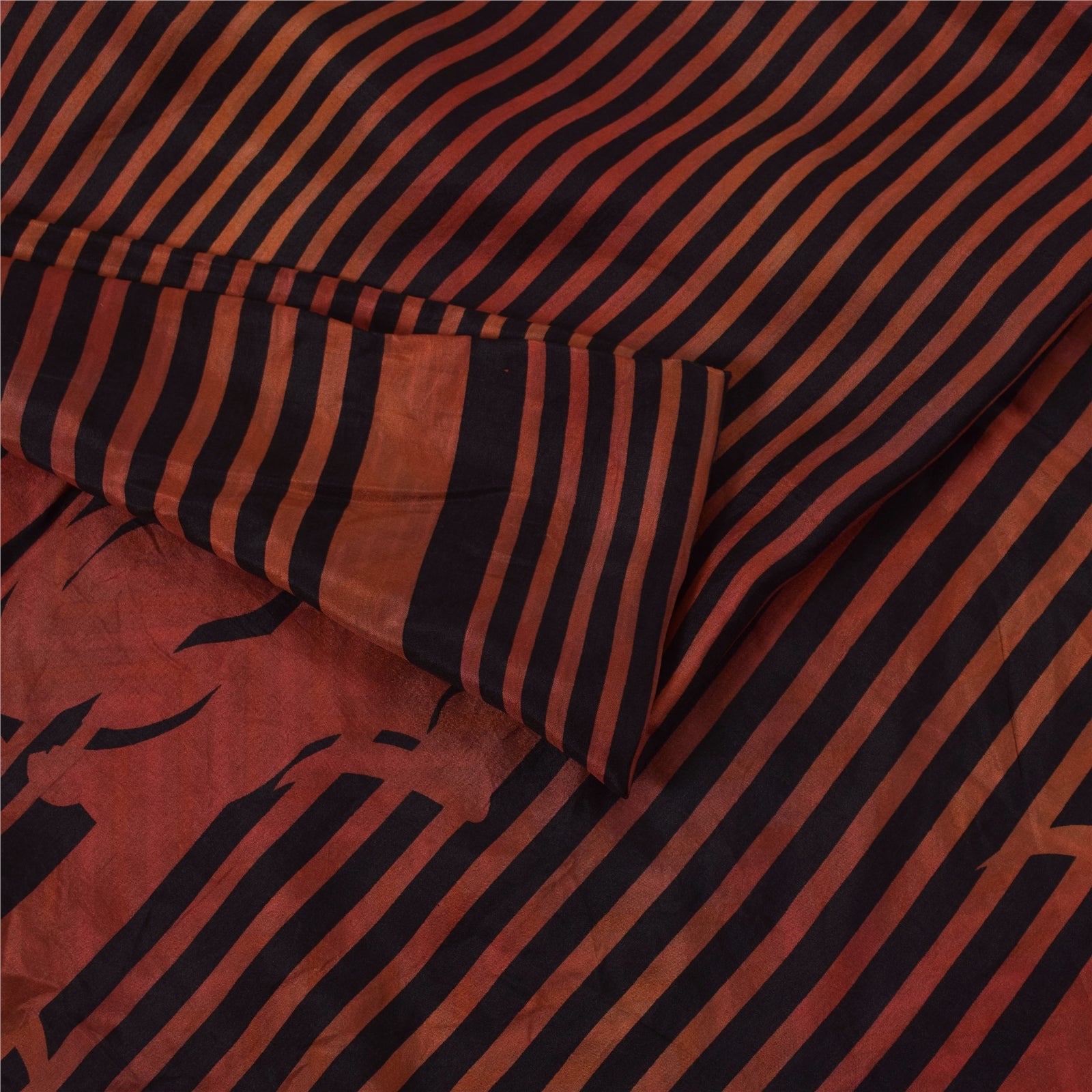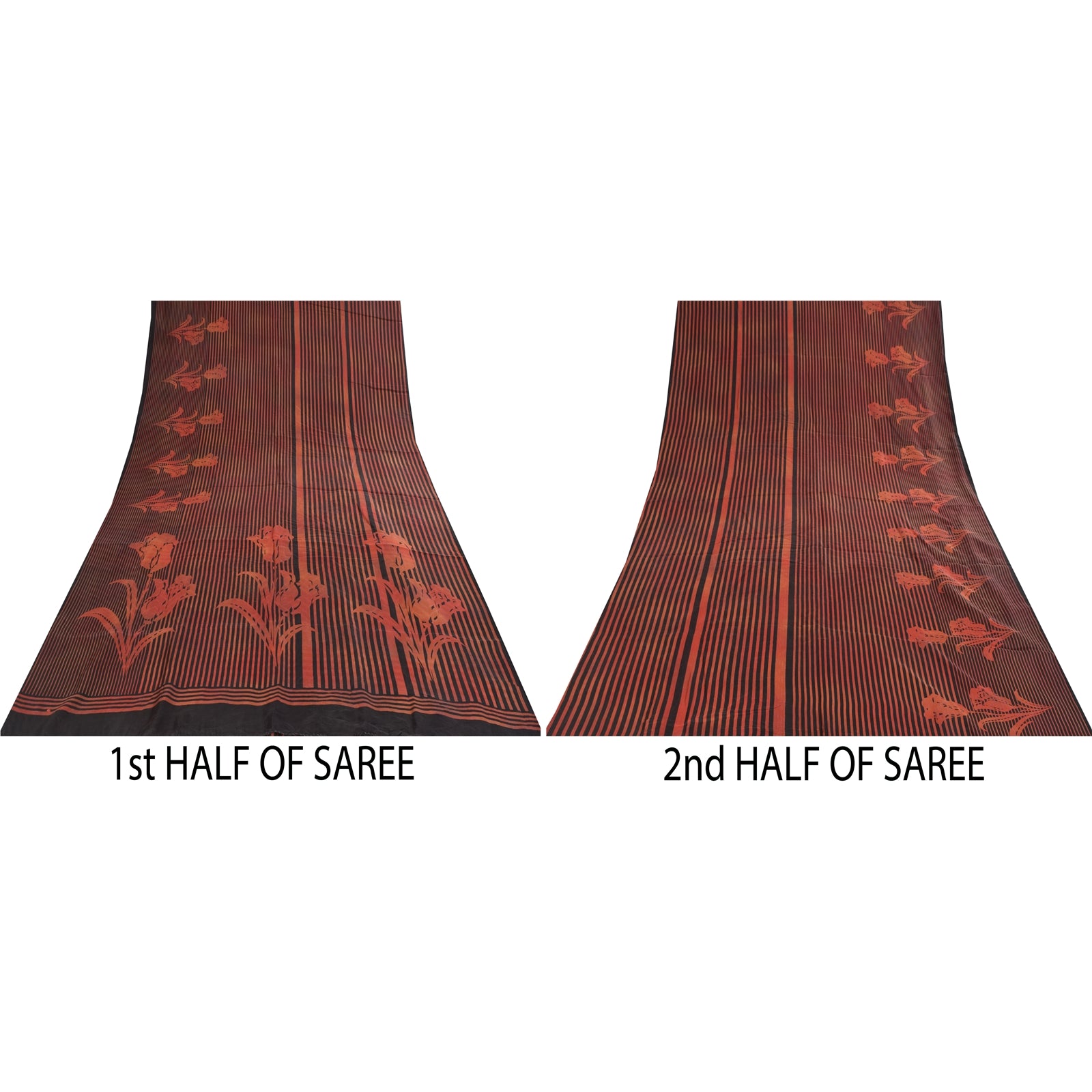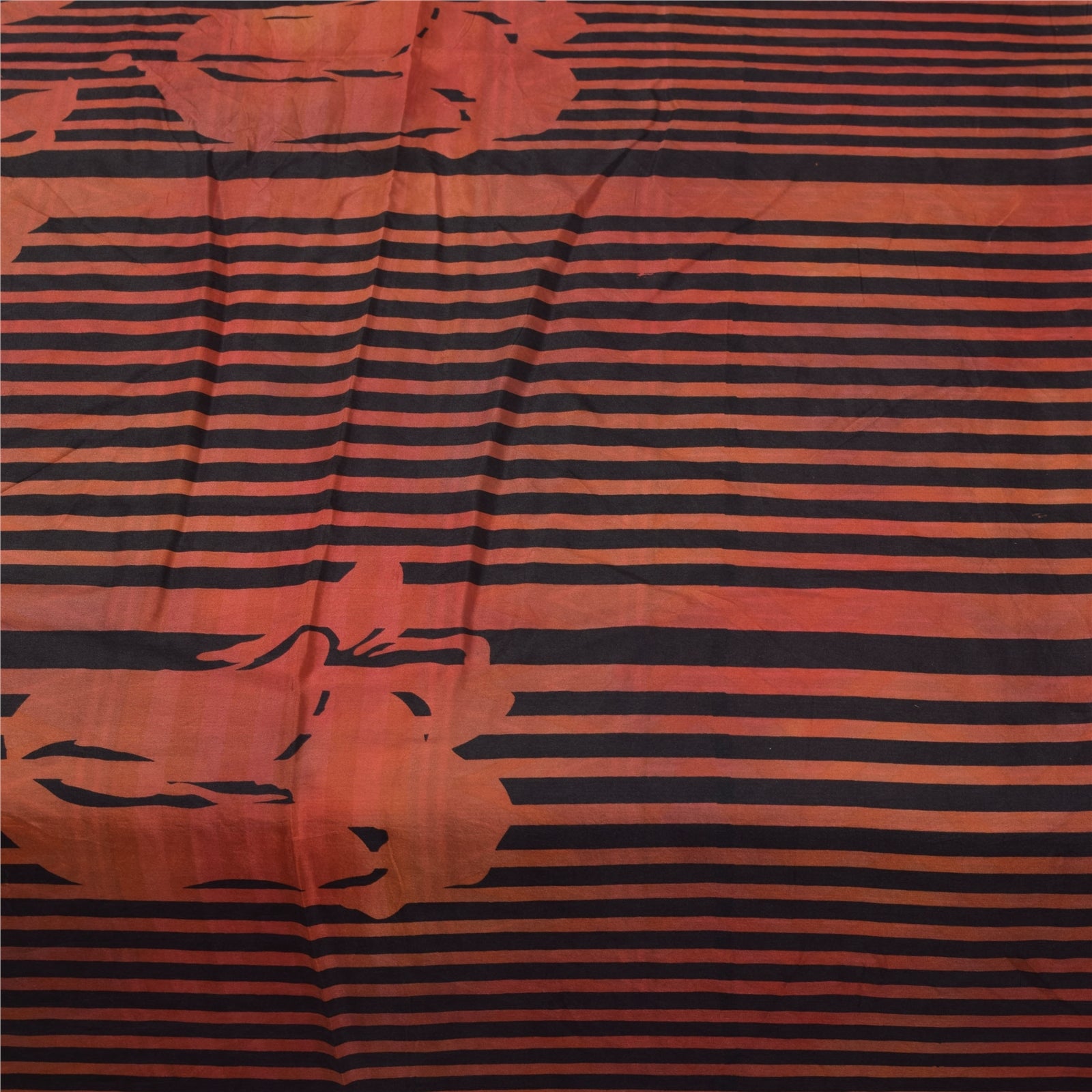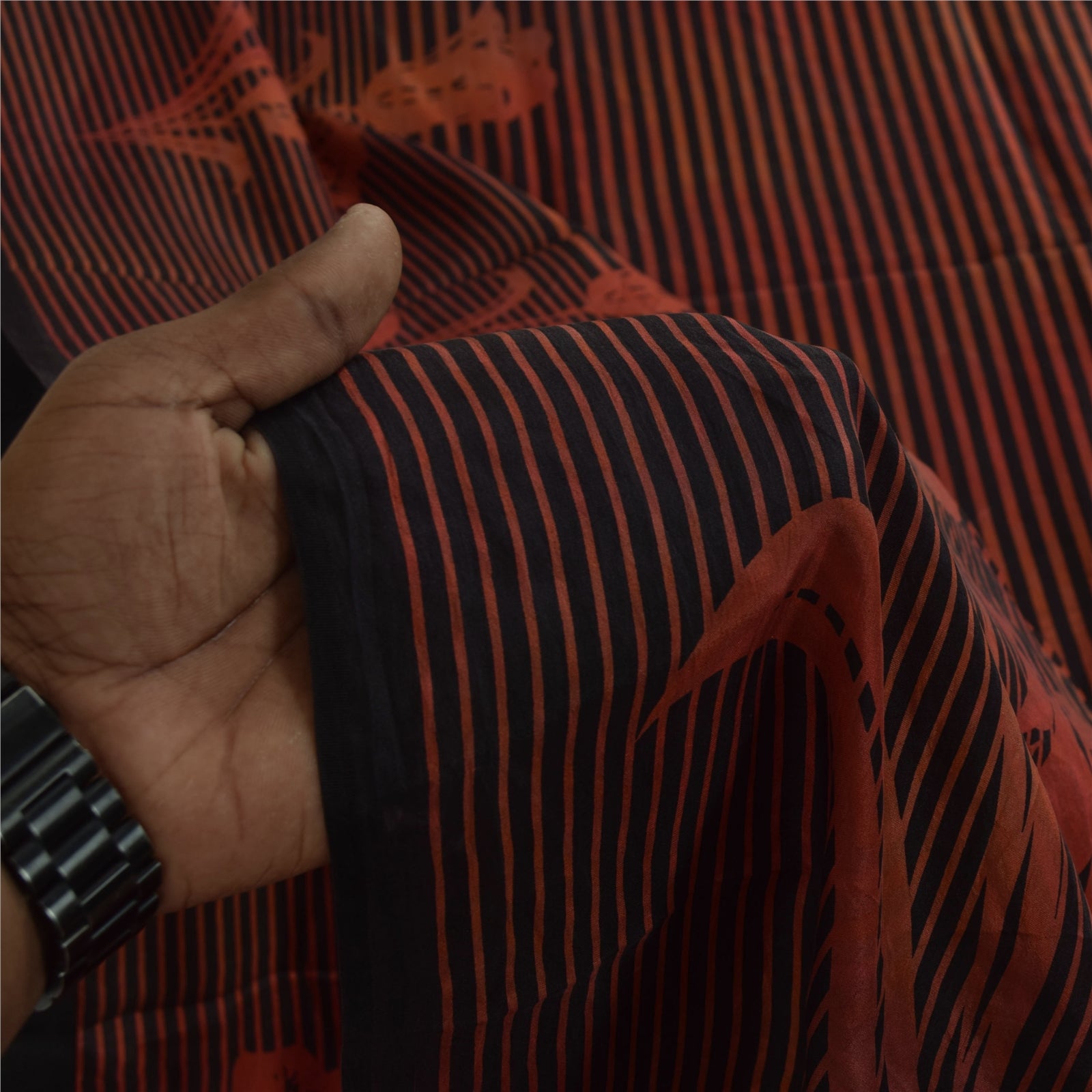 Sanskriti Vintage Sarees Red & Black Pure Silk Printed Sari 5+yd Craft Fabric
