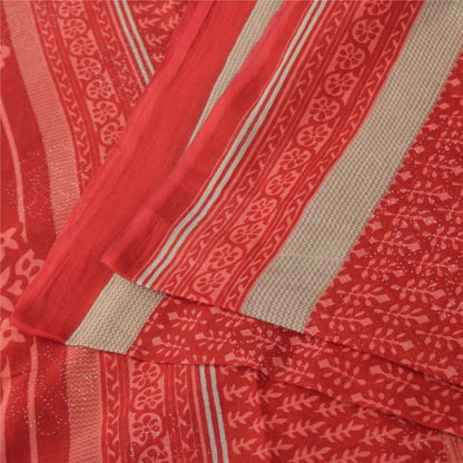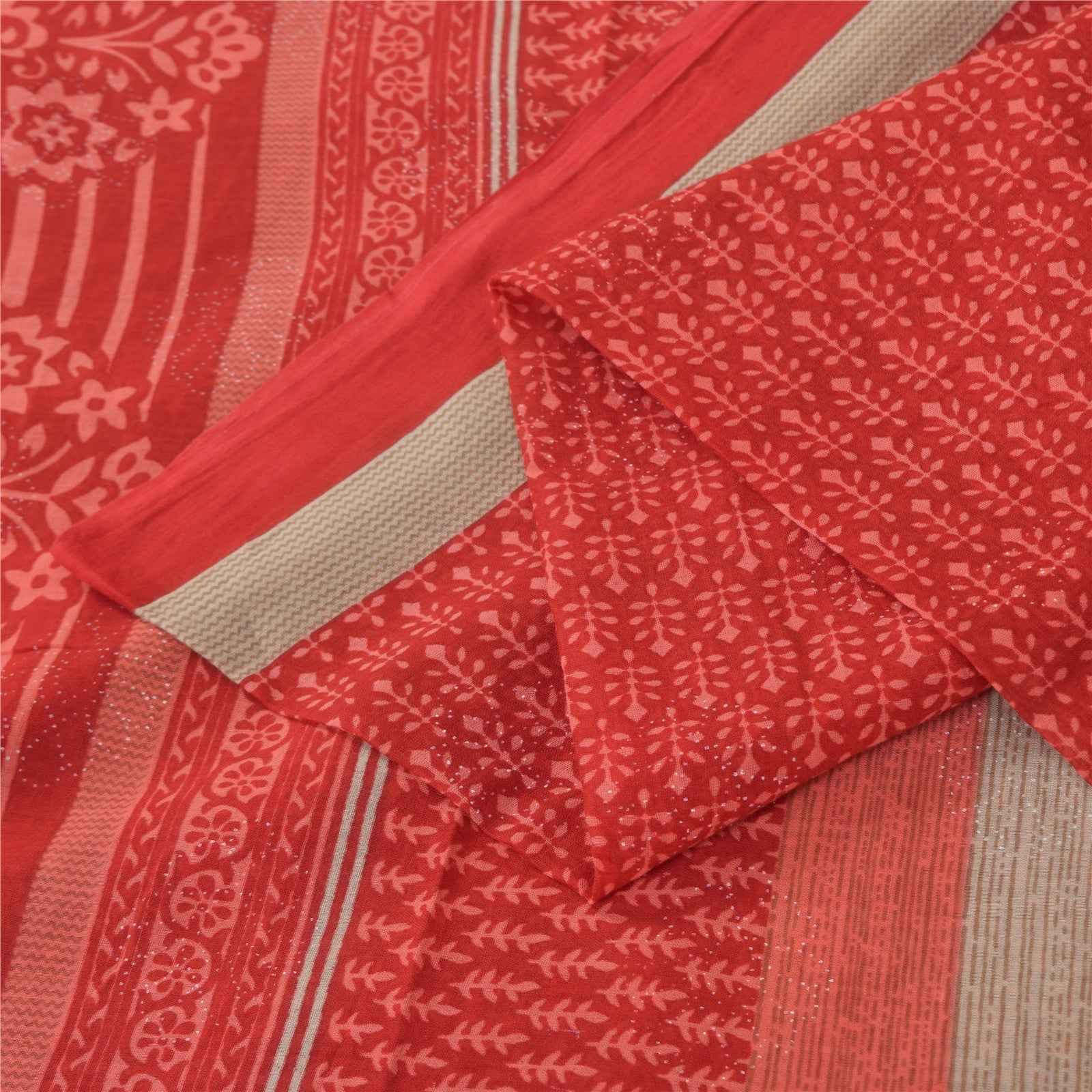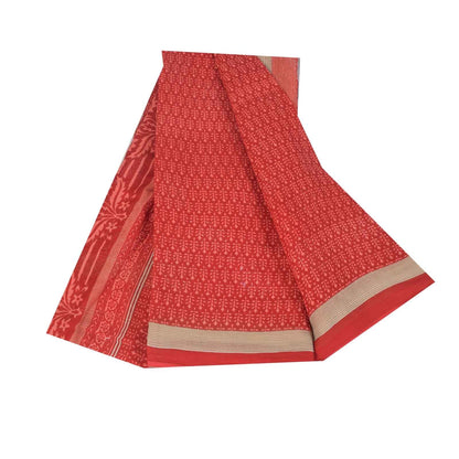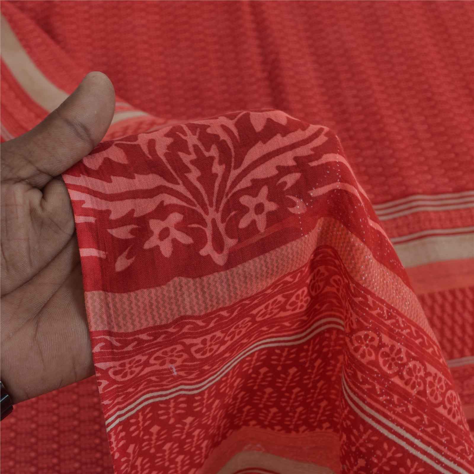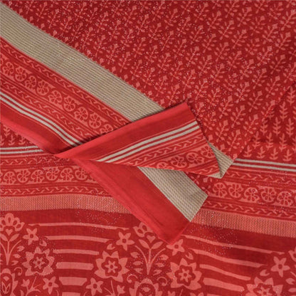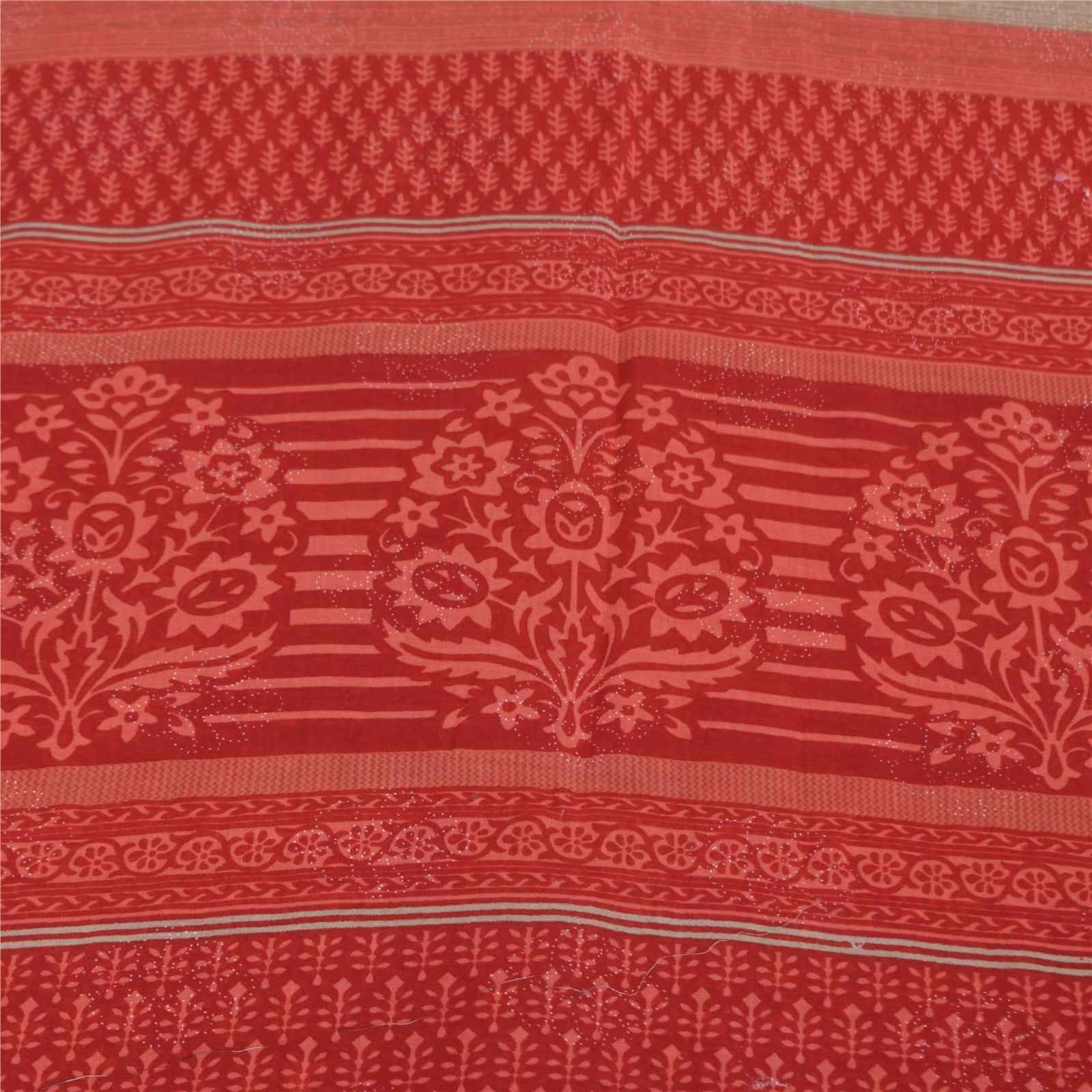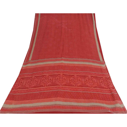 Sanskriti Vintage Sarees Red Block Printed Pure Cotton Sari 5+yd Craft Fabric