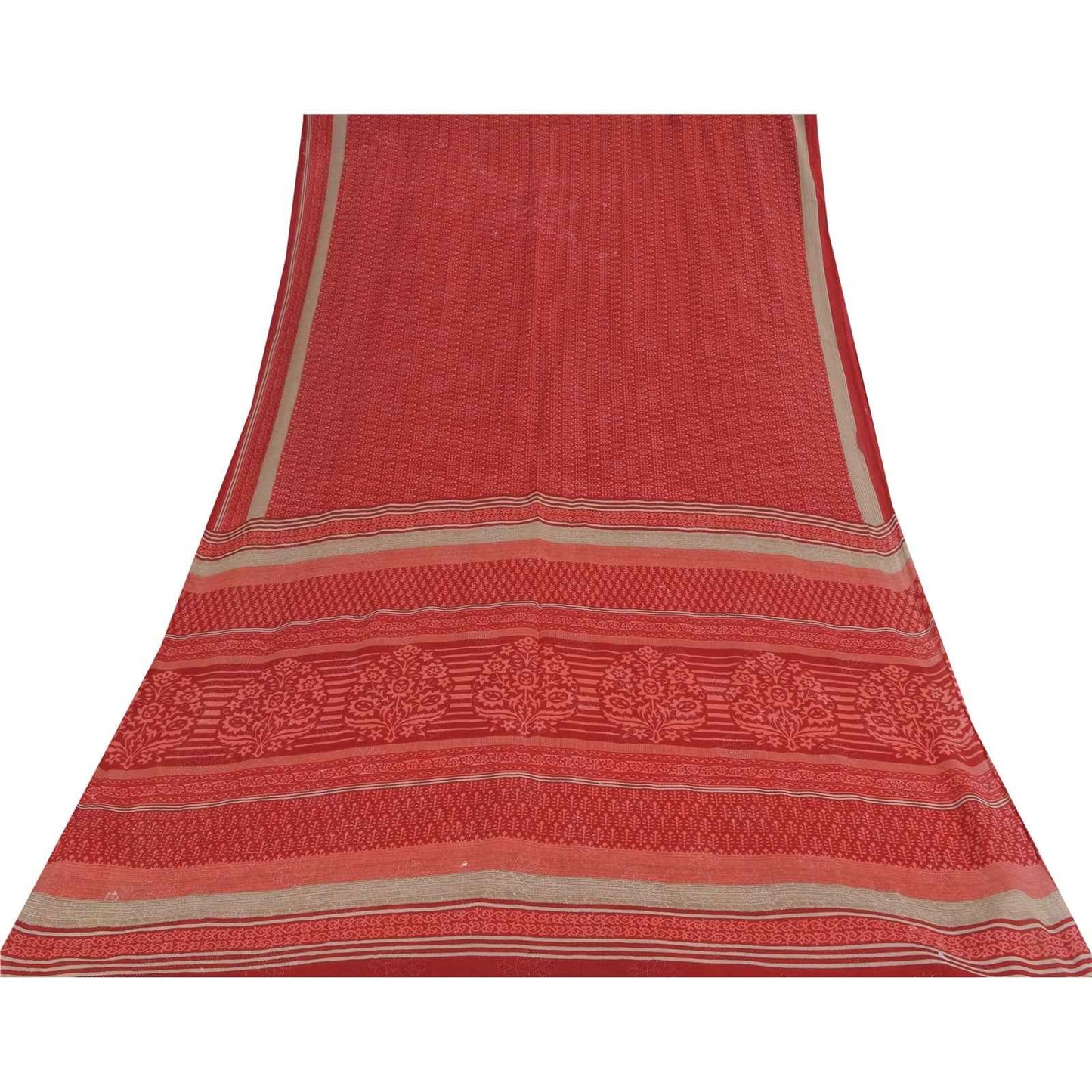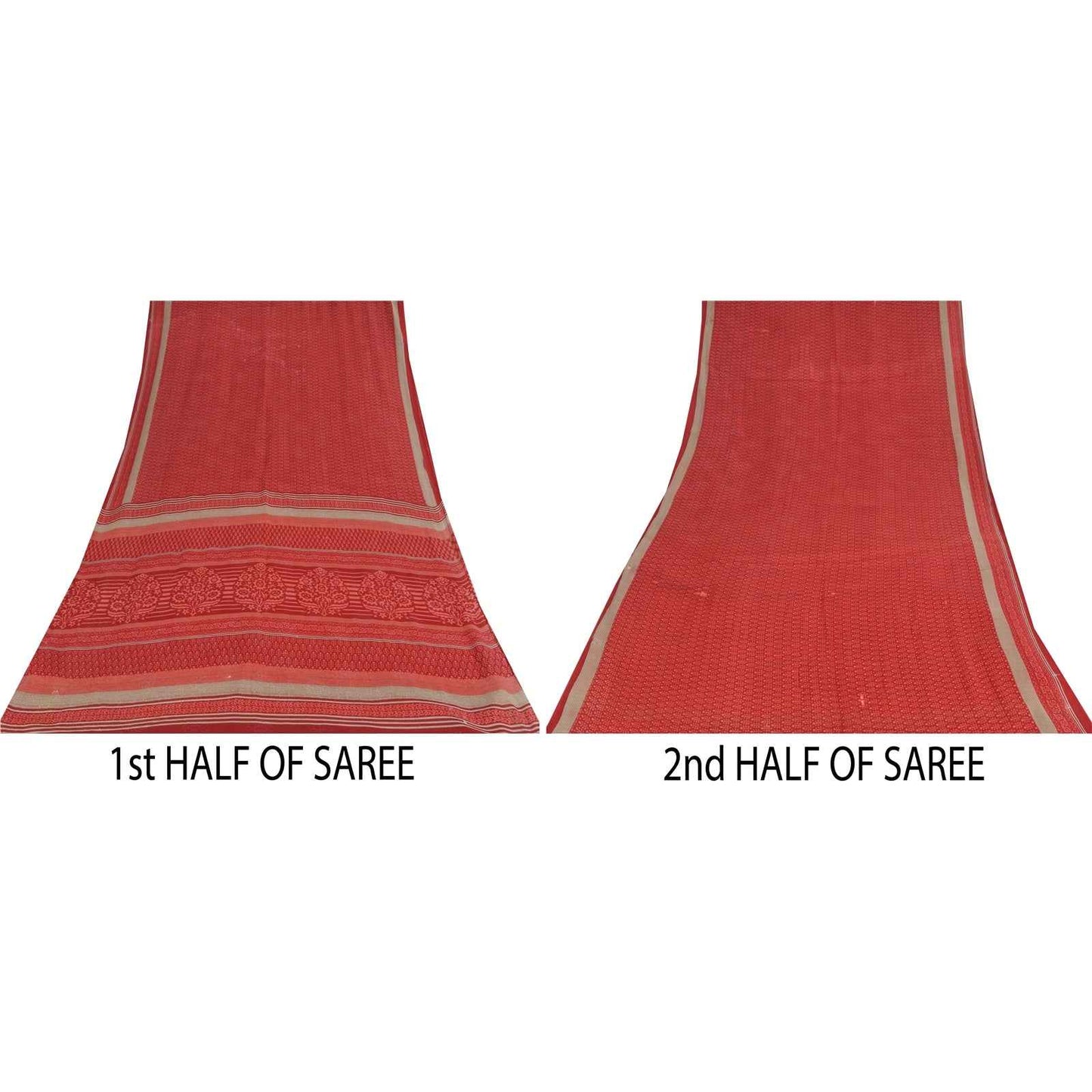 THE ITEM COLOR OR SHADE MAY BE DARKER OR LIGHTER THAN THE PICTURE. Attractive red colored pure cotton block printed sari. Pallu & Border has printed floral design. Similar design in center part of saree.. This unique vintage saree can be used for various crafting ideas even if you don't want to use it as a sari. Design a dress, use it as a as window dressing, upholstery, sarongs, throw, dress making and table linen much more. Let your creative juices flow and use this decorated fabric in multiple fashion. Shipping Note: 'International buyers please note: Import duties, taxes, and charges are not included in the item price or postage cost. These charges are the buyer's responsibility. Please check with your country's customs office to determine what these additional costs will be prior to bidding or buying. Buyer will pay custom duty/tax. It is calculated and charged differently by every country. As a seller I do not have any control over it. VAT or sales tax is calculated by the platform at the time of checkout. Customs charge is payable at the time of delivery.' PCS-6760