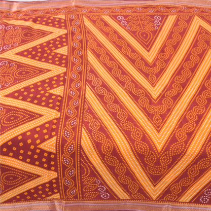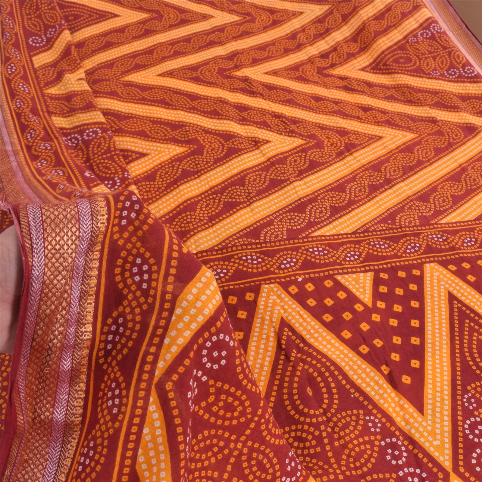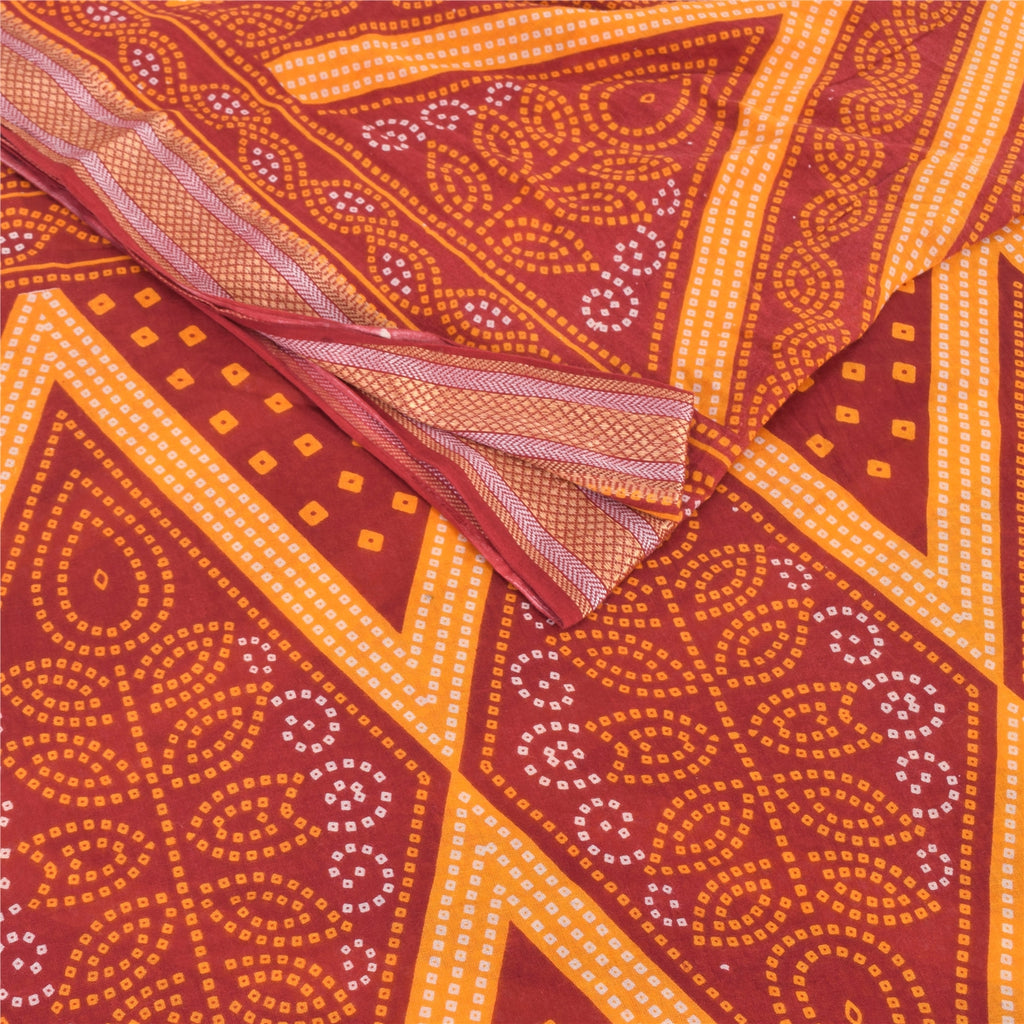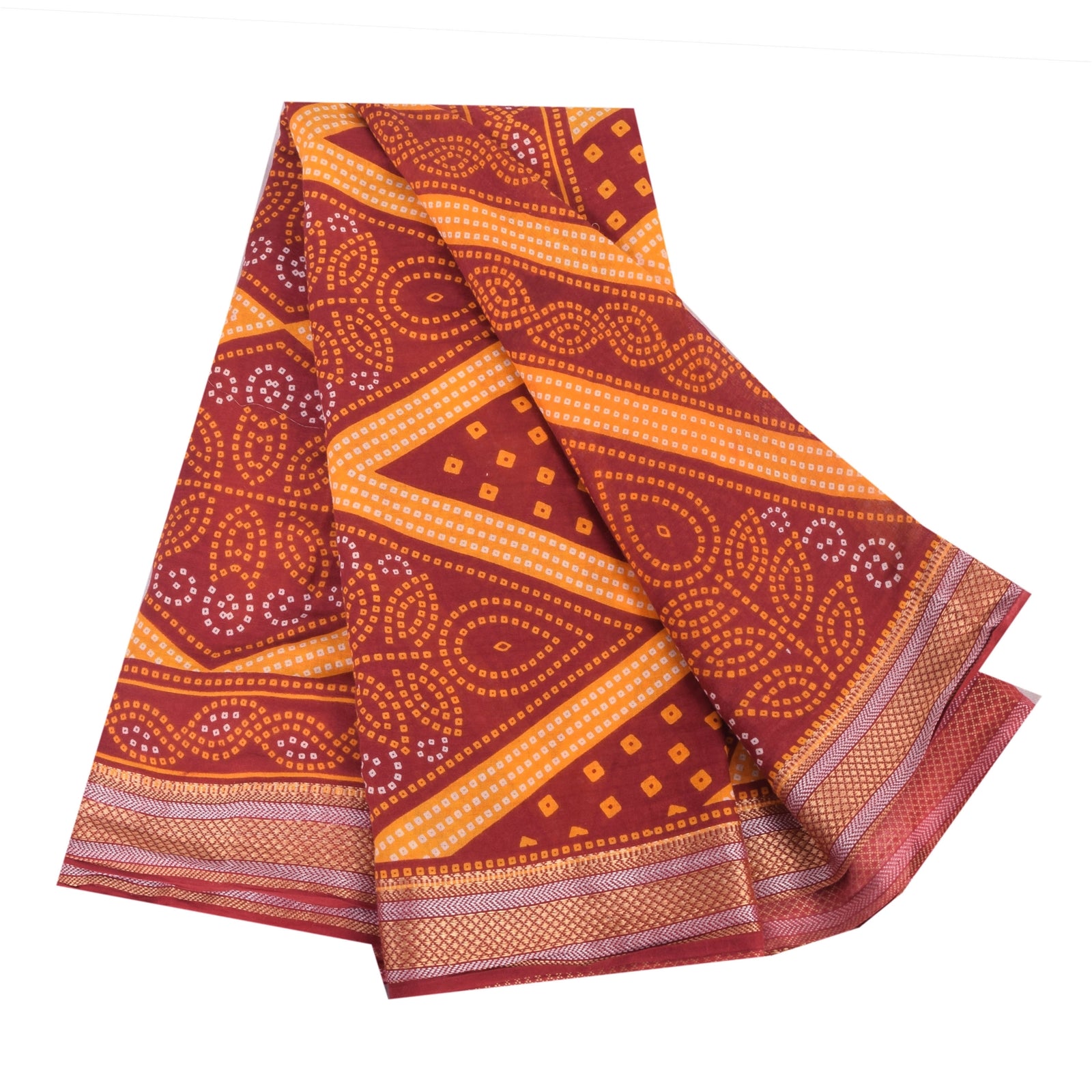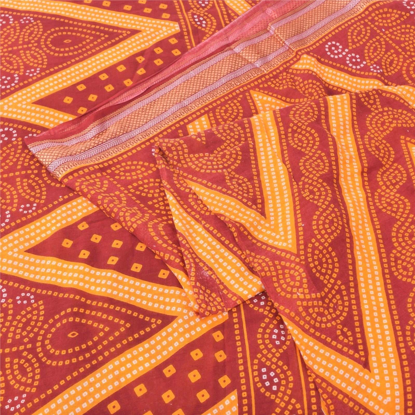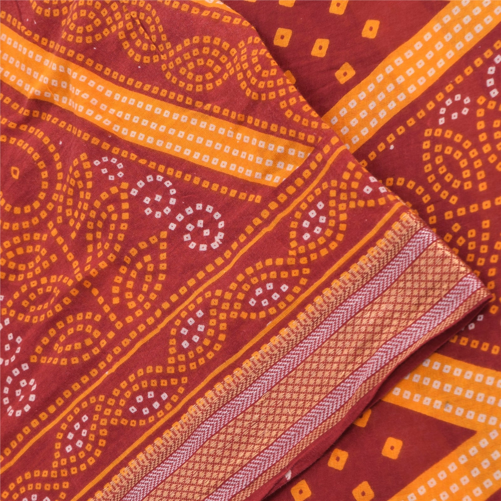 Sanskriti Vintage Sarees Red/Yellow Bandhani Printed Pure Cotton Sari 5yd Sustainable Fabric