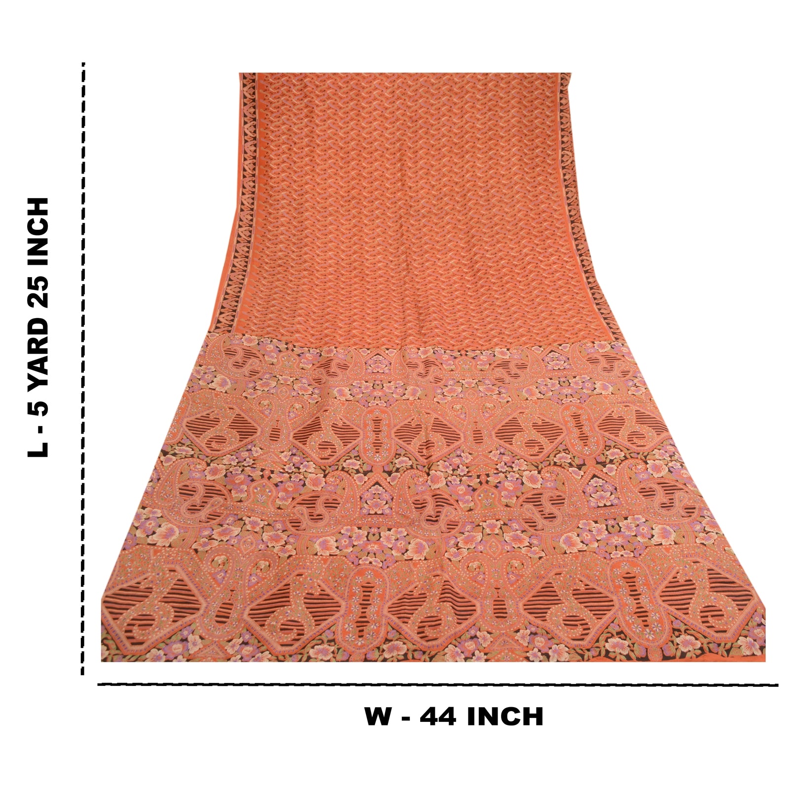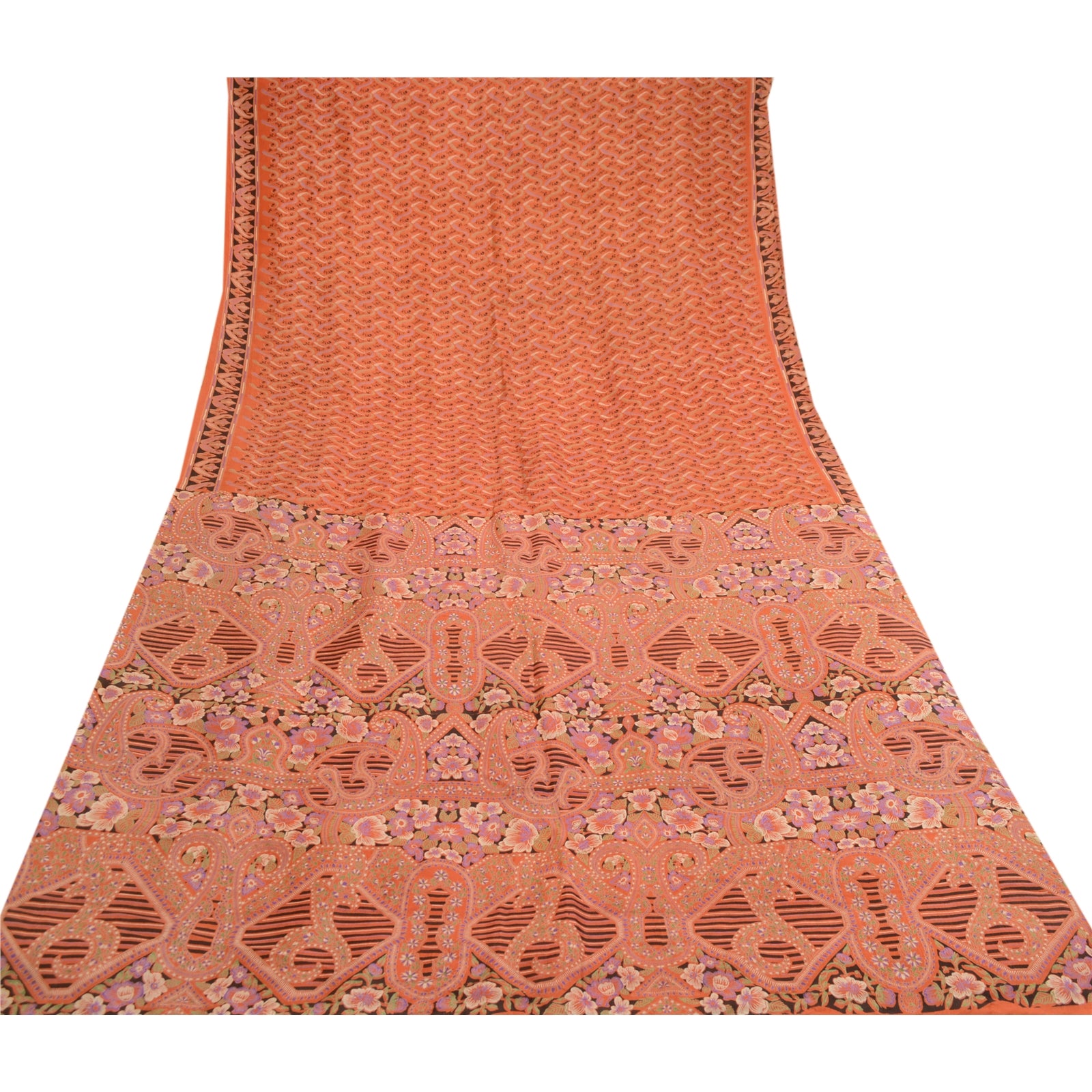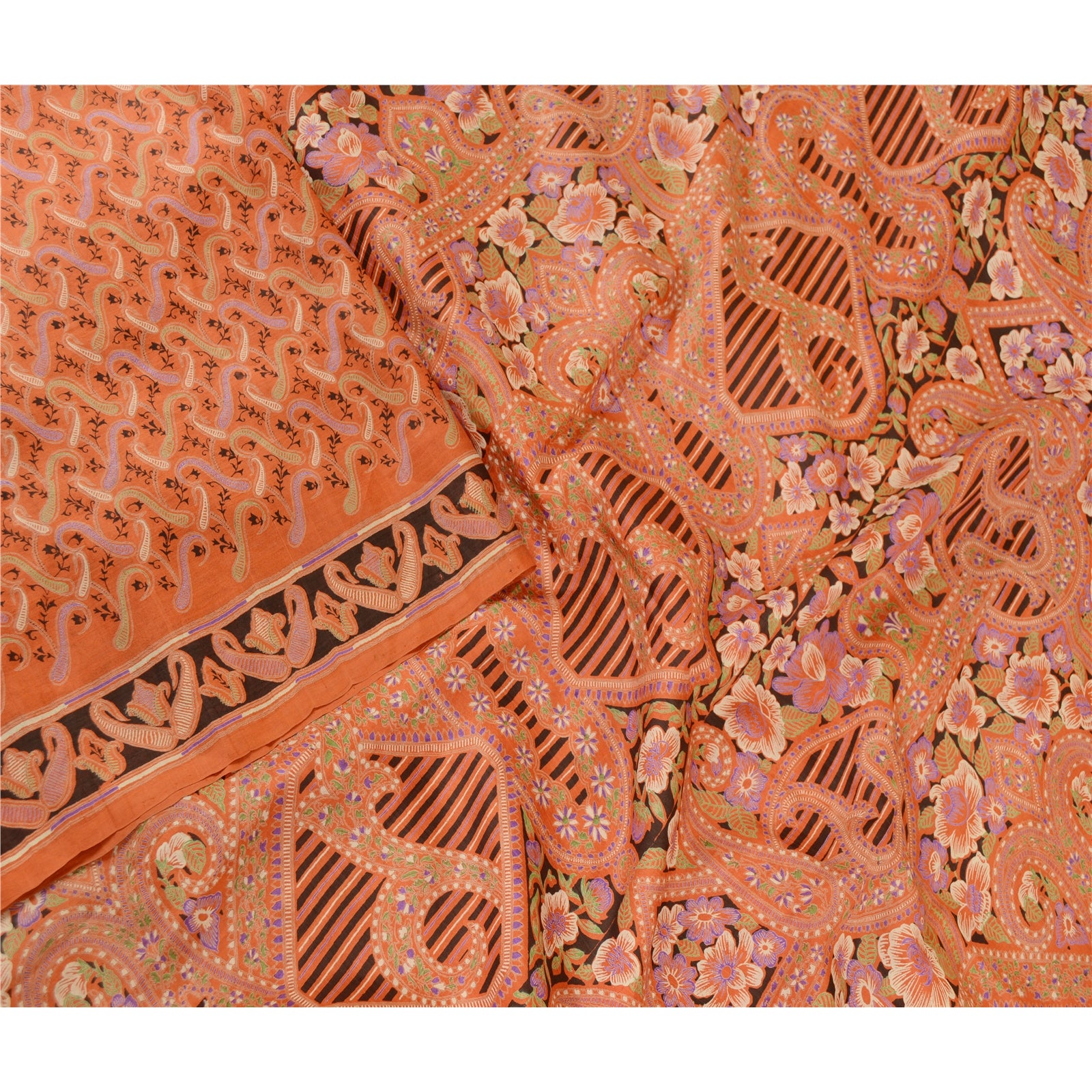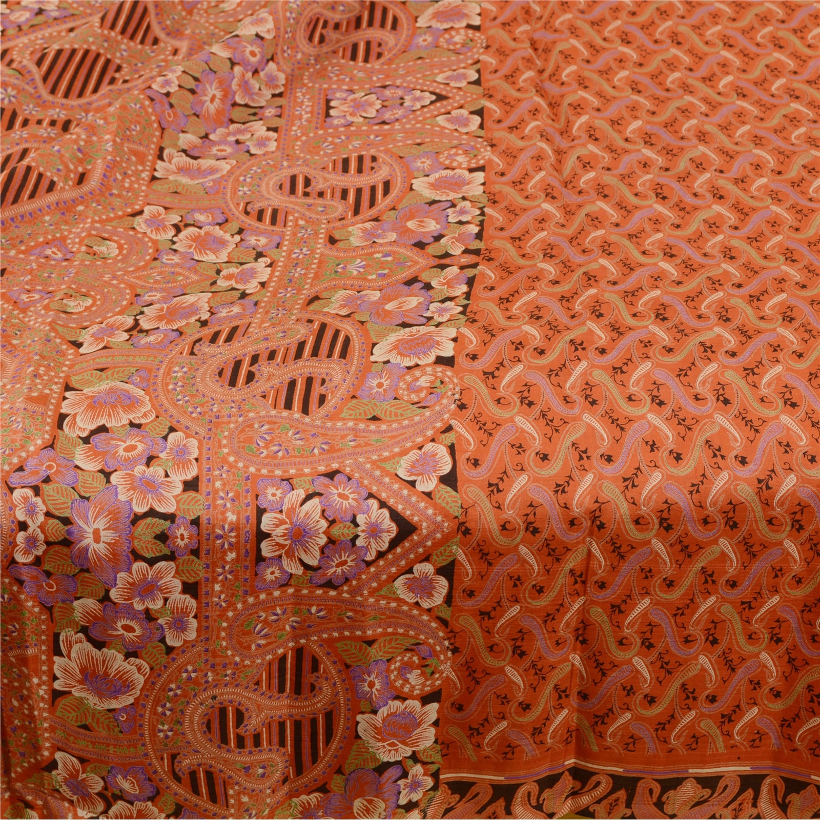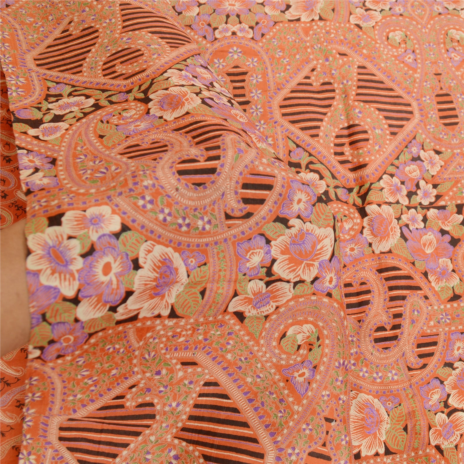 Sanskriti Vintage Sarees Rusty Orange Pure Silk Printed Sari 5yd Craft Sustainable Fabric