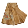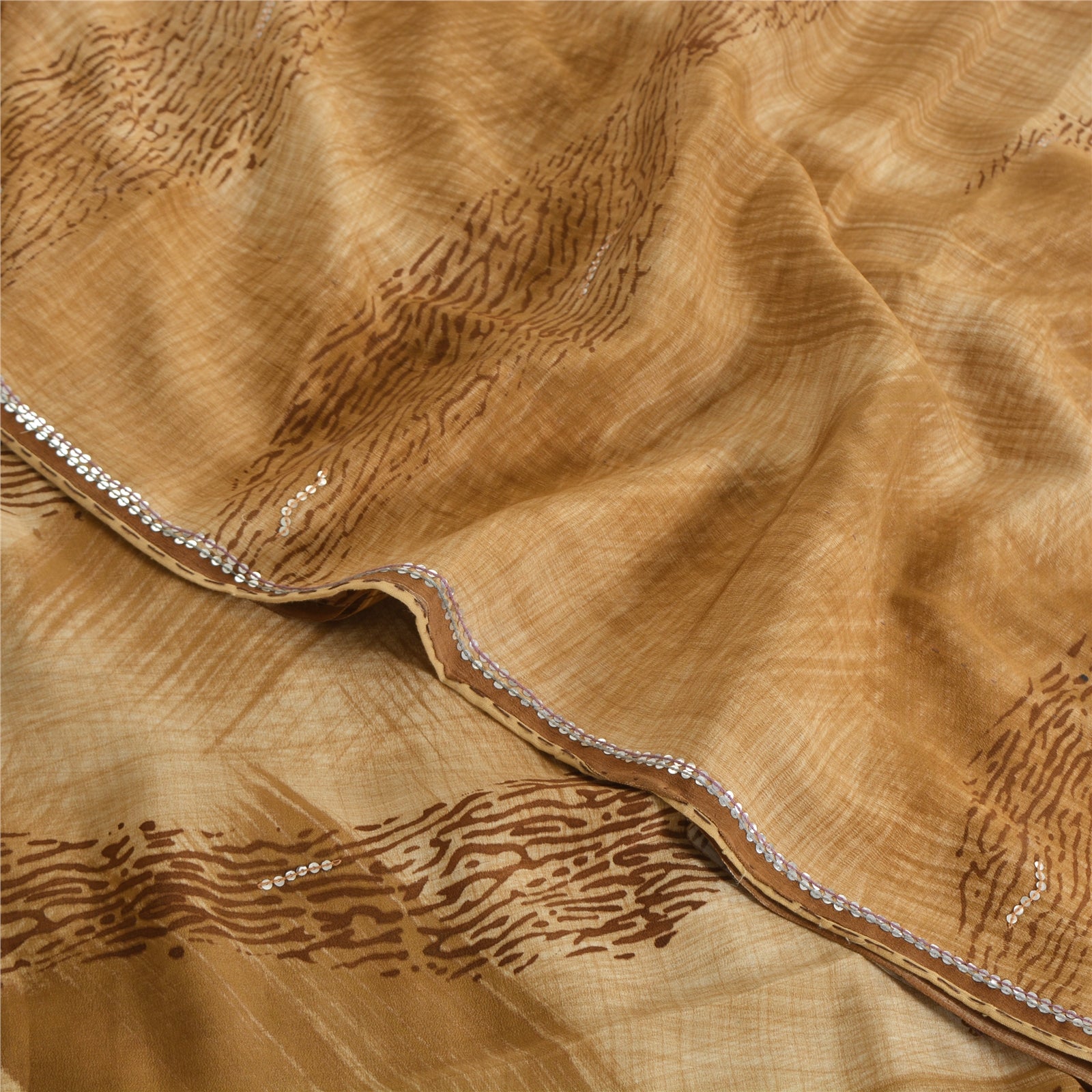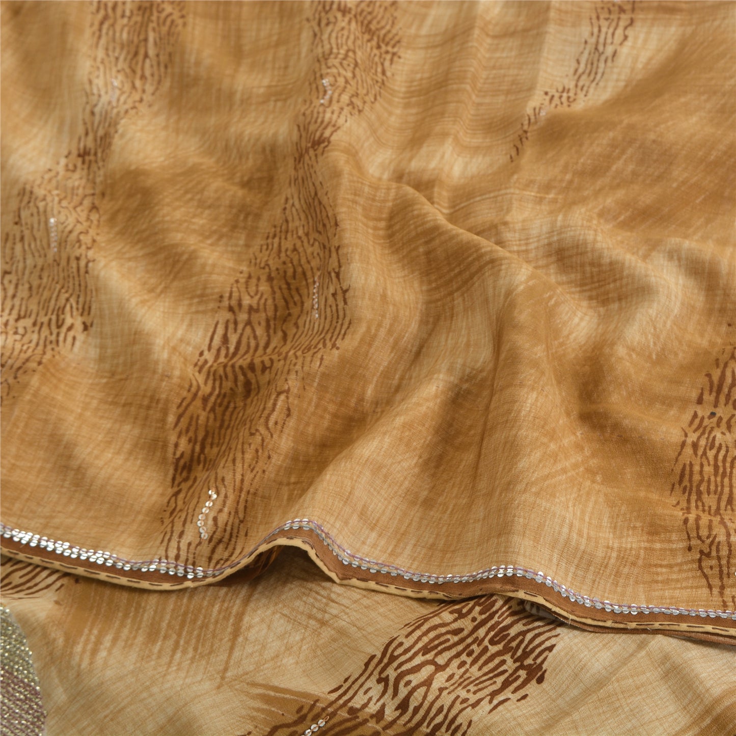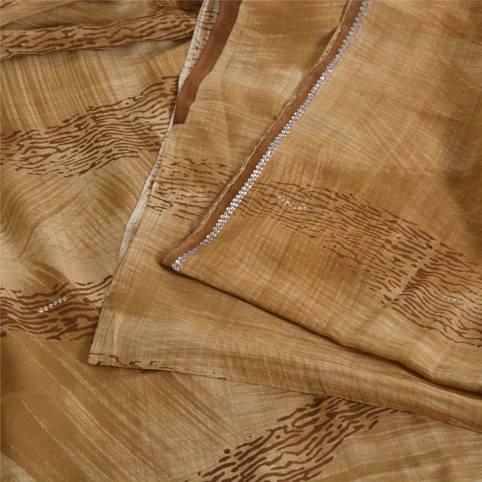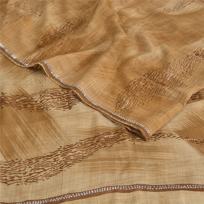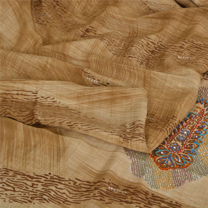 Sanskriti Vintage Sarees Unique Brown Pure Crepe Hand Beaded Printed Sari Sustainable Fabric