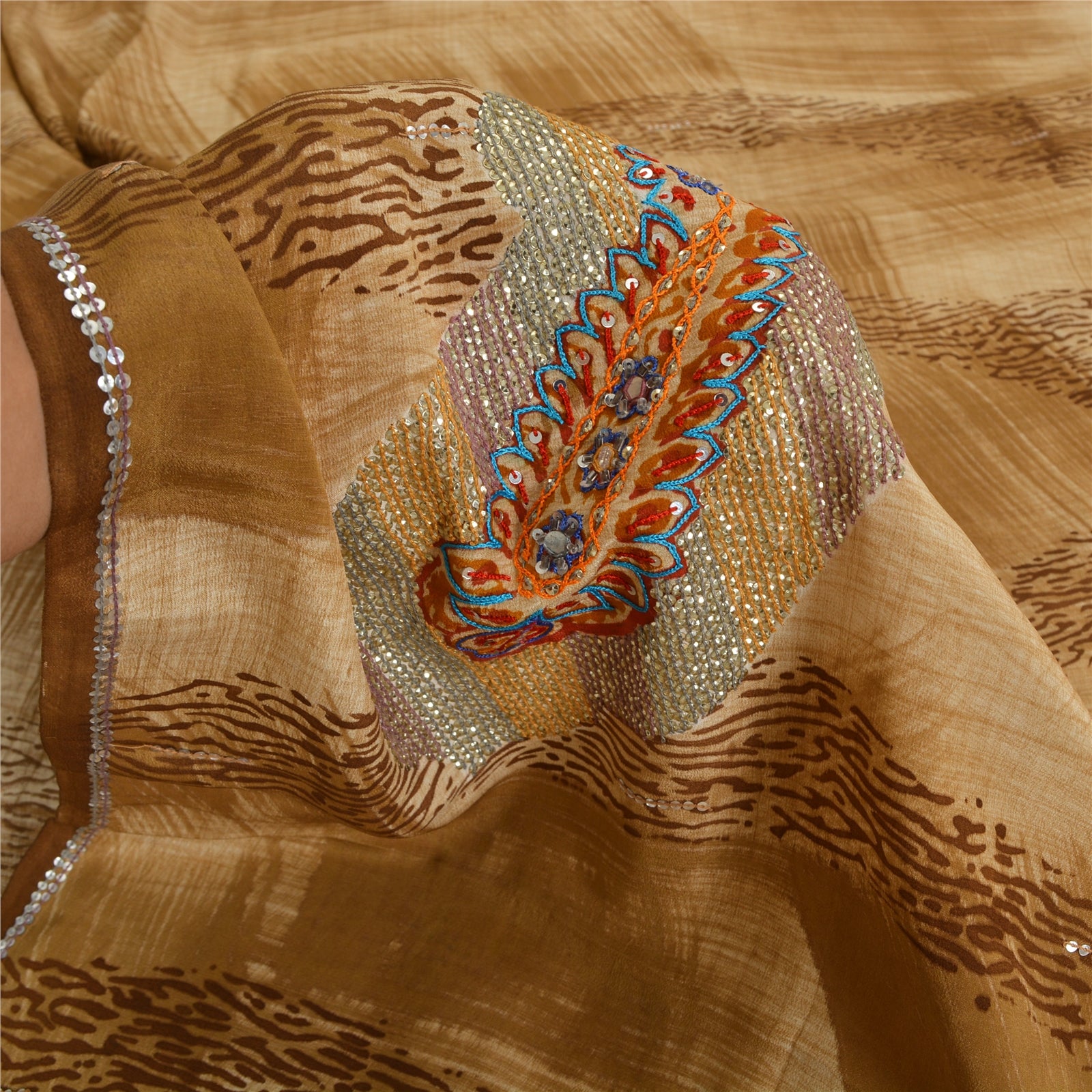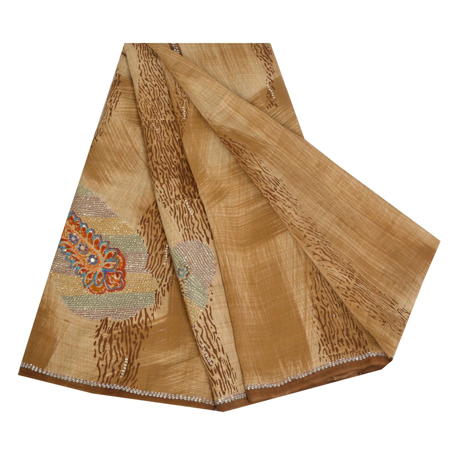 THE ITEM COLOR OR SHADE MAY BE DARKER OR LIGHTER THAN THE PICTURE.' • Beautiful shades of brown colored printed & hand embroidered pure crepe silk saree . • Pallu & Border has printed floral design with thread & sequins work. • Similar work & abstract print in center part of sari . This unique vintage saree can be used for various crafting ideas even if you don't want to use it as a sari. Design a dress, use it as a as window dressing, upholstery, sarongs, throw, dress making and table linen much more. Let your creative juices flow and use this decorated Sustainable Fabric in multiple fashion. International buyers please note: Import duties, taxes, and charges are not included in the item price or postage cost. These charges are the buyer's responsibility. Please check with your country's customs office to determine what these additional costs will be prior to bidding or buying.Buyer will pay custom duty/tax. It is calculated and charged differently by every country. As a seller I do not have any control over it. VAT or sales tax is calculated by the platform at the time of checkout. Customs charge is payable at the time of delivery.