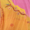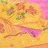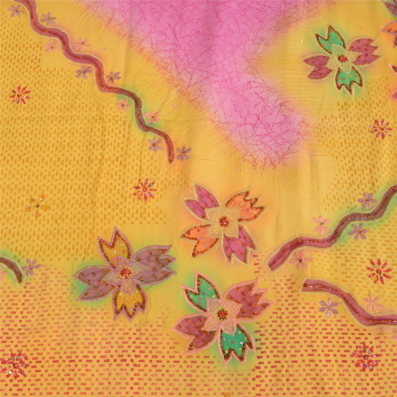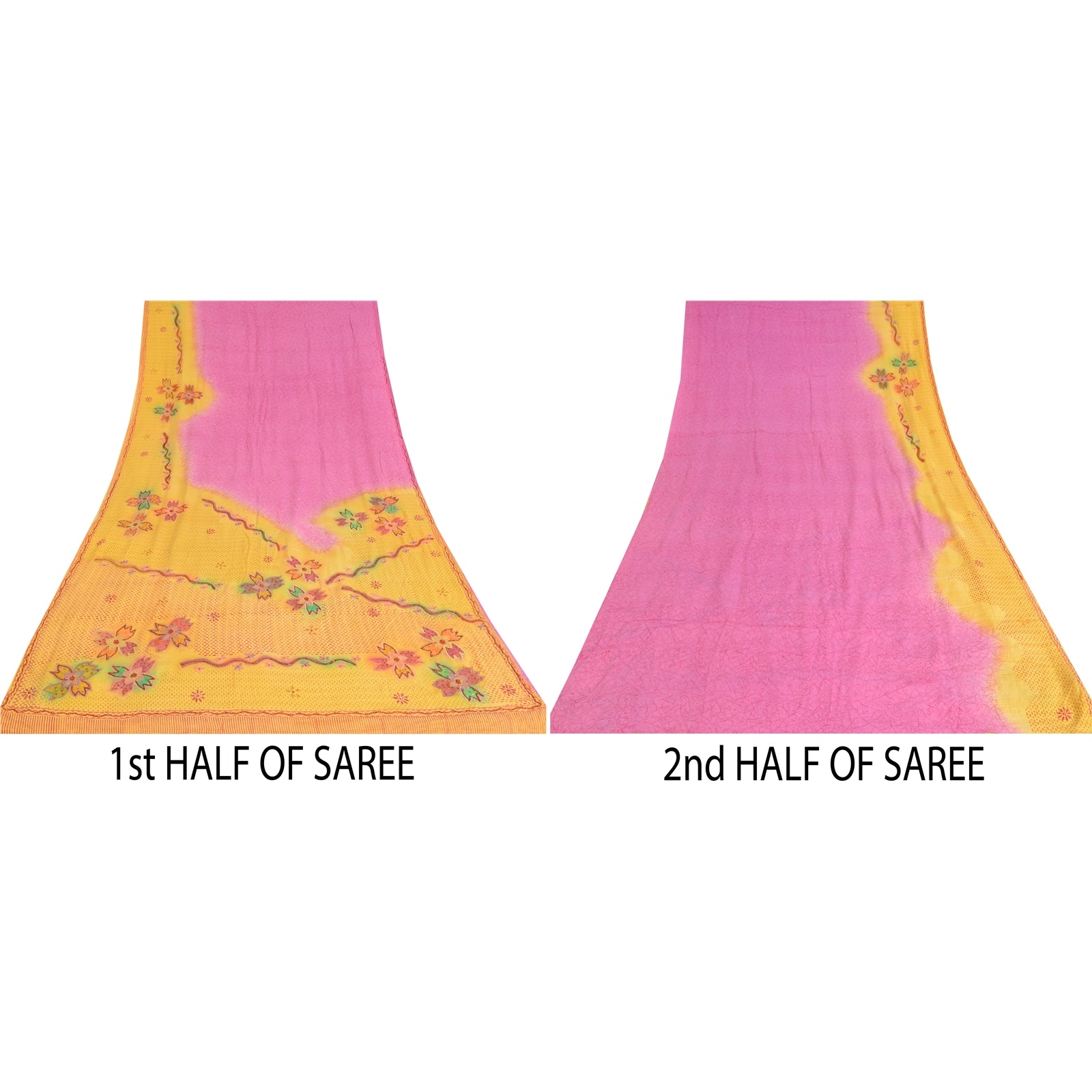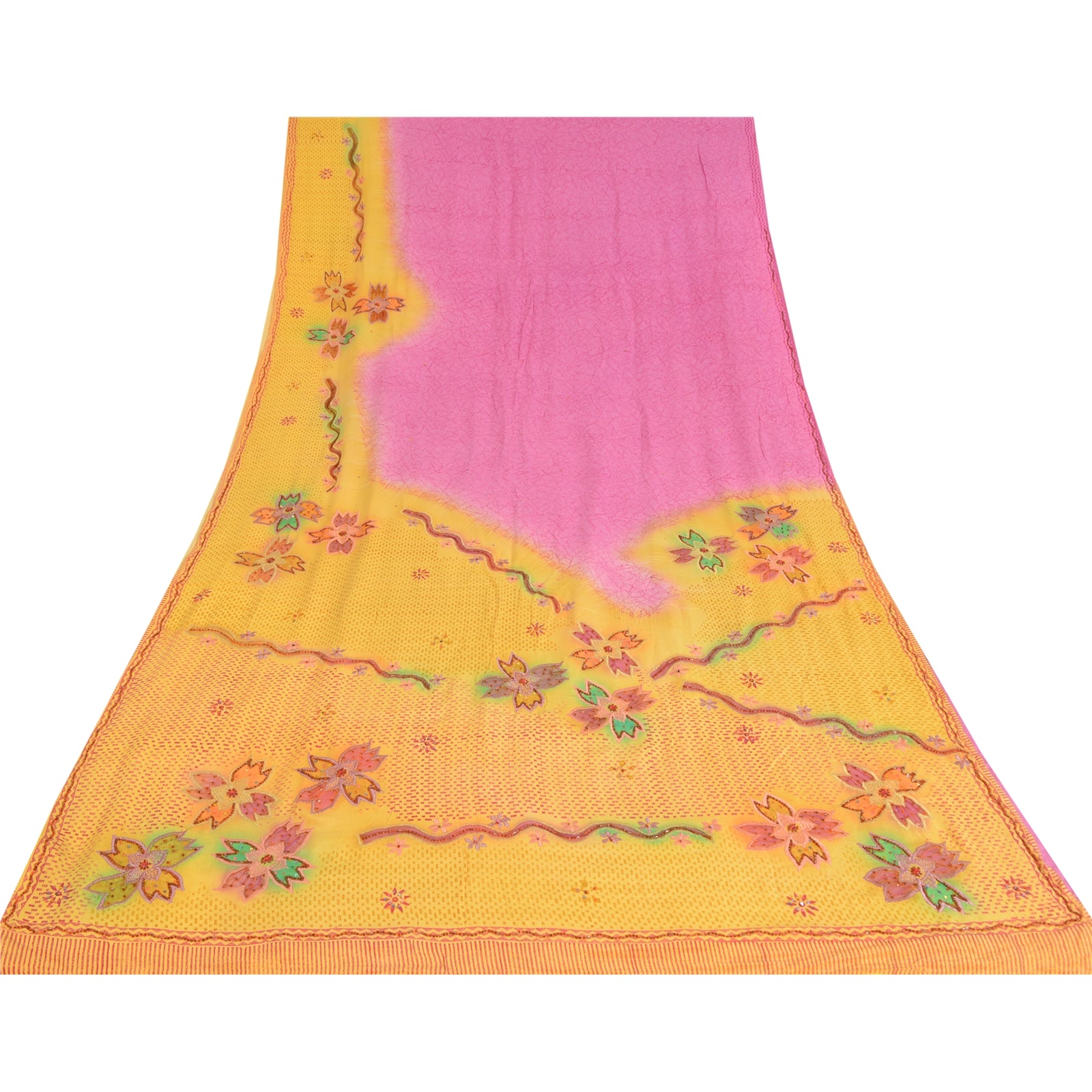Sanskriti Vintage Sarees Yellow/Pink Pure Crepe Hand Beads Print Sari 5yd Sustainable Fabric