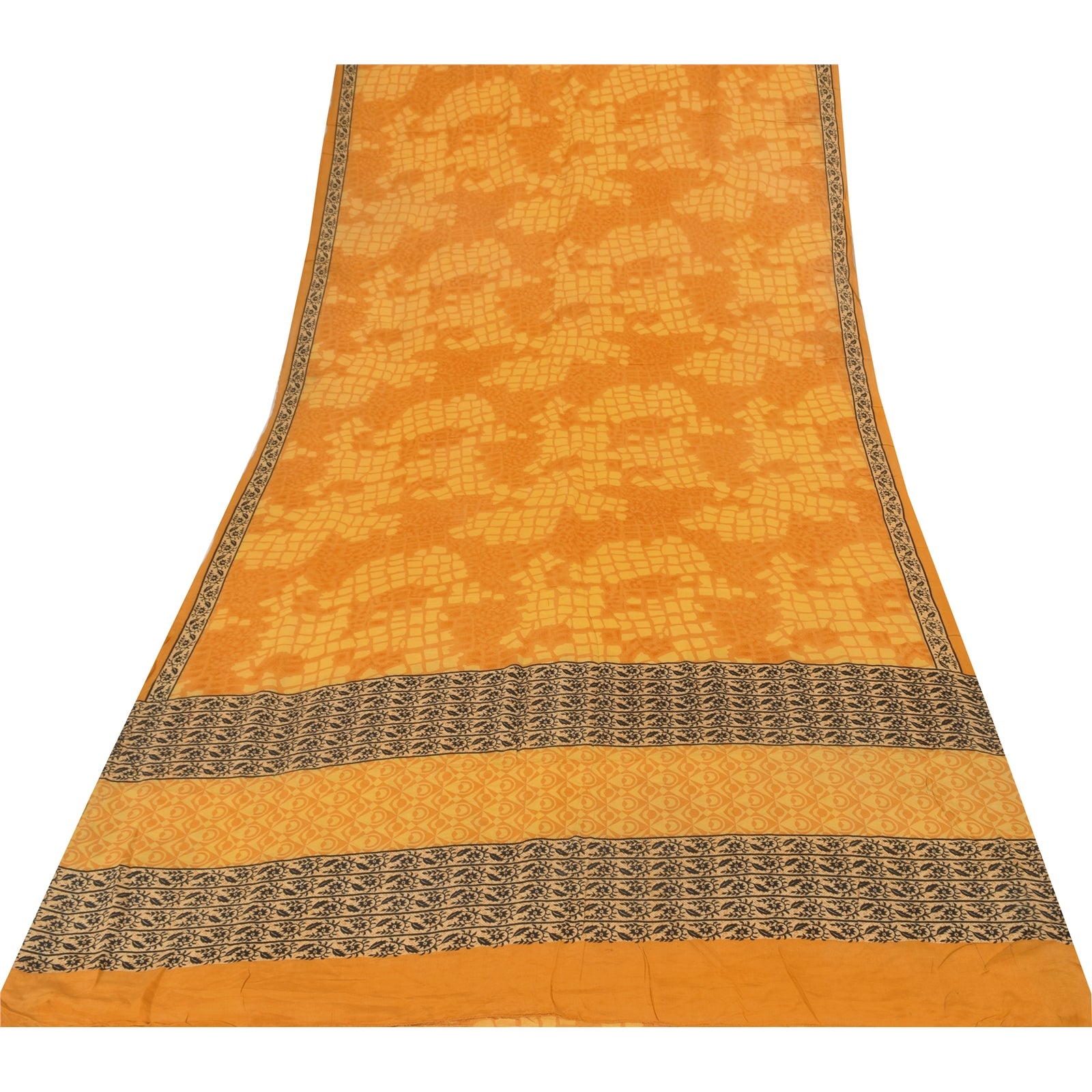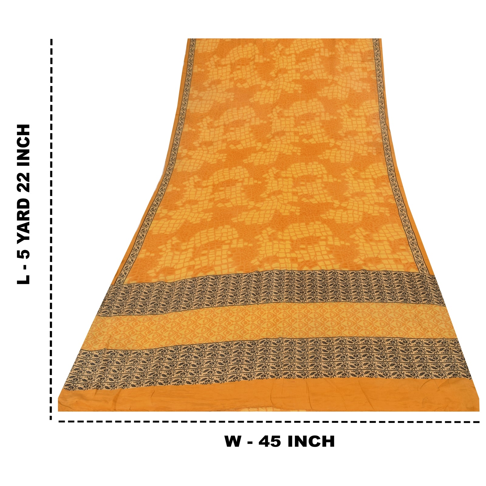 Sanskriti Vintage Sarees Yellow Pure Crepe Silk Printed Sari 5+yd Craft Sustainable Fabric